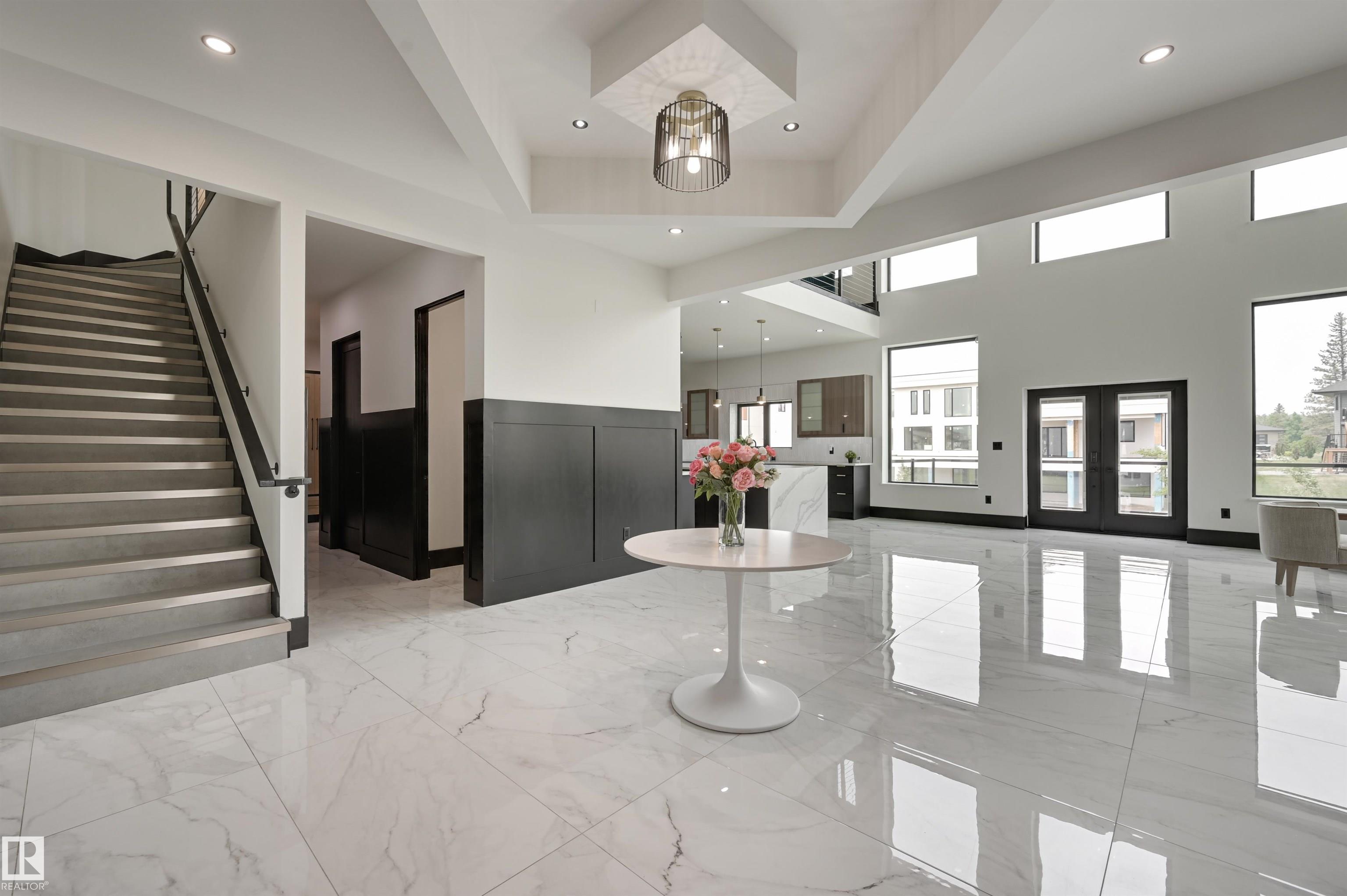 LakeRidge Estate awaits! This meticulously designed, custom built 5 bed + 5 bath home stuns with 10ft ceilings, 8ft doors, quartz window sills, trimless doors + windows + motion lighting in key areas. Your chef's kitchen offers a pot filler, waterline to the coffee station, two dishwashers, + a butler’s pantry with a sink. Entertain guests in your lavish living room or in your sizeable dining room. Soak in the beauty of your upstairs primary bedroom + the privacy of your ensuite, featuring dual sinks, an extra large soaker tub, curbless shower, + drawers with plug-ins. The main floor bedroom with an ensuite is ideal for your teen. Enjoy the summertime on your spacious Duradek patio, fit with dual gas BBQ hookups + 12-zone irrigation. Your oversized triple garage includes 12ft doors, 14ft ceilings, a full-depth bay for RV or boat storage, as well as a 5,000lb lift-rated beam. With laundry on both floors + advanced soundproofing, this luxe home blends innovation and elevated living - it is not to be missed!