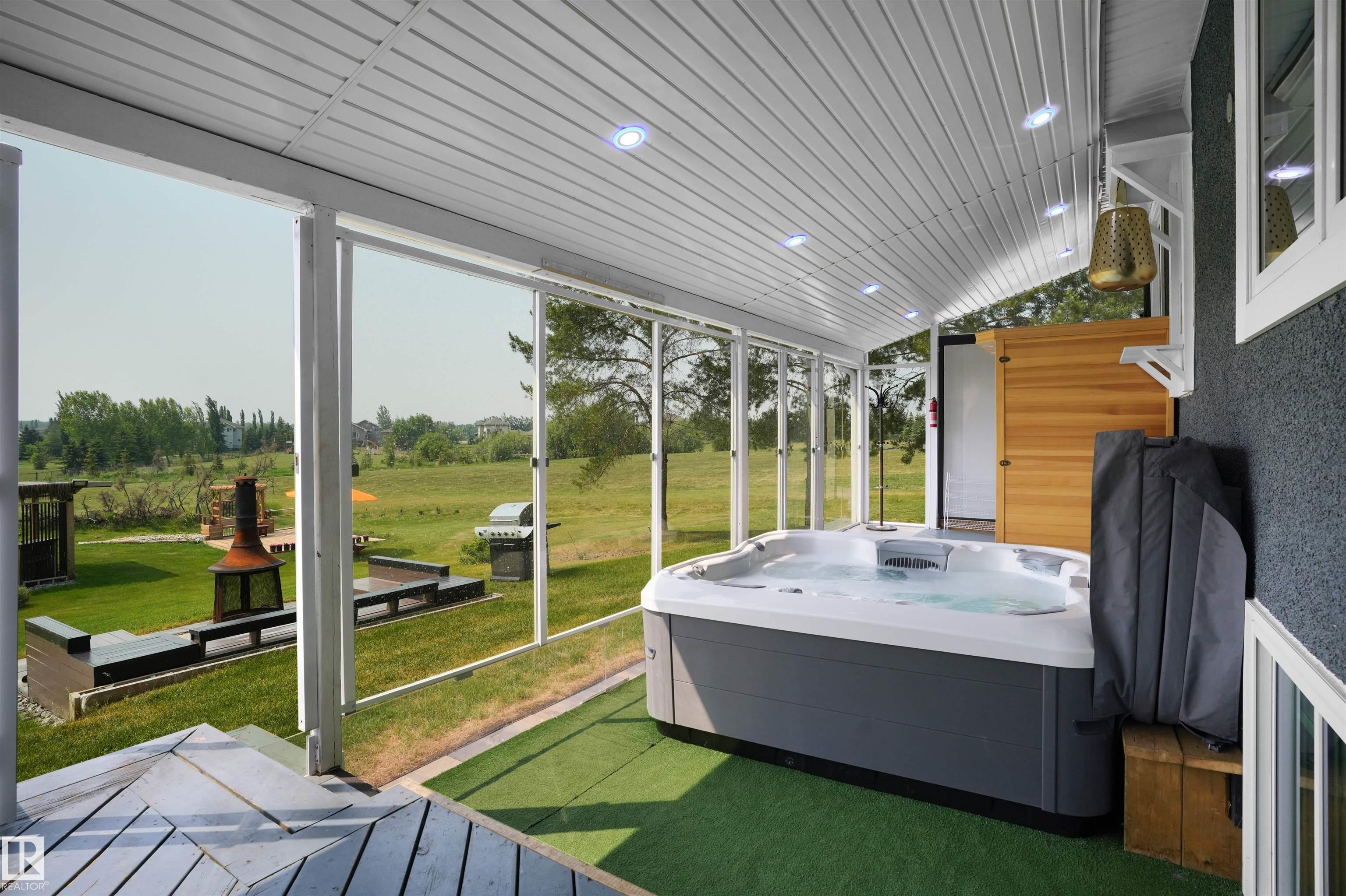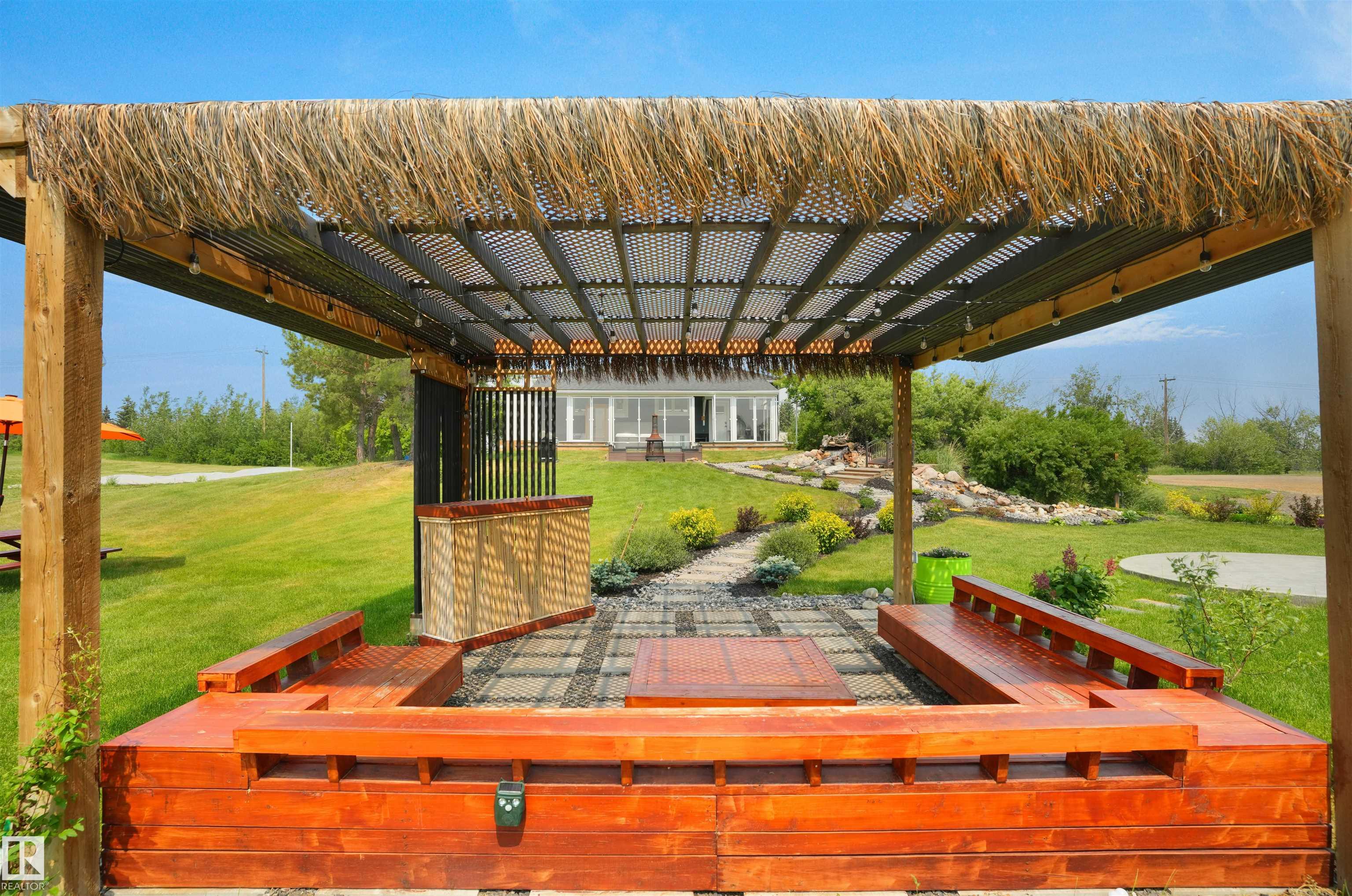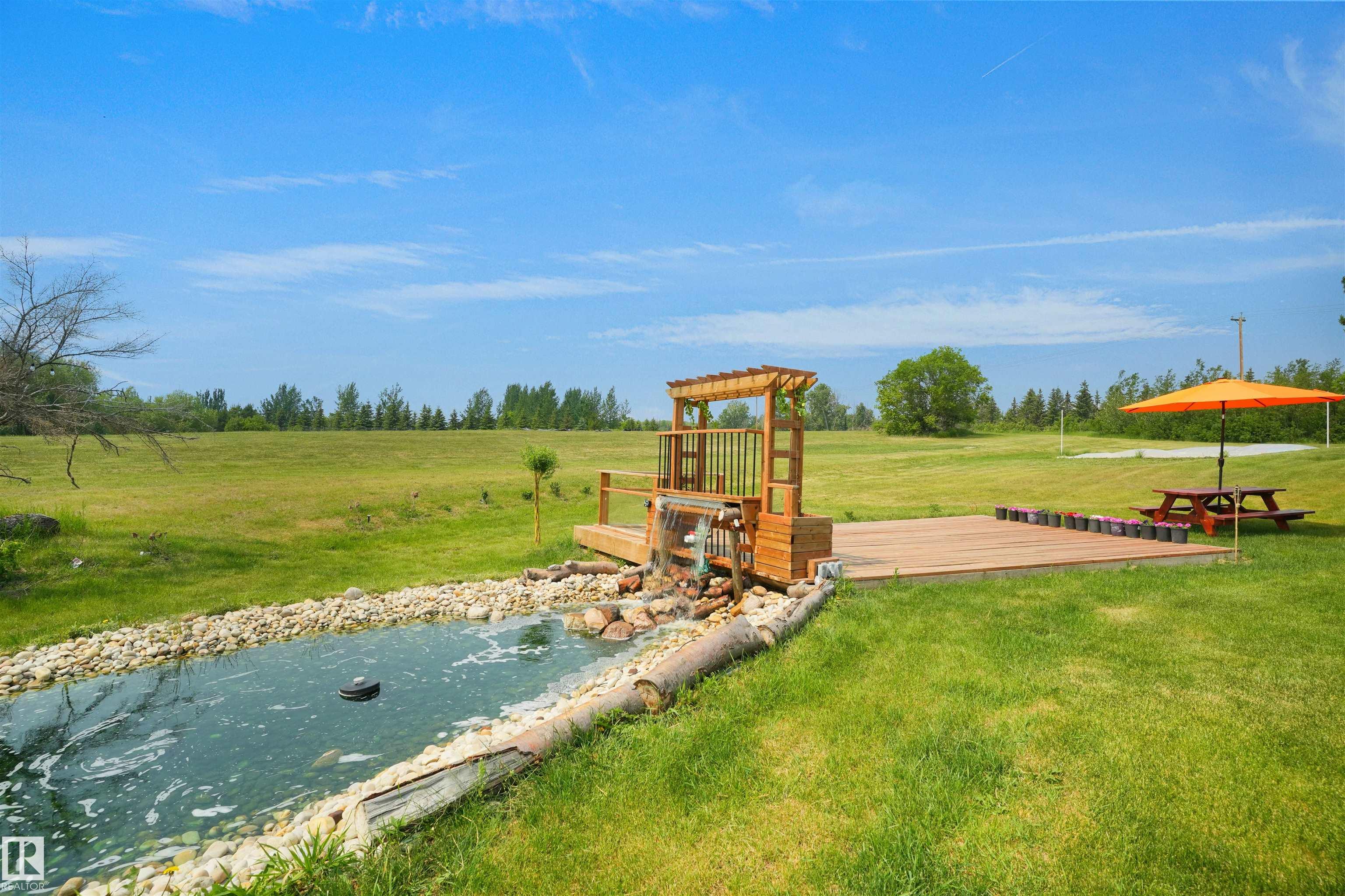 Incredible opportunity just 2 mins from Sherwood Park on Wye Road! This fully renovated bungalow (2023) sits on 11 + beautifully landscaped acres with direct highway access & alternate entry from Lorrelind Estates. Features include new vinyl flooring, drywall, insulation, HVAC, A/C, hot water tank, Water filtration system, RO drinking water, kitchen, bathrooms, S/S appliances, and an enclosed glass patio. Exterior upgrades include concrete front patio, new fascia, roof, gutters & more. Enjoy ½ acre of landscaping with stonework, lagoon, waterfall, tube-well, clay oven, firepit, pergola & 2 private golf tees. Upgraded - Heated 26' x 50' shop (2023) with plywood finish & metal roof, garage & barn/storage with metal roofing, plus new borewell (2024) & heated water system room. Property comes furnished as shown. Zoned Residential Agriculture—ideal for Airbnb, greenhouse, or nursery (with County approval). A rare blend of rural tranquility, modern upgrades & income potential—minutes from urban convenience!