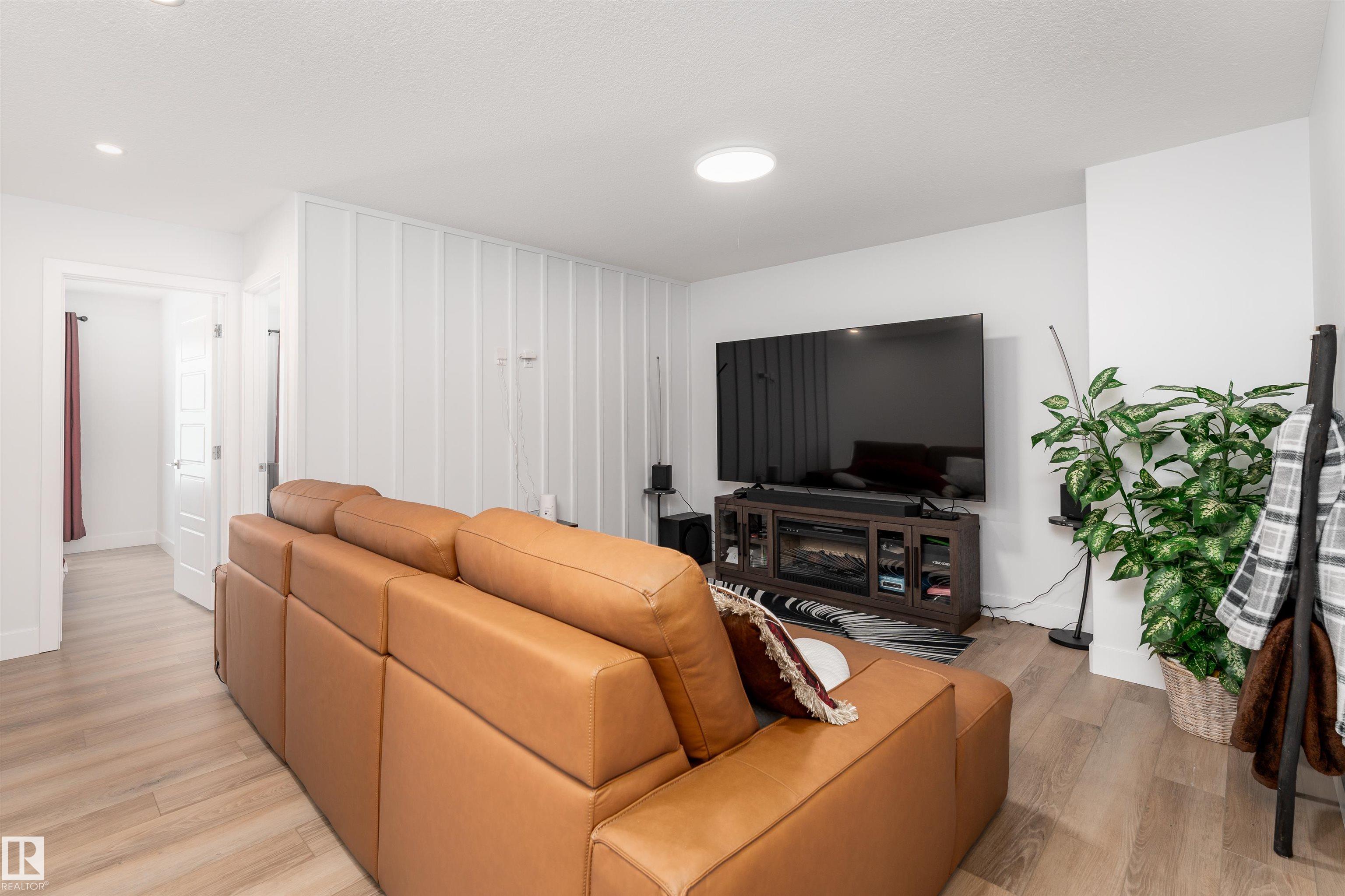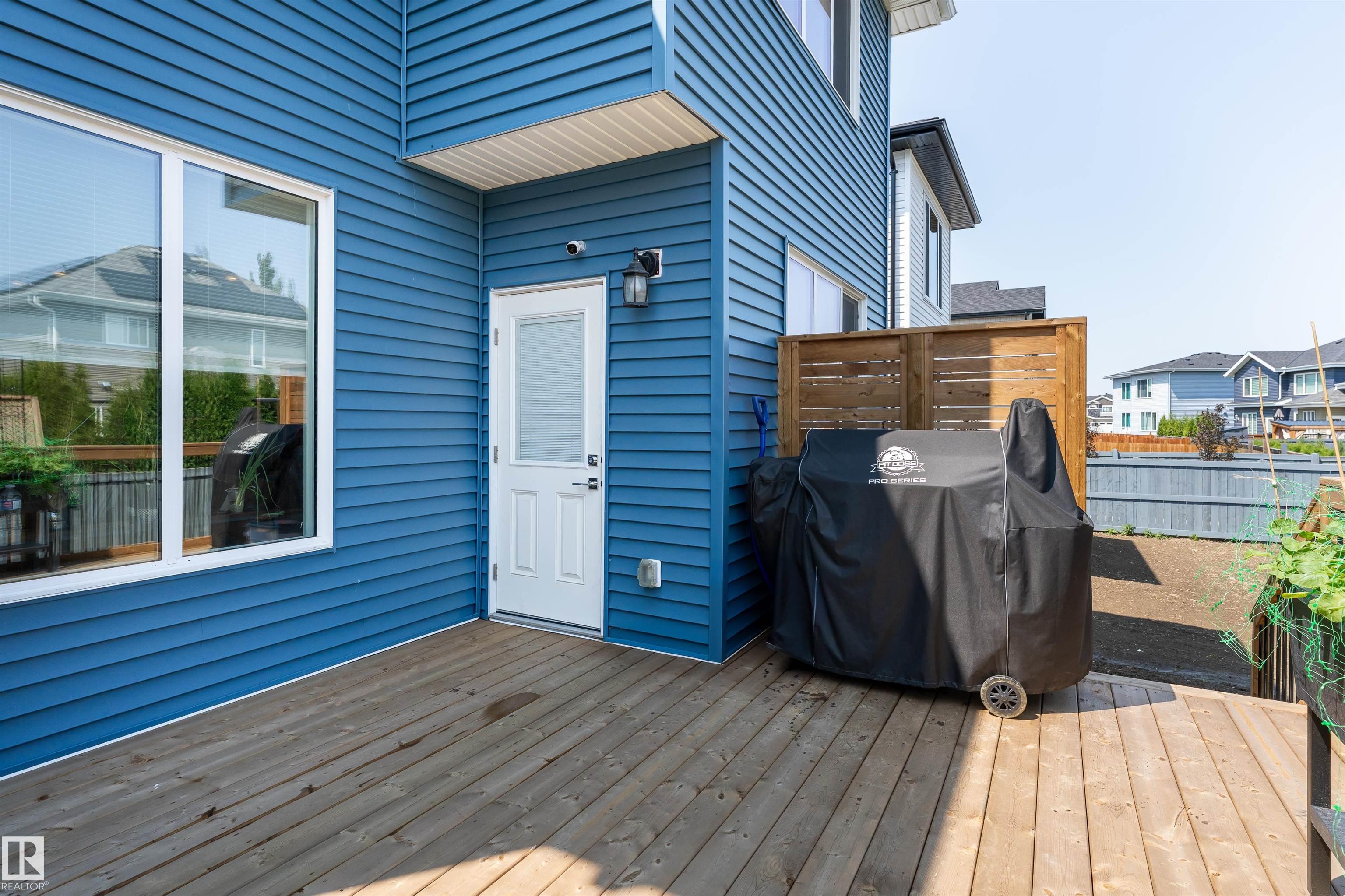 Step into elegance and modern comfort with this stunning 2,445 sq ft two-storey home in Beaumont. The main floor features a spacious living room with a cozy fireplace, a sleek and modern kitchen equipped with ample counter space, a center island, and high-end appliances. The dining area offers direct access to the deck—perfect for entertaining. You'll also find a functional server room, a mudroom, a den, and a convenient 2-piece bathroom on the main level. Upstairs, enjoy a massive bonus room ideal for family gatherings or relaxation. The spacious primary bedroom includes a walk-in closet and a luxurious 5-piece ensuite. Three additional bedrooms, a 4-piece bathroom, and a dedicated laundry room complete the upper floor. This home combines modern finishes with rich, elegant design—ideal for families seeking style and space.