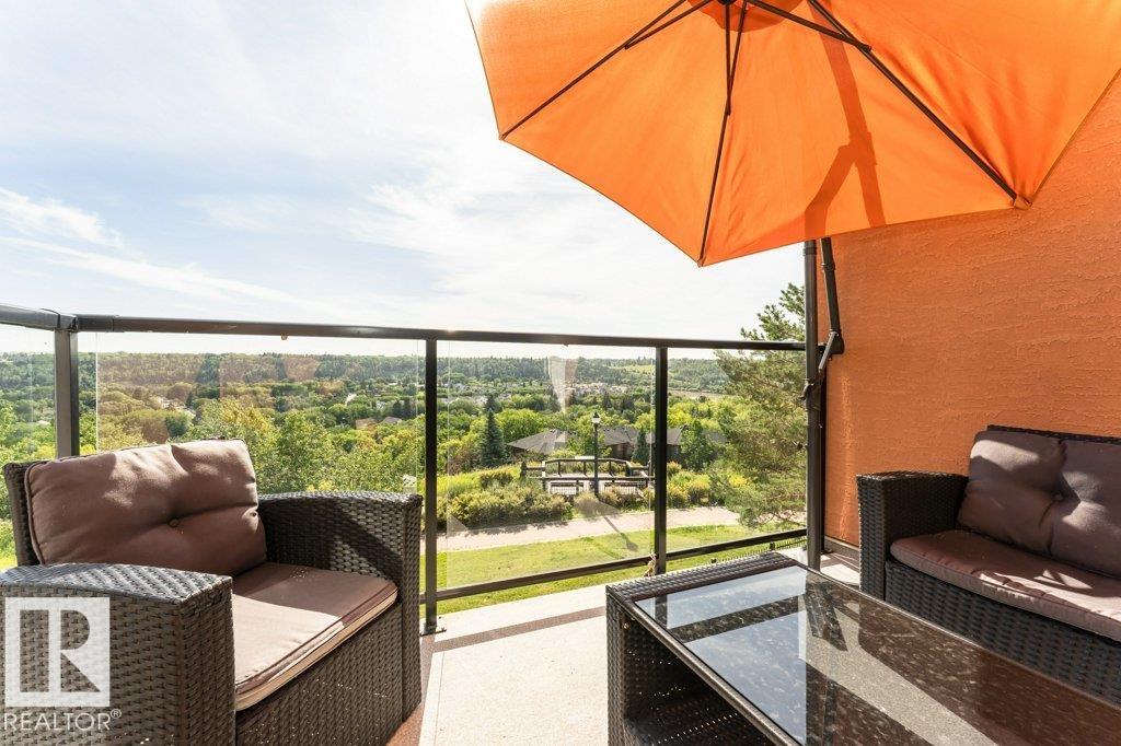 Discover this beautifully maintained, air-conditioned two-storey townhouse with a private rooftop deck and stunning river valley and downtown views. Located at the back of a gated 18+ complex. The home includes one secure underground parking spot with a storage locker and an additional above-ground stall in front of the unit. Walking distance to the River Valley and City Centre, this modern 2-bedroom features an open-concept design. The recently remodeled main level boasts a bright European-style kitchen with an island, a spacious living room with a gas fireplace, and a dining area opening to a glass-enclosed private balcony with a natural gas connection. There's also an open den/family room and a 3-piece bath. Upstairs, find a utility/laundry room and two large bedrooms, including a primary with a sitting area, walk-in closet, and spa-inspired ensuite with a jetted tub and corner shower. Additional storage has been added throughout. This home has been professionally painted and professionally cleaned.