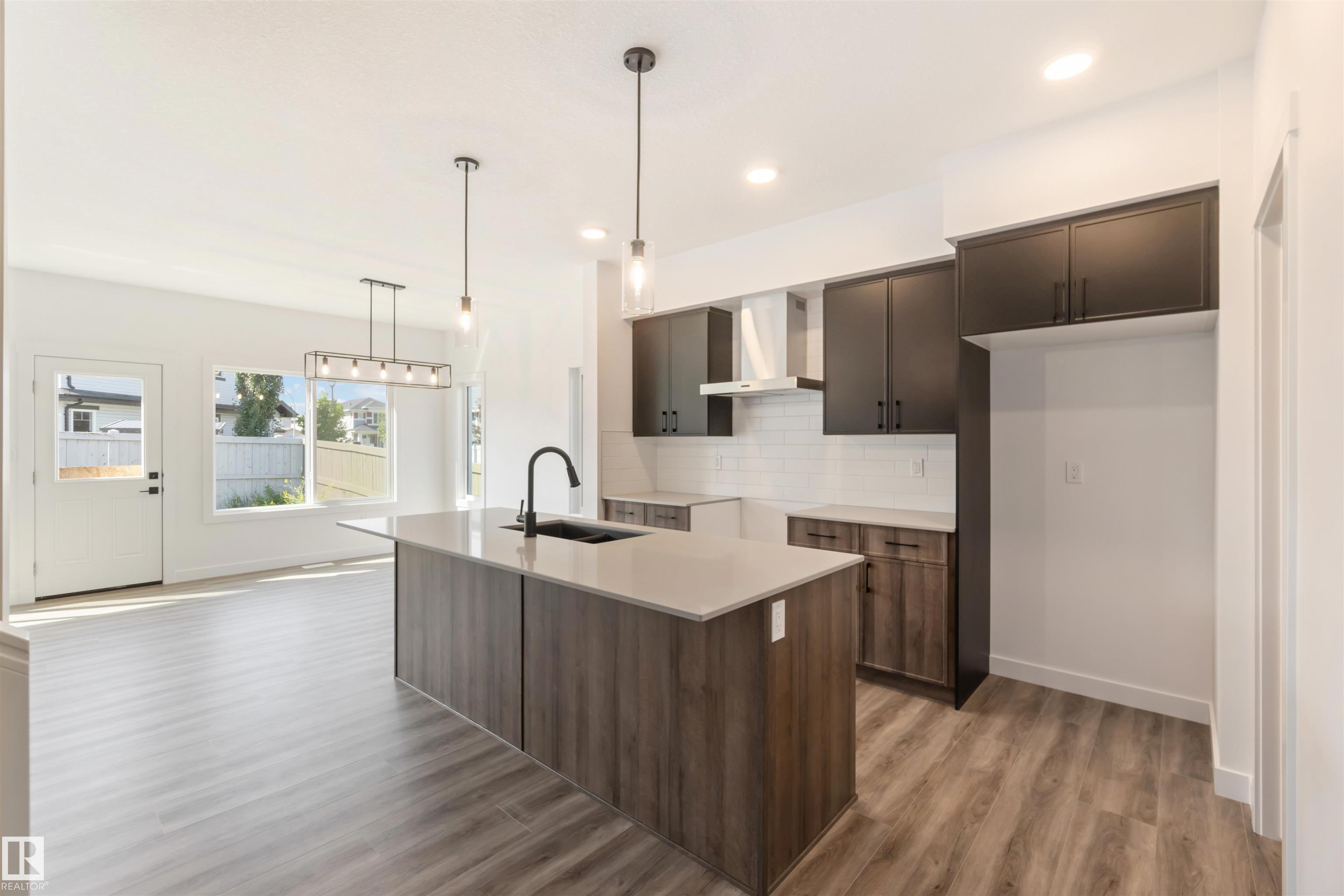 The Affinity model is an elegant, well-built home tailored for today’s families. It features a dbl att garage, extra side windows, separate side entry, 9ft ceilings on the main & basement levels, and LVP flooring throughout the main floor. The foyer opens to a full 3pc bath with walk-in shower & a main floor bedroom. The open-concept kitchen, nook, and great room offer function & style. The kitchen includes an island with flush eating ledge, chimney-style H/F, tile backsplash, Silgranit undermount sink with black faucet, soft-close cabinets, corner pantry, and a built-in microwave in the lower cabinetry. The great room with fireplace & the nook are flooded with natural light and feature patio doors to the backyard. Upstairs, the bright primary suite includes a 4pc ensuite with dbl sinks, walk-in shower & large walk-in closet. A bonus room, 3pc bath, laundry area & 3 additional bedrooms complete the level. Includes upgraded railings, black fixtures, and basement rough-in.