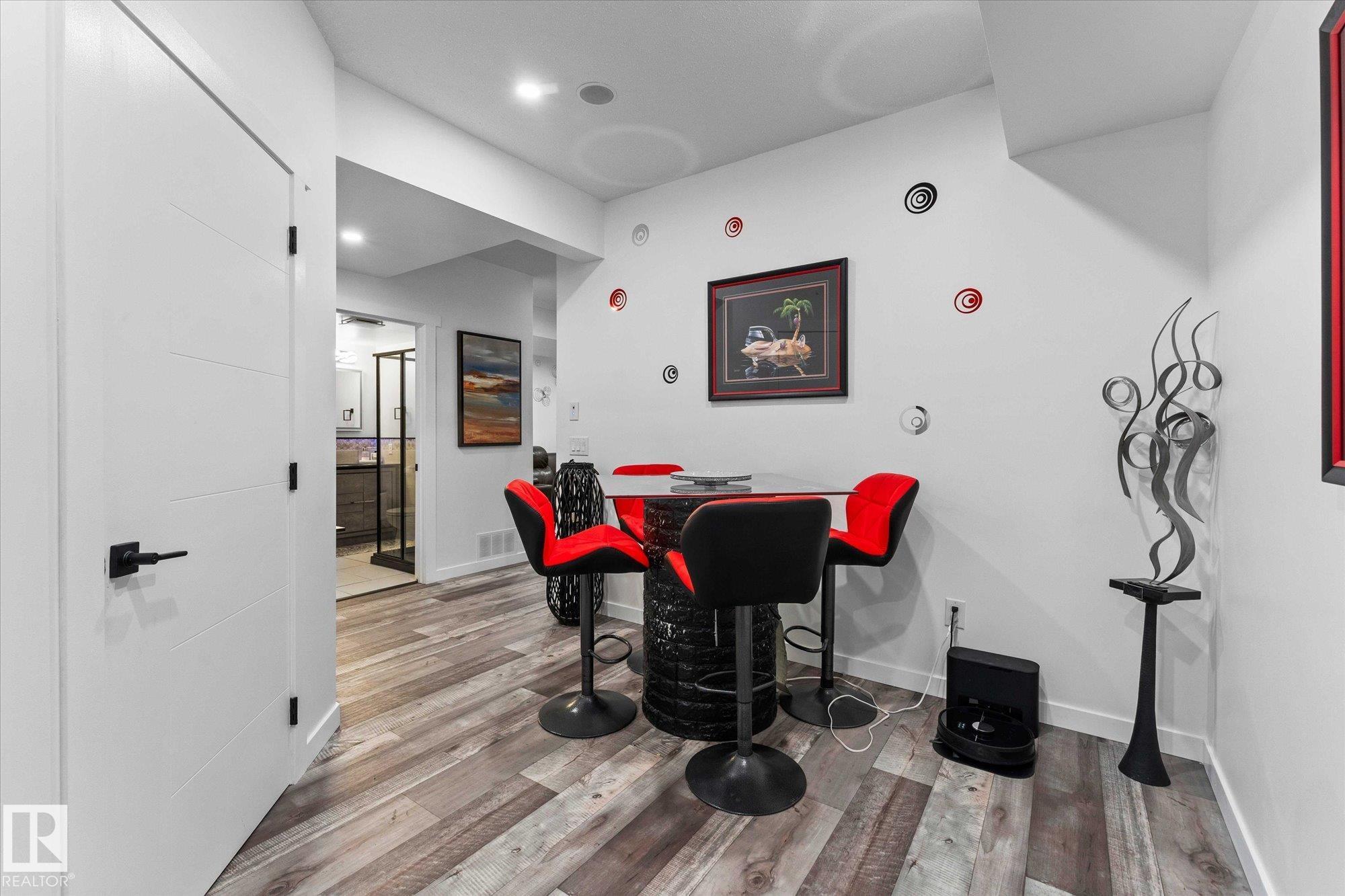 Welcome to 9 Brunwyck in Fenwyck. With almost 2800 sq ft of luxurious living space, this stunning home is perfect for the family w/4 spacious bdrms & a ton of upgrades. Custom quartz kitchen boasts floor-to-ceiling 2-tone cabinetry, under-cabinet lighting, single-level waterfall island, premium vinyl flooring, walk-through pantry, black SS appliances, soft-close drawers, & beautiful mosaic backsplash. Stunning stone-surround fireplace in LR. Dining area provides access to spacious deck w/glass railings. On main floor, you'll find a grand entrance, half bath, & 8-ft doors that add to overall appeal. Upstairs, there are 3 generous sized bdrms, bonus rm, office space & laundry rm. King-sized primary has luxurious ensuite w/standalone tub & custom shower. Fully developed bsmt has fully equipped kitchenette, bdrm & spacious area for family time. Triple-pane windows, surround sound throughout, stair lighting, garage w/epoxy flooring & drain, beautiful landscaping, hot tub & gazebo, & A/C. It won’t last long!