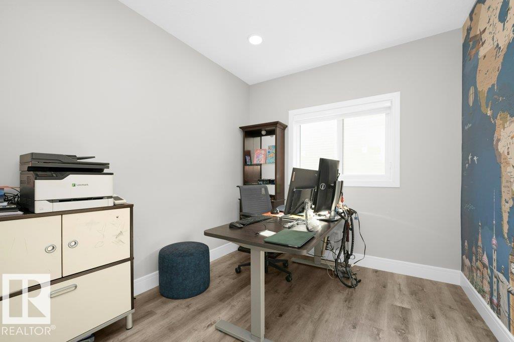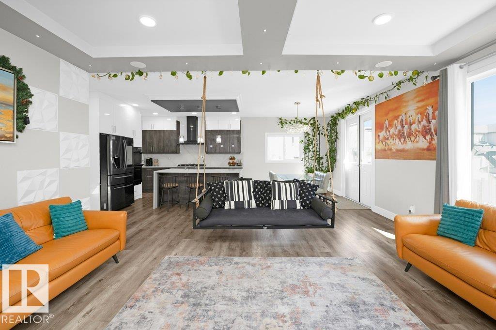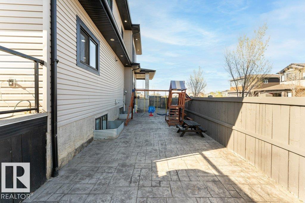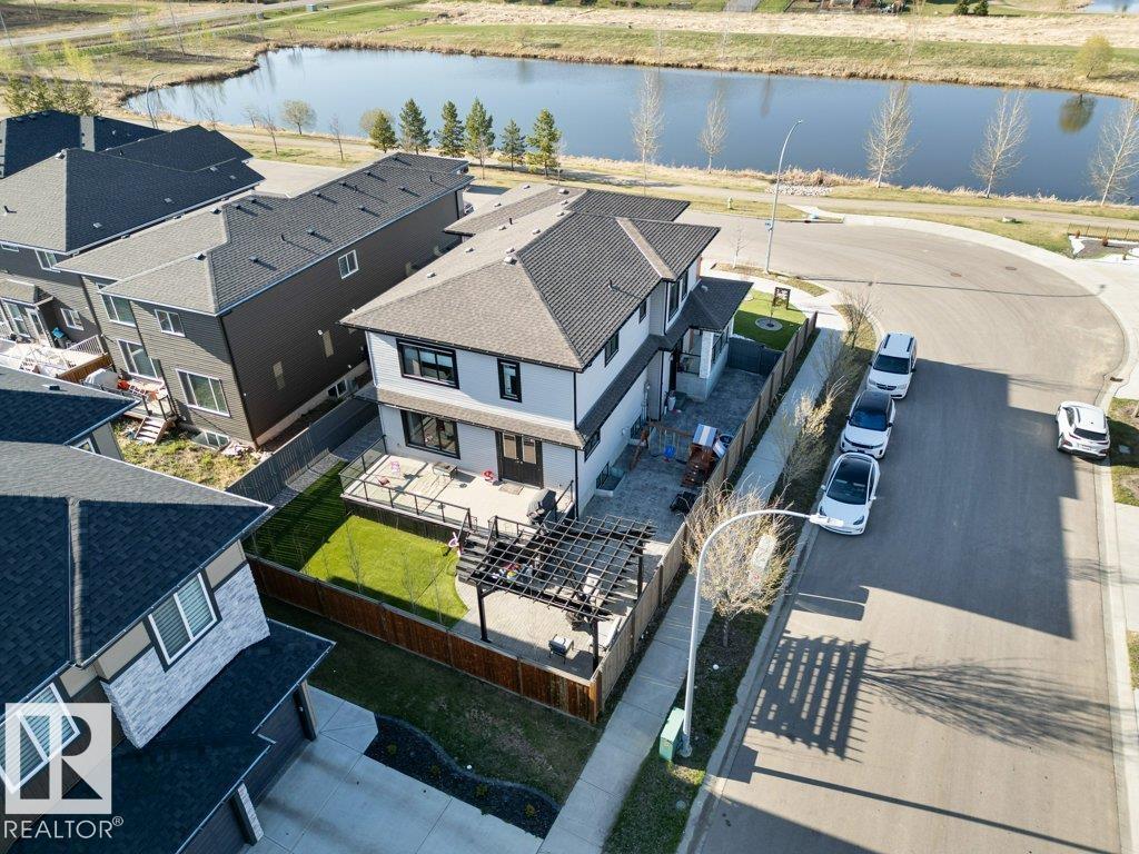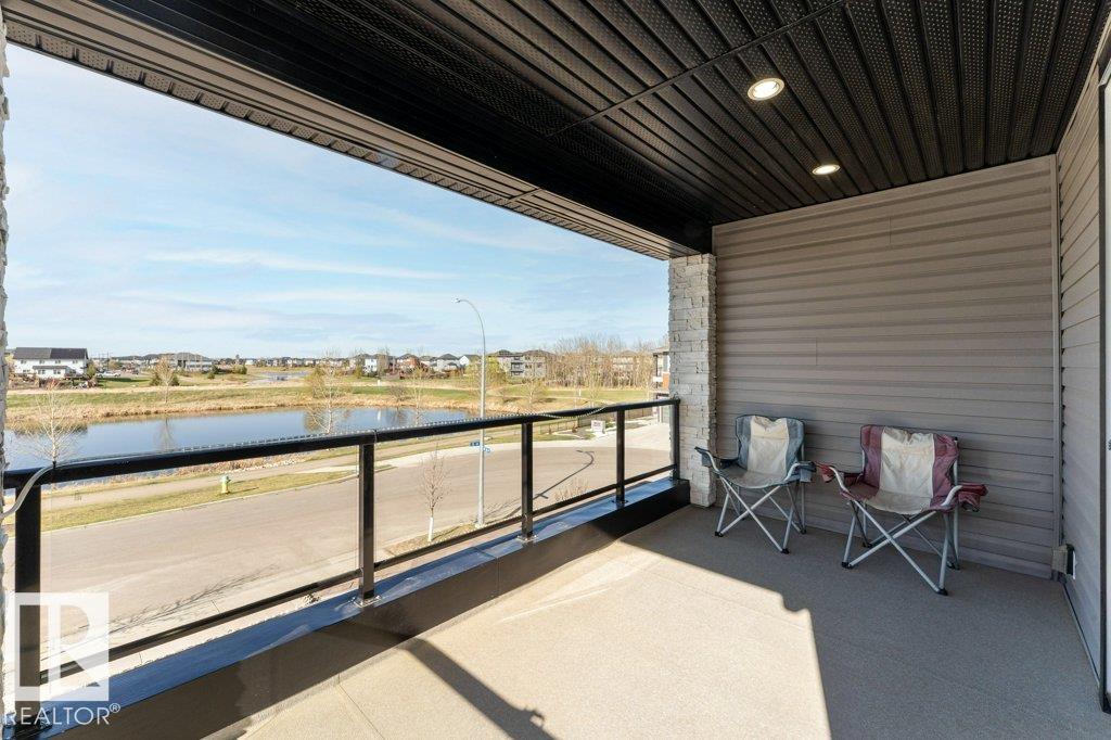 Luxury Living, Vastu Perfected! Elegantly positioned on a prized corner lot in Beaumont, this masterpiece blends timeless design with VASTU principles. A grand 8-ft double door opens to soaring 9-ft ceilings and a sunlit open-concept layout. The main floor features a private office, a spacious living room with fireplace and swing, and a chef-inspired kitchen with gas cooktop, waterfall granite island, premium cabinetry, and walk-in pantry. Upstairs, enjoy tranquil LAKE VIEWS from the balcony, a serene master retreat with 5-pc ensuite, jetted tub, shower panel, and meditation space, plus a dedicated laundry room. The TRIPLE heated garage offers a 220V EV charger, hot/cold sink, and floor drain. The fully finished basement includes a party room, wet bar, additional bed and bath. Outdoors, unwind in the low-maintenance yard with artificial grass, concrete pad, built-in deck, and custom gazebo. Complete with central A/C, water softener, ceiling speakers, and CCTV. A Must-See Masterpiece !!