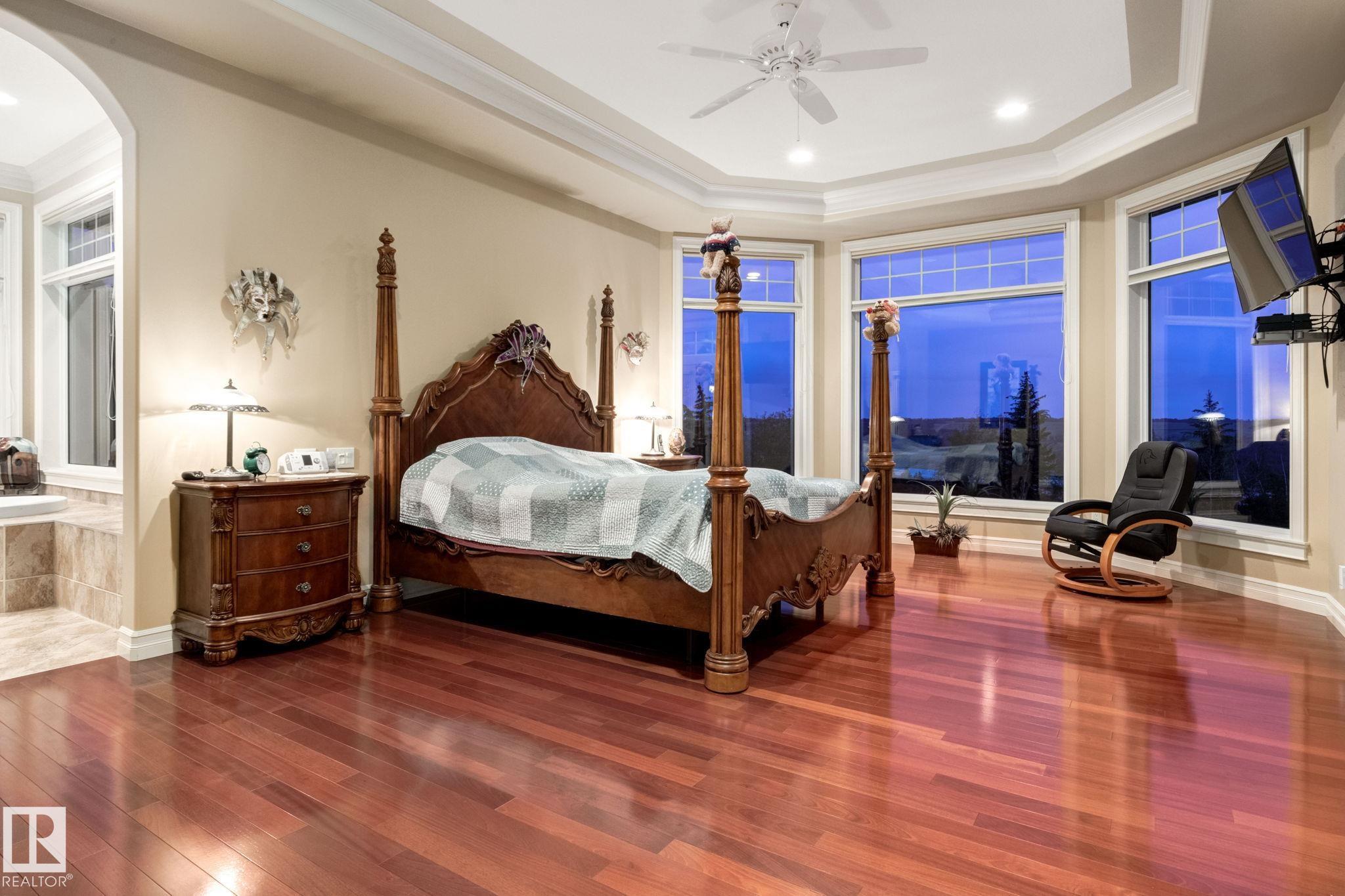 A truly exceptional offering—this timeless country estate rests on 80 rolling acres in the heart of Leduc County. Gated & fully fenced, with a tree-lined drive that leads past sweeping pastoral views & endless Alberta skies, this is where elegance meets quiet country sophistication. The custom-built Heredity Homes residence offers over 8,500 sq ft of beautifully developed space with cherrywood floors, soaring ceilings, & a layout designed for connection & comfort. The chef’s kitchen is equipped with Sub-Zero & Miele appliances, rich granite counters, & full-height cabinetry—seamlessly flowing into the breakfast nook, formal dining, & cozy family room with fireplace. The main floor hosts 3 bedrooms with W/I closets & ensuites, including a serene primary suite with French doors to the deck & spa-like bath. Downstairs, the walkout level impresses with a double staircase, theatre, gym, rec space, 2 bedrooms, & full-height windows. A 3,200+ sq ft shop with private suite adds endless potential.