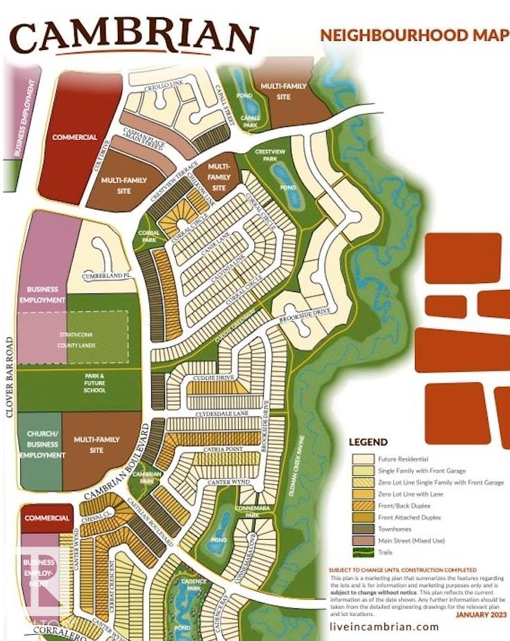 Steps away from CAMBRIAN PLAYGROUND, you will find this 1565sqft, 2 Storey home featuring 3 bdrms, 2.5 baths & DOUBLE garage. The NeoClassical Revival design style & The Landon by award-winning builder Rohit Homes, will WOW you as soon as you enter the spacious entrance that leads to the open concept main level with a stylish kitchen that offers plenty of cabinets, pantry & quartz island that over looks the dining & living area. Moving upstairs you will find a king sized primary suite with walk in closet & 5pc ensuite. 2 bdrms are both generous in size, a 4pc bath & flex room - perfect for an office or games area, complement this stylish home! Separate side entrance & rough in for future basement suite, makes for awesome income potential! Close to parks, playgrounds & 8kms of ravine trails through Oldman Creek, it will also be the home to future schools & shopping PLUS easy access to Henday! Photos may not reflect the exact home for sale, as some are virtually staged or show design selections.