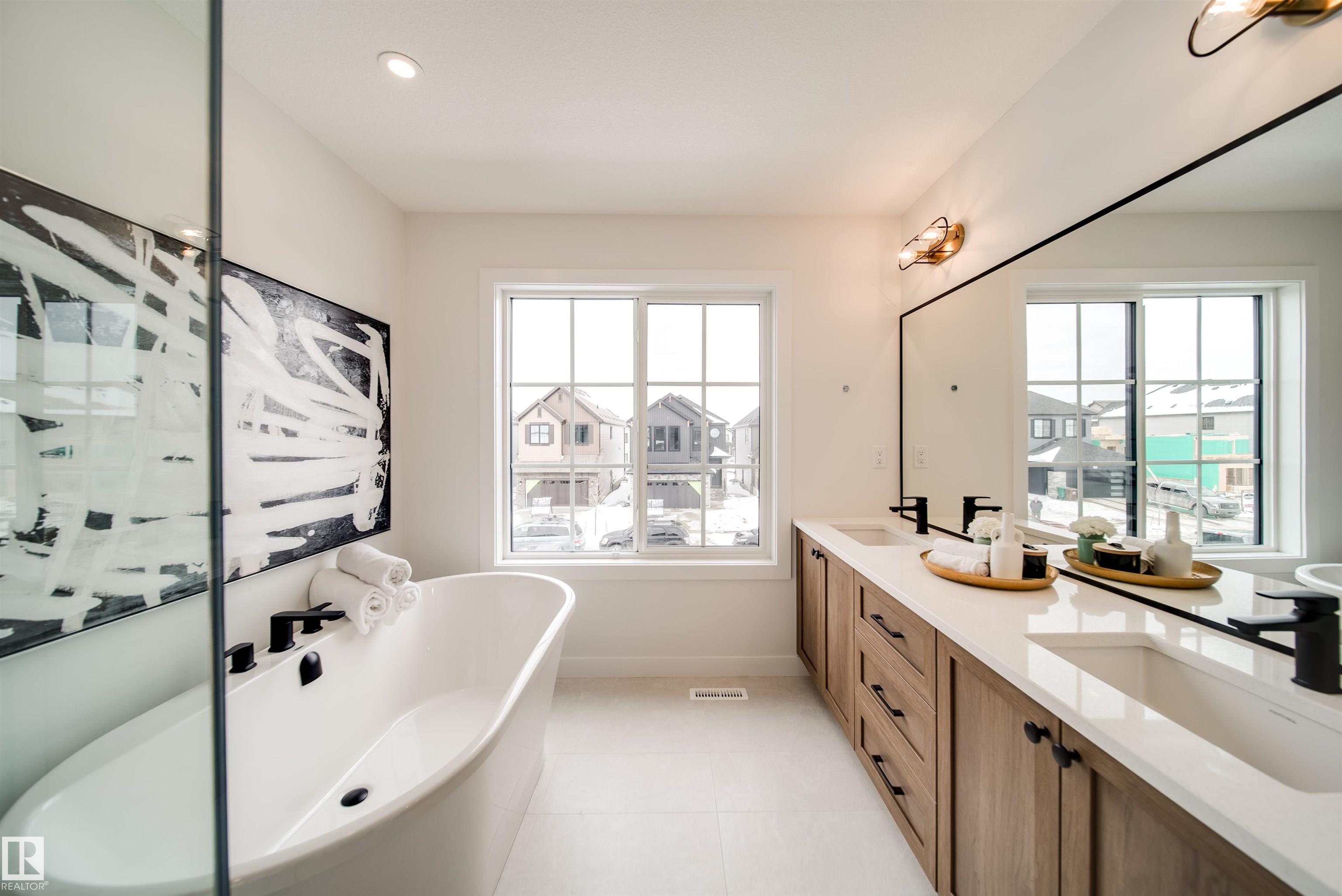 Welcome to The Vantablack by award winning Justin Gray Homes, situated on 30' pocket POND BACKING WALKOUT lot in Cherot, offering 2519 sqft of refined living space in a professionally curated French Country palette by CM Interiors. Featuring soaring open-to-below ceilings, 9' ceilings & 8' doors on the main, HARDWOOD floors & a cozy GAS fireplace. The main floor den w/glass walls is perfect for a stylish home office. An OVERSIZED DBL GARAGE leads to a mudroom w/custom MDF built-ins. Through JG’s iconic archways, step into a walk-thru BUTLER’S PANTRY & chef’s kitchen w/huge QUARTZ island w/premium dove-tailed cabinetry. Enjoy sunset pond views off your 13'6" x 10' REAR DECK. Upstairs find 3 spacious bdrms incld. a dreamy primary w/VAULTED ceilings & wainscoting wall feature, spa-like 5pc ensuite & massive WIC w/convenient direct access to the laundry rm. Located near future schools, rec centre, parks & trails - this home blends luxury & lifestyle. *Photos of similar model, layout/finishes may differ.