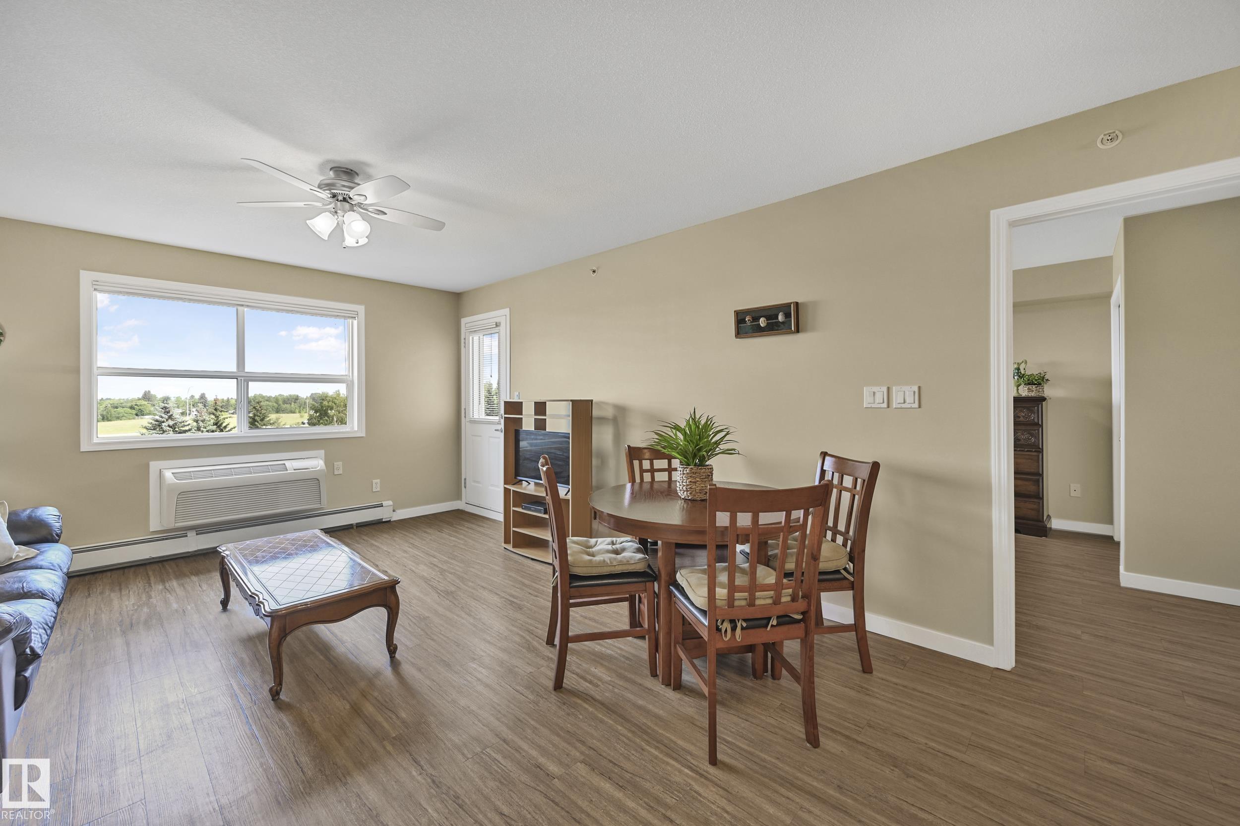 Welcome to Unit 426 in The Gardens at Southfort! This beautifully maintained 1-bedroom, 1-bath condo offers 594 sq ft of comfortable living with a stunning lake view off the private balcony. Immaculate inside, it features an open layout, air conditioning, and large windows that fill the space with natural light. The building boasts impressive amenities including a guest suite, games room, recreation areas, banquet hall, and on-site hair salon. This adult living community includes a mandatory service package with daily lunch, bi-weekly housekeeping, and bi-weekly laundry, ensuring a worry-free lifestyle. Ideal for downsizing or simplifying without sacrificing comfort, this home blends independence with supportive services. Located in a quiet, well-managed complex with a true community feel.