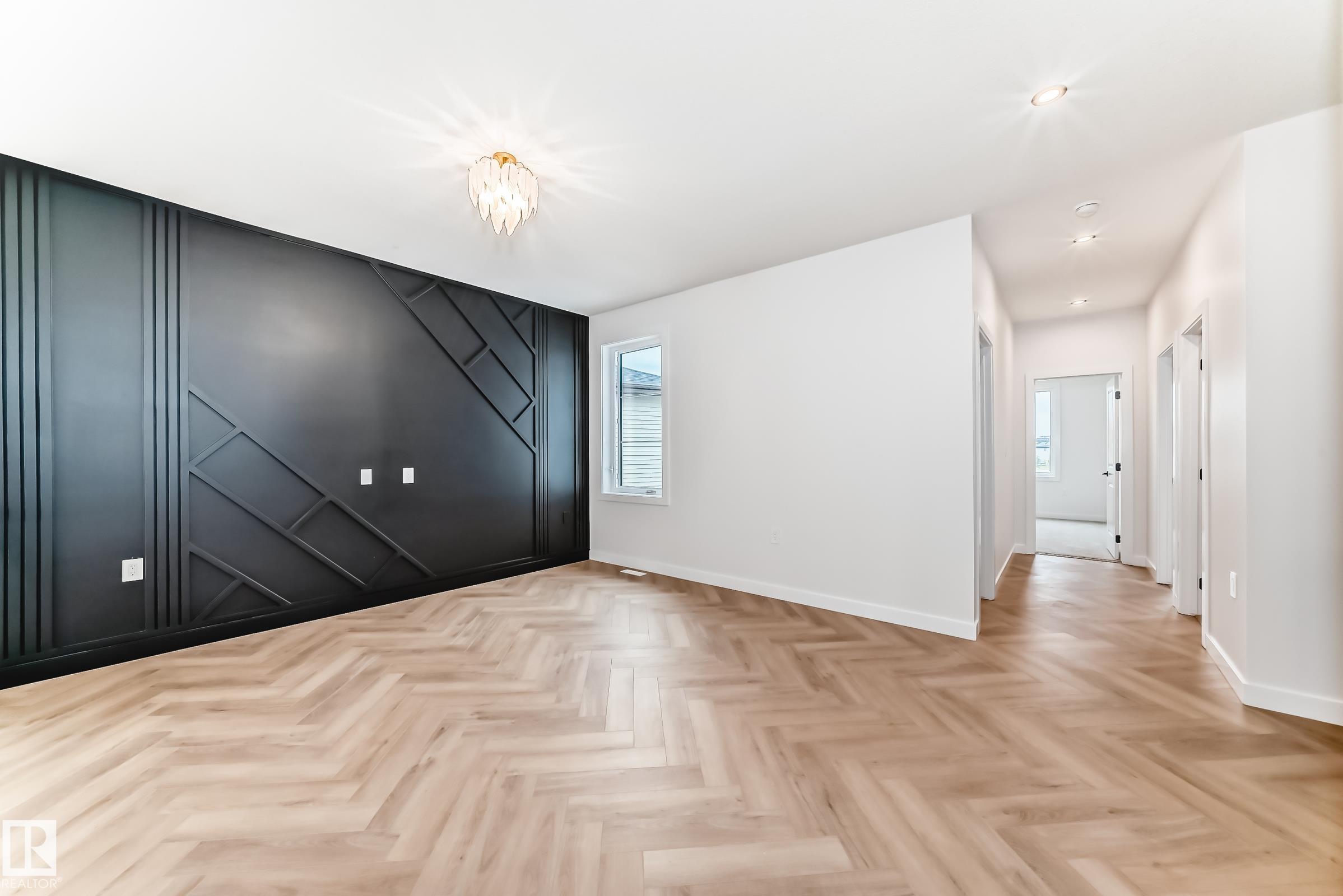 UPGRADED HOME BACKING GREENSPACE IN THE COMMUNITY OF MCLAUGHLIN! This home boasts 2557 sq/ft with 4 bedrooms, 3 full baths, bonus room & 9ft ceilings on all three levels. Main floor offers vinyl plank flooring, bedroom/den, family room with 18ft ceiling, fireplace. Kitchen, with modern high cabinetry, quartz countertops, island, stainless steel appliances & BUTLERS PANTRY/SPICE KITCHEN, is made for cooking family meals and entertaining. Spacious dinning area with ample sunlight is perfect for get togethers. The 3 piece bath finishes the main level. Walk up stairs to master bedroom with 5 piece ensuite & spacious walk in closet, 2 bedrooms with walk in closets, full bath, laundry and bonus room. Unfinished basement with separate entrance and roughed in bathroom is waiting for creative ideas. Public transit to Edmonton, & more than 40 km of trails, your dream home home awaits. Includes:DECK/TRIPLE PANE WINDOWS/ WIRELESS SPEAKERS/ GAS HOOKUP ON DECK