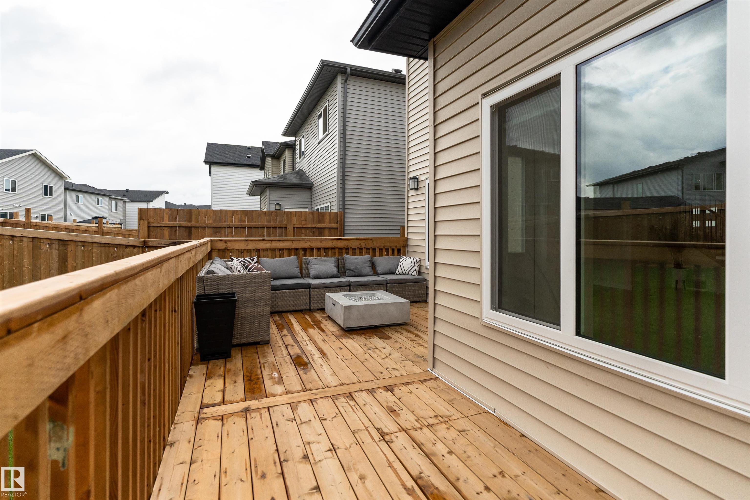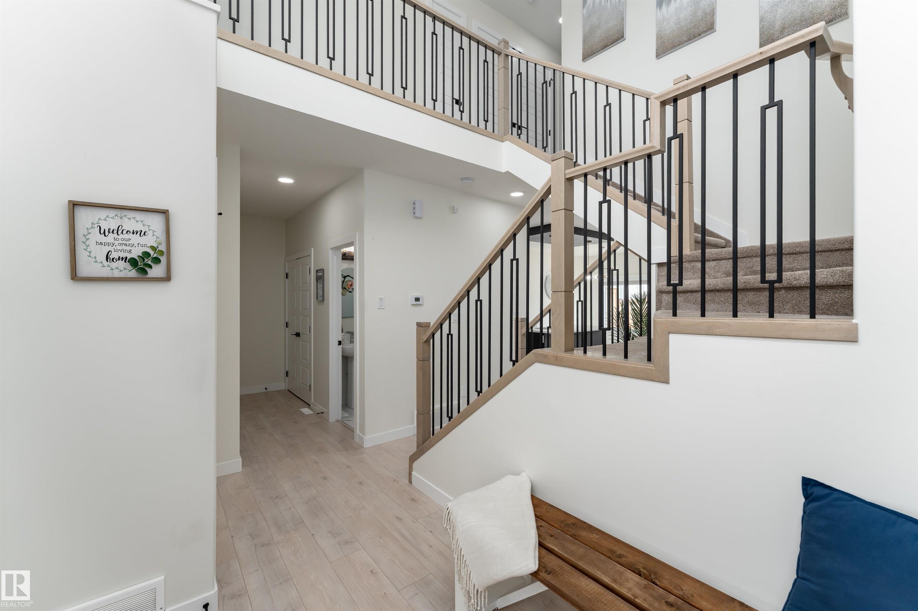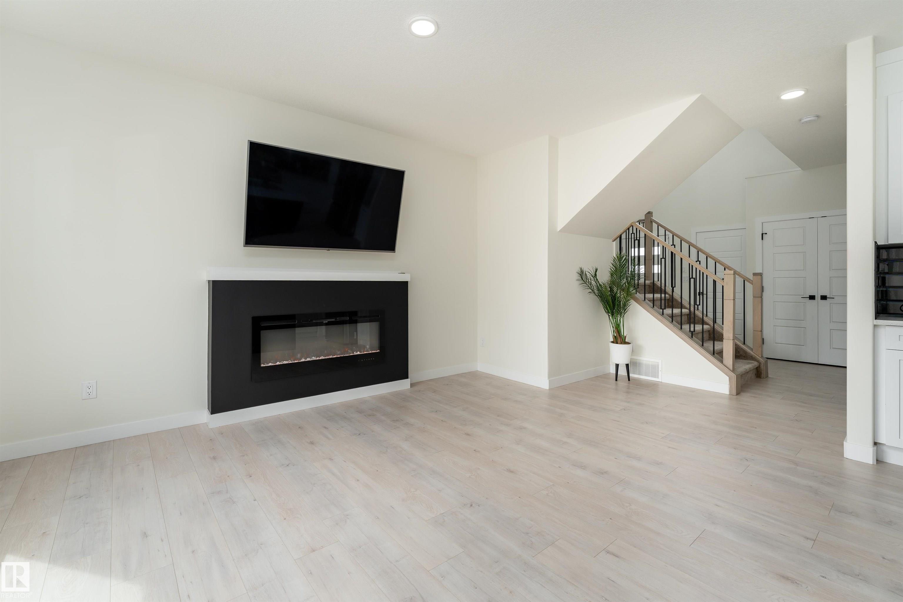 Welcome to 112 Bluff Cove, a modern 1,460 sq ft two-storey home in Leduc. Featuring 3 bedrooms and 3.5 bathrooms, this home boasts 9 foot ceilings and large windows that fill the space with natural light. The open concept main floor includes a contemporary kitchen with a central island and a cozy living room with an electric fireplace perfect for relaxing evenings with family and friends. Upstairs, the primary bedroom offers a four-piece ensuite and walk-in closet, plus two additional bedrooms, a full bath, and convenient laundry. A well-maintained lawn provides the perfect setting for outdoor entertaining, with a gas line and space to gather around a BBQ or a fire table. The unfinished basement with a separate side entrance has a full bathroom for a potential suite opportunity. Central air conditioning, double attached garage and custom blinds throughout the house complete this inviting home. Conveniently close to major routes, schools, Century Mile Racetrack, Leduc Common shopping, and Pigeon Lake Park.