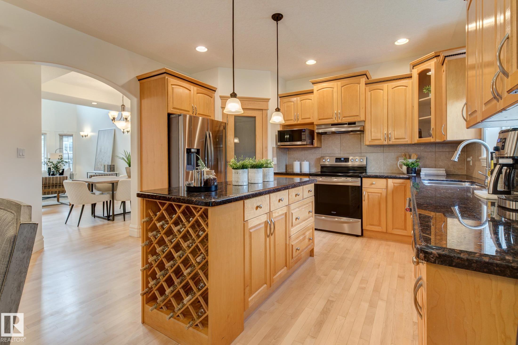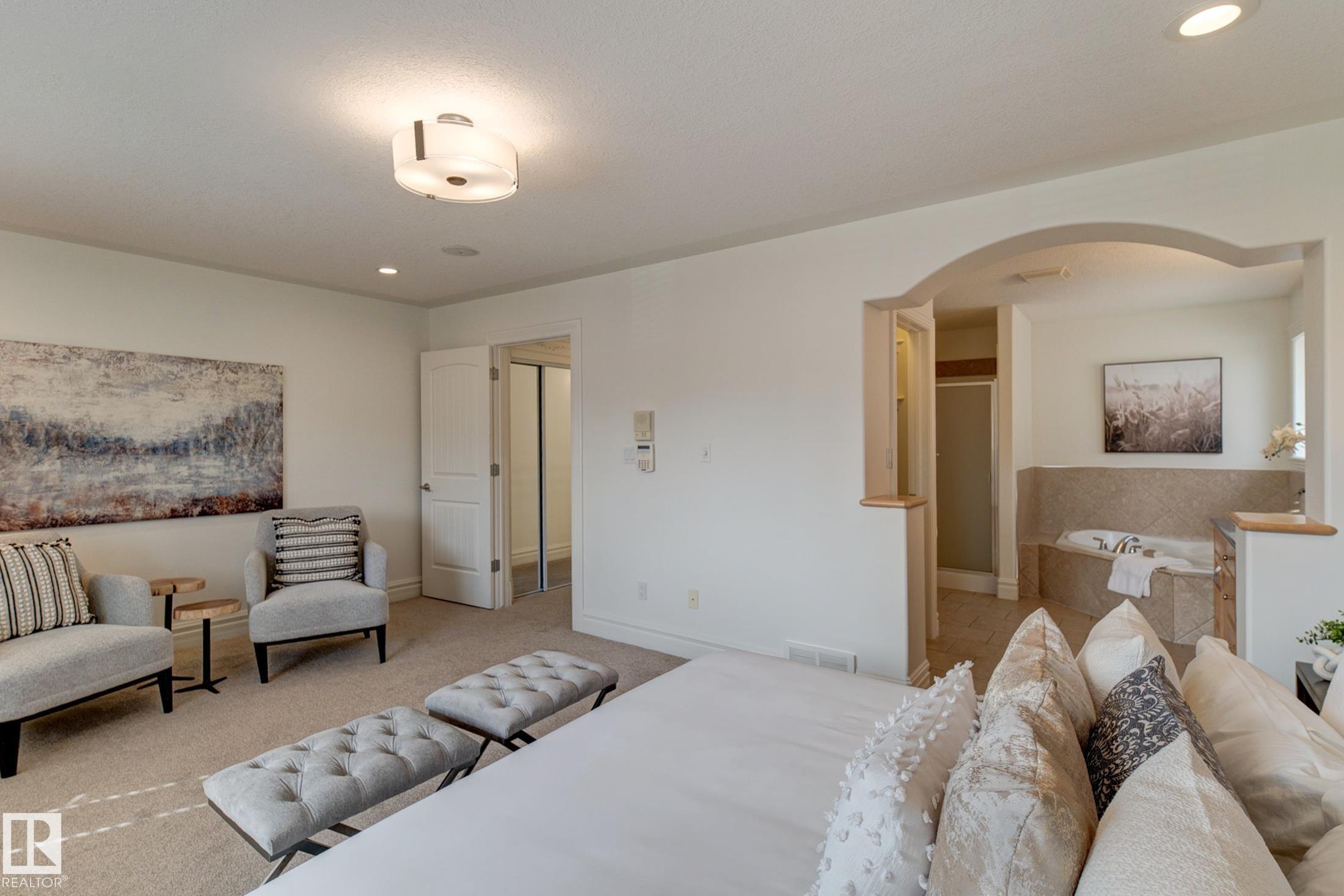 This beautifully upgraded & fully finished home in prestigious Magrath offers 3993 sqft of luxurious living space. The owner, a builder, meticulously upgraded house for his own family's enjoyment. Upgrades include refinished acrylic stucco exterior for extra insulation & sound barrier, refinished hardwood floors, fresh paint, new carpet, central AC, sump pump, hot water tank, all newer appliances & heated garage. Professional landscaping w/retaining walls & composite deck. Inside you will be impressed by soaring vaulted ceilings & expansive wood railings & iron spindles framing magnificent open loft. 4 bedrooms on the upper floor w/2 ensuite baths & 3rd full bath. Additional 2 bedrooms & 4th full bath in the permitted, fully finished basement w/cozy gas fireplace & space for wet bar. Flex den/office w/built in bookcase & 5th full bath on the main floor. Walking distance to three K-9 schools, high school & Whitemud Ravine nature reserve. Live within Henday ring road for quick access to all amenities.