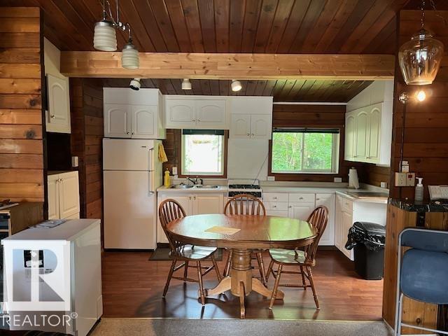 Awesome Pan-Abode home that the previous owner insulated & sided for year round living. Beautiful pan-abode interior with warm fireplace for extreme comfort. Attached 198 Sq.ft. screened in porch, with attached 294 Sq.ft. bunk house for the guests or the kids. Very large front deck to enjoy the views. Two single garages 12x24 and 16x24. This beautiful landscaped/treed yard is the perfect setting for unwinding. Lots of room for holiday trailer parking for guests as the home is on a double lot, Just steps to the shared water front area for water sports, piers or a boat. ALSO the lot right in front is also for sale for only $149,000.