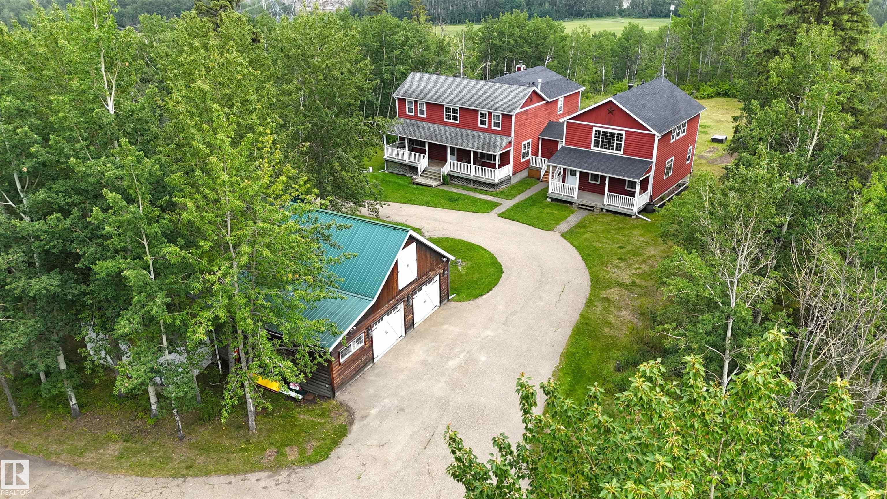 PRIVATE RIVER VALLEY ACREAGE: 2-storey with detached triple garage (34Wx24L, 220V, insulated) on 17.68 acres OUT OF SUBDIVISION, just west of Genesee Bridge Boat Launch on the North Sask River. HUGE 4,530 sq ft (plus full basement) home with massive bachelor suite connected by a fully enclosed breezeway/mudroom. On the main level: front office/bedroom, large formal dining room, living room w/ wood-burning fireplace, 2-pc powder room w/ laundry and a gourmet kitchen with centre island, built-in dishwasher, wall oven and walk-in pantry. Upstairs: 2 full bathrooms and 3 large bedrooms including the owner’s suite with walk-in closet & 3-pc ensuite. Basement: bedroom, 2-pc powder room, spacious rec area and plenty of storage space. BACHLORE SUITE: main floor with 4-piece bathroom, kitchenette and walk-in closet; upstairs 24’x32’ bonus room with sink, drawers & counter space. Outside: covered decks, fire pit, garden beds, chicken coop & run & storage sheds. So much opportunity on this peaceful, treed acreage