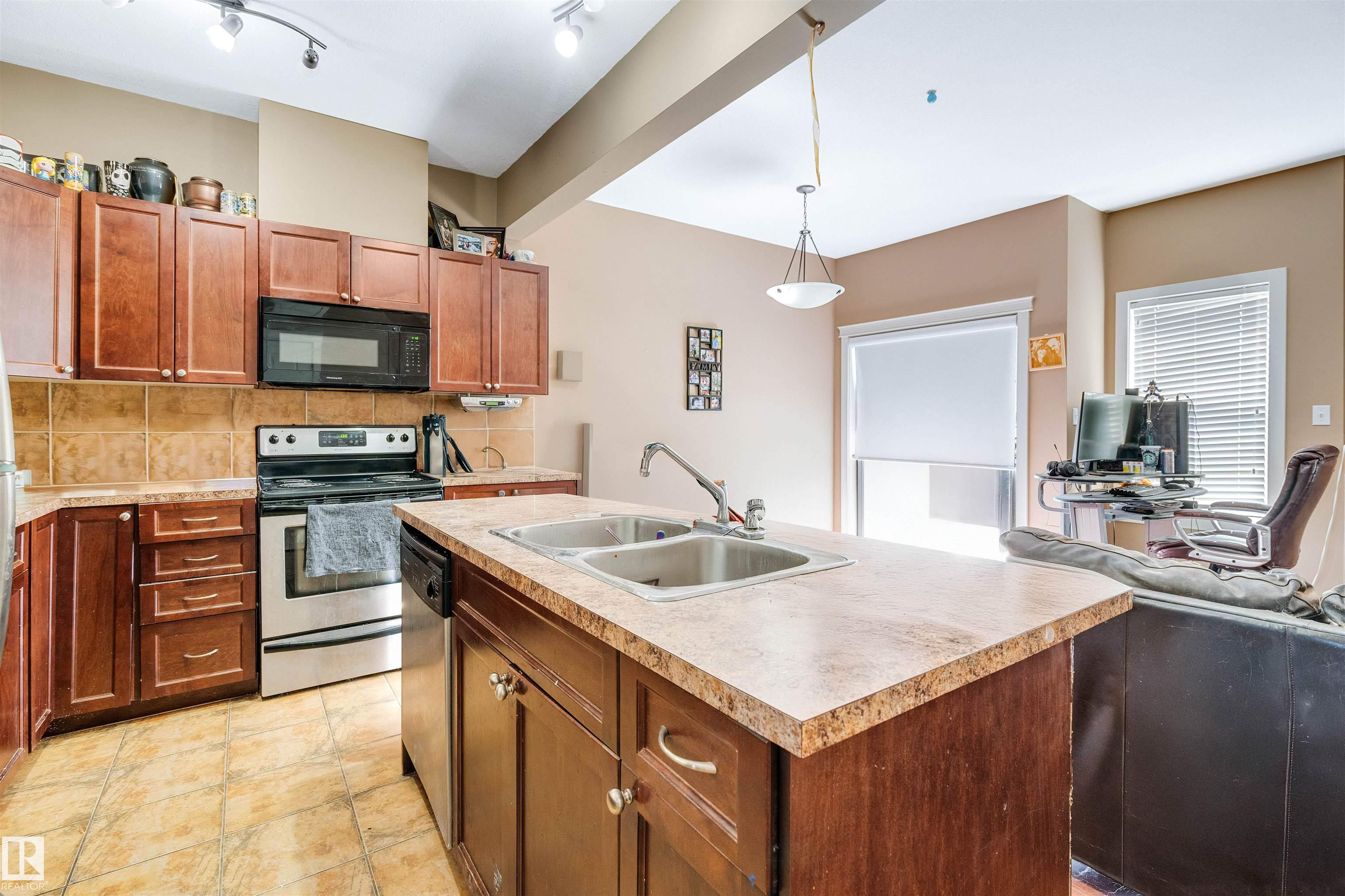 STEP INTO COMFORT AND CONVENIENCE with this beautifully maintained townhouse at 109 Sandstone Estates. Situated across from a lake and just steps from shopping, schools, parks, and the hospital, this home combines small-town charm with city accessibility and quick access to Hwy 16. The open-concept main floor boasts 9 ft ceilings, hardwood floors, and a spacious kitchen with large island overlooking the dining and living areas. A cozy gas fireplace adds warmth, while patio doors lead to a back patio and green space for summer enjoyment. Upstairs offers three bedrooms, including a BRIGHT primary suite with walk-in closet and 4PC ENSUITE, plus another full bath for the secondary bedrooms. The finished basement with large window is perfect for a THEATER ROOM, along with laundry and storage. Complete with ATTACHED GARAGE and a vibrant community hosting year-round events, this property delivers COMFORT, LOCATION, and VALUE in one package!