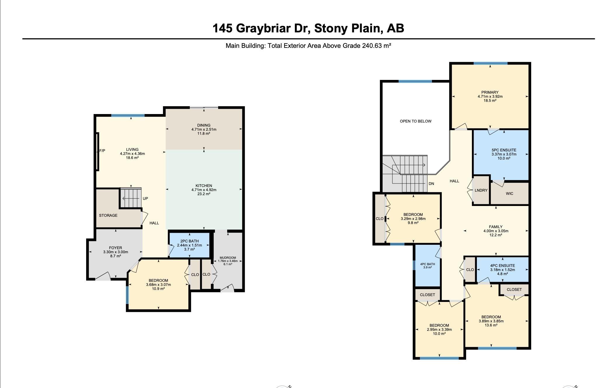 Welcome to this spacious two-storey home in the heart of Parkland, Stony Plain. The main floor features a cozy living room with a fireplace, a bright dining area with access to the deck, a functional kitchen, a den, a walk-in pantry, and a convenient 3-piece bathroom—perfect for everyday living and entertaining. Upstairs, you'll find a large bonus room, a luxurious primary bedroom complete with a 5 pcs ensuite and walk-in closet, and three additional bedrooms. One of the bedrooms includes its own 5 pcs ensuite, while the others share a 4 pcs bathroom. A dedicated laundry room adds extra convenience on the upper level. This home also offers a triple attached garage, providing plenty of space for vehicles and storage. Ideal for families looking for space, comfort, and a great location!