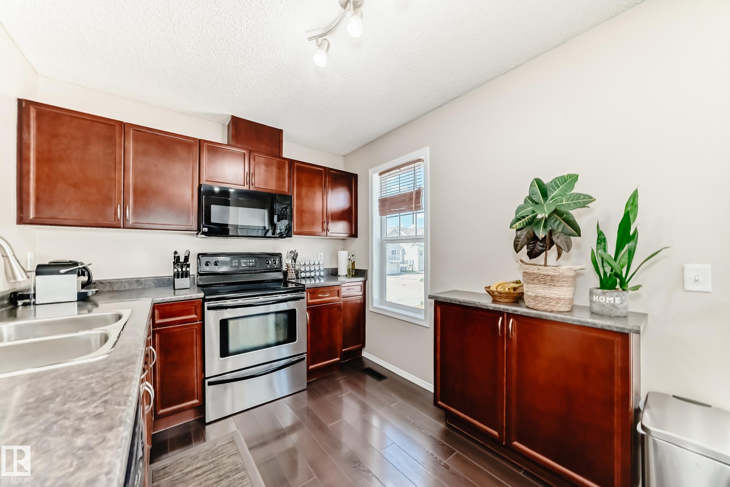 Welcome to this beautifully updated end-unit townhome in the desirable community of The Hamptons! This bright and immaculate 2-storey home offers 2 spacious bedrooms, each with its own walk-in closet, along with 2.5 bathrooms. The main floor features a large living room with soaring ceilings, an open kitchen and dining area perfect for entertaining, and plenty of natural light throughout. Recent upgrades include central A/C, a top-of-the-line Lennox furnace, and a new washer. The partial basement provides ample storage, while the double attached garage adds convenience year-round. Outside, enjoy your private, fully fenced south-facing yard in a quiet location near the back of the complex, or step out to a nice-sized balcony for your morning coffee. Perfectly situated within walking distance to schools, parks, shopping, restaurants, and public transit, with quick access to the Anthony Henday for an easy commute. This townhome is ideal for first-time buyers or a fantastic opportunity for investors !