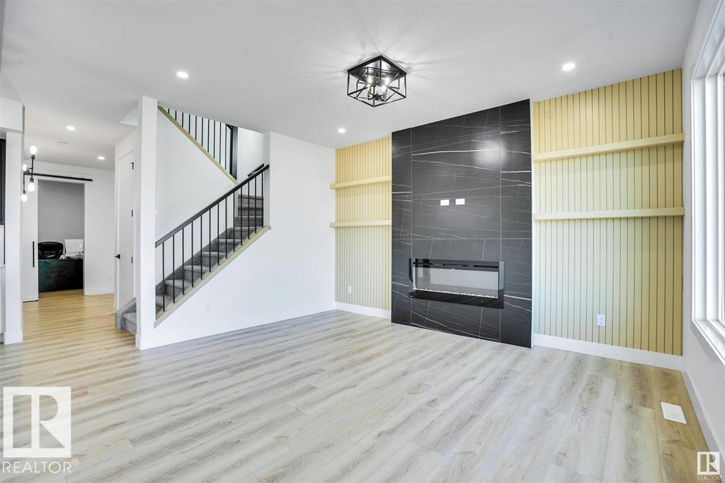 AFFORDABLE 1900 SQFT house is Ready To Move In. Den on Main floor and Bonus room on the Second floor plus 3 bedrooms. All the 3 floors are 9 feet high. Triple Pane windows. Separate entrance to basement with option for Legal basement. Built on single family lot. Huge size living room with extra large windows window and 8ft high front entrance door. Electric fireplace with Mantle Porcelain tiles all the way to the ceiling and custom shelves on both sides. Custom kitchen cabinets to the ceiling and quartz counter tops. Gas cook top and gas line for barbecue. Master Ensuite with soaker tub and custom shower with 24 x 48 inch tiles. Under mount sink with premium Quartz counter tops. Upgraded interior finishes with Maple hand rail to the second level. Indent ceilings and feature wall in Master bedroom. MDF Shelves in all the cabinets. Main floor with LVP, Porcelain tiles in all the bathrooms and Carpet on second floor. Front attached double garage. High efficiency Furnace and Tank. Much more....