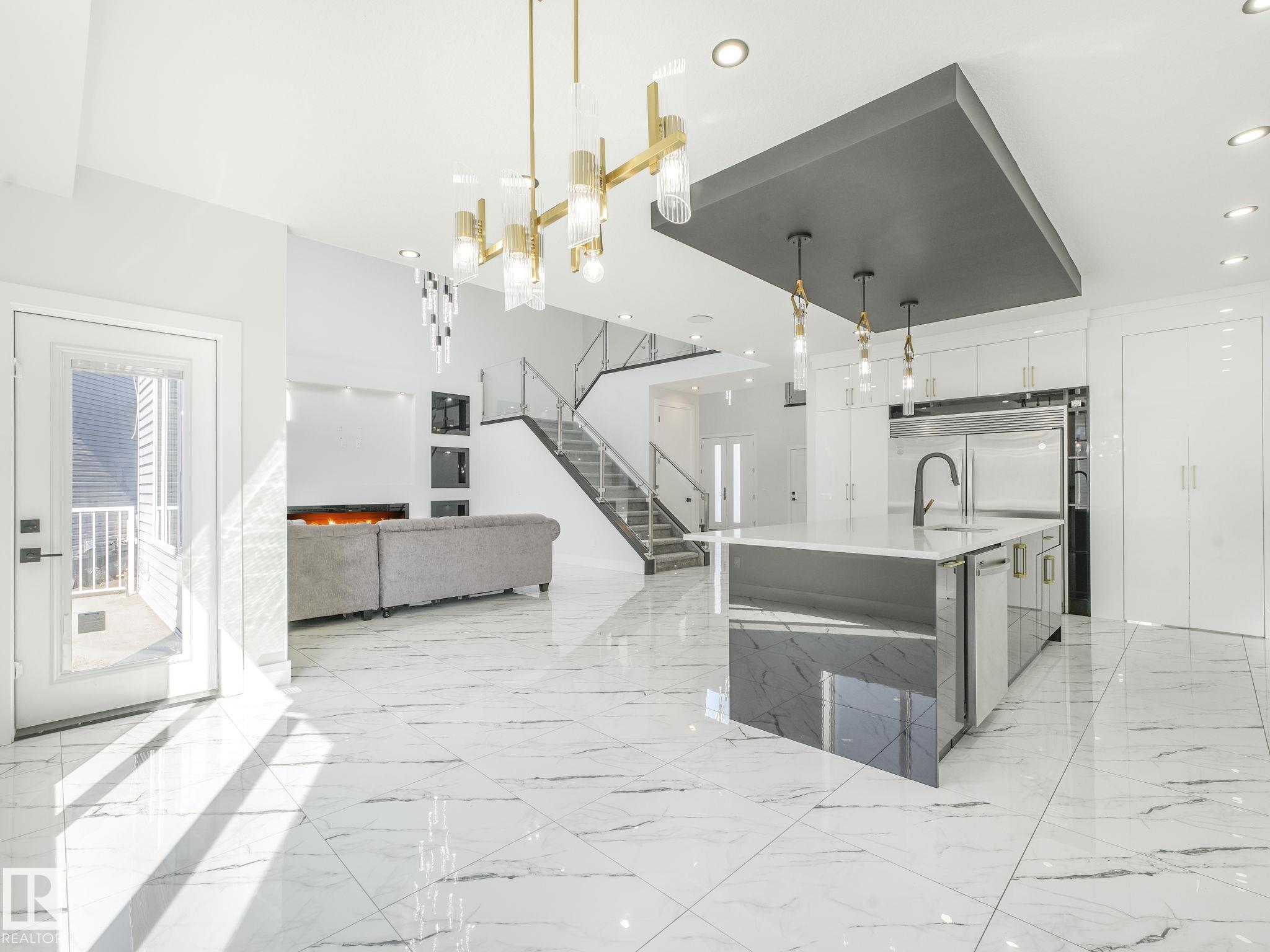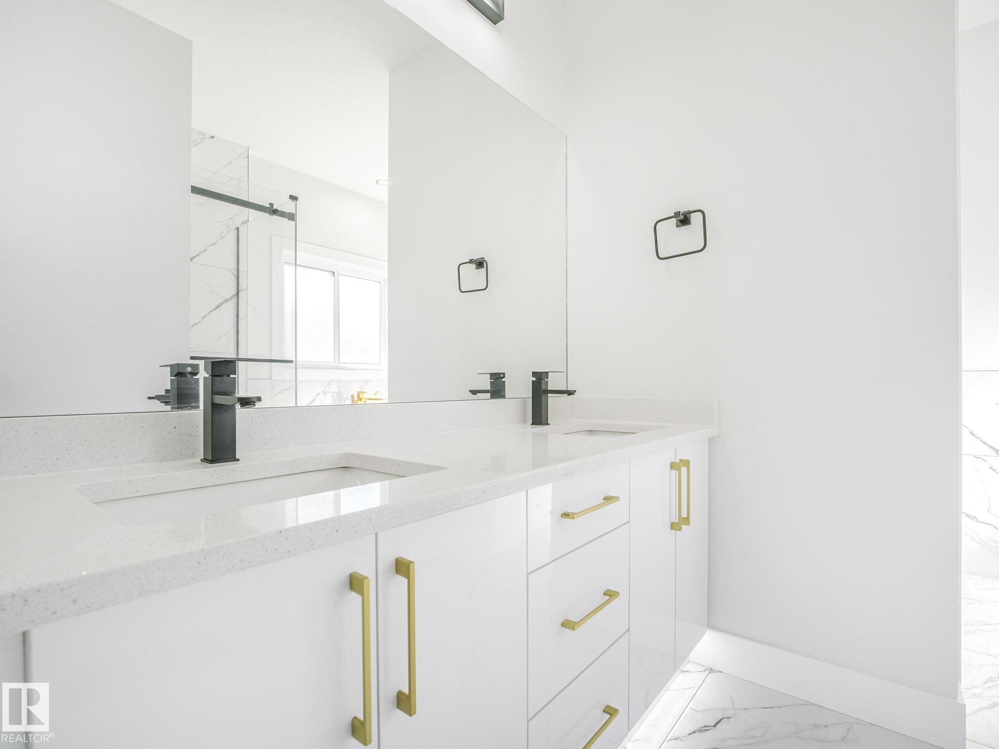This custom-built corner-lot home offers a unique layout that stands apart from traditional designs, ideally set across from a park, man-made lake, football field, walking trail, and spray park. Step into a welcoming receiving area that opens to an elegant open-to-below living space, enhanced by modern, high-end light fixtures and abundant natural light. The chef’s kitchen showcases a massive fridge, a convenient spice kitchen, and elegant finishes throughout, with the home roughed in for surround sound and central vac. Upstairs, all bedrooms feature their own 5-piece ensuite with double sinks, providing comfort and privacy for every family member, plus two linen closets for added storage. A side entrance leads to the unfinished basement, giving you the flexibility to design a legal suite, theatre room, home gym, or additional living space. With a spacious triple car garage and a thoughtfully designed layout, this home blends style, functionality, and incredible potential.