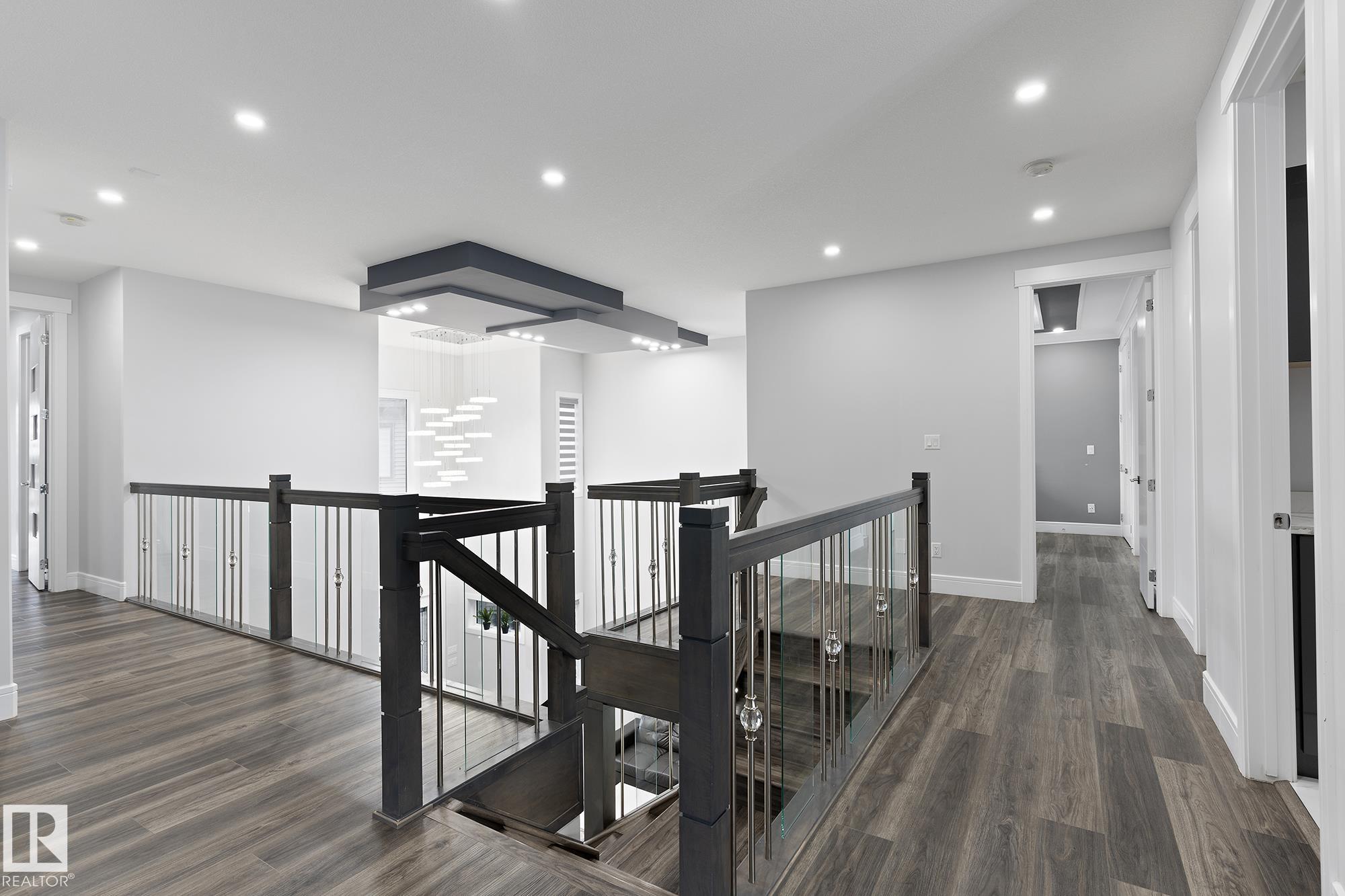 8 Bedrooms & 7 1/2 bathrooms the exquist residence has it all: spice Kitchen, main floor bedroom & ensuite, four beds on the upper level, a legal 2-bed basement suite, & a third separate basement living area. The main floor showcases two huge valuted areas withpremium tile, finishings and lighting. The chef’s kitchen is elegant & expansive. All three kitchens are outfitted with stainless steel appliances, quartz countertops & gas ranges. A glass staircase leads to the upper level comprised of four spacious bedrooms, each equipped with an ensuite bathroom, walk-in closet, built-in storage & coffered ceilings with ambient lighting. The primary bathroom is a luxurious retreat, featuring a Jacuzzi, steam shower, fireplace & an expansive walk-in closet. A bonus room & laundry area complete the second floor. The residence is fully wired for security & entertainment. The oversized double garage is heated & includes a sump & hot water. The fenced yard inc. a shed, fruit trees, & parking pad.