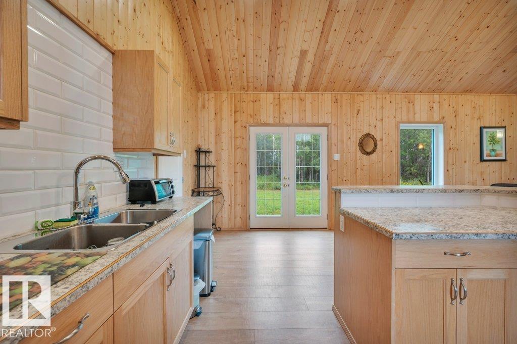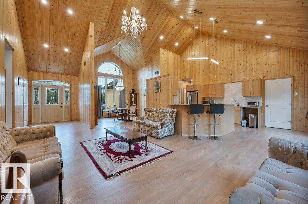 Custom-built 1,812 sq. ft. bung. on 72 acres is ready to impress! Like New,this home features soaring knotty pine ceilings, cozy in-floor heating,and a bright open-concept design.The main floor offers a spacious primary suite with a 5-piece ensuite and walk-in closet, plus two additional generous bedrooms.The framed basement includes space for three more beds,a den,bathroom,and large rec room.Originally set up as an equestrian property,the 30x60 barn is solidly built with a metal roof, concrete pilings, multiple stalls,and a full hayloft.It offers excellent potential for continued horse use,storage,or creative repurposing.The property also includes some corrals, pasture previously used for hay,and a beautiful mix of trees and open field.Private and serene, this acreage is ideally located close to Blackfoot Recreation Area and the Strathcona Wilderness Centre—perfect for year-round outdoor activities like cross-country skiing, hiking,and horseback riding.An outstanding opportunity in the peaceful country!