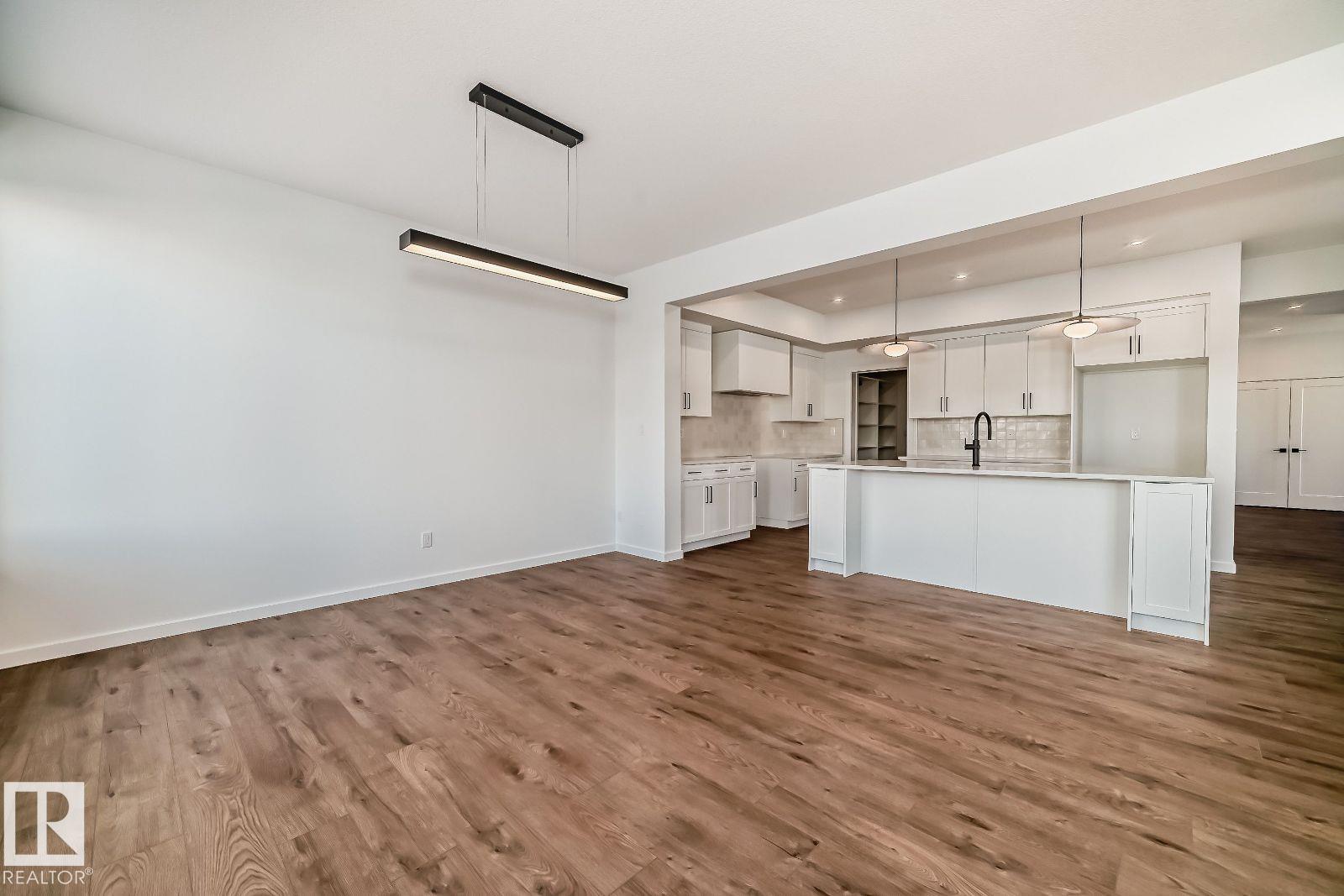 BRAND NEW! Offering the perfect blend of modern design and unbeatable location, this newly built home in Ambleside is ready for immediate possession. The custom kitchen stuns with a cabinet hood fan, built-in microwave, full-height backsplash, quartz countertops, and a matte black Kohler faucet. Wide vinyl plank flooring flows through the main floor, which also includes a versatile den and a striking 42" electric fireplace with feature wall paint. Upstairs, the upgraded primary ensuite offers a spa-like retreat with a drop-in soaker tub, black barn-style shower door, quartz backsplash, and custom vanity. Matte black fixtures, hardware, and upgraded lighting inside and out complete the bold, contemporary look. Just minutes from the Currents of Windermere, Riverbend, and Terwillegar. Plus, enjoy full home warranty coverage and award-winning customer service. Images and renderings are representative of home layout and/or design only. Sale price is inclusive of GST.