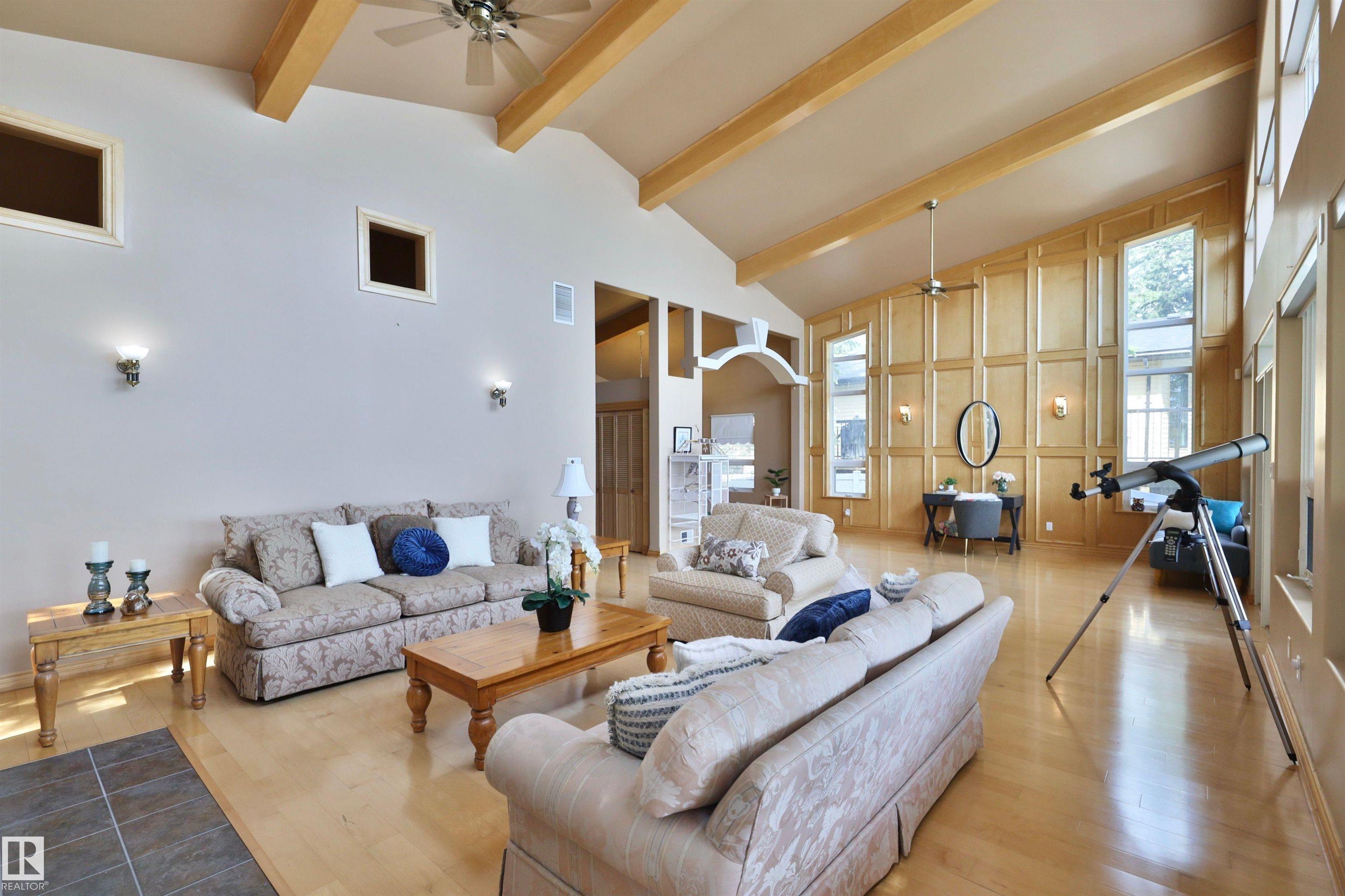 Absolutely stunning lakefront home on Mitchell Beach at Pigeon Lake is located on a 66x180 lot that has a boat house, storage sheds, oversized & heated double detached garage and covered decks both front and back. Inside this beautiful home there are 4 bedrooms, 3 bathrooms, open kitchen and dining room, massive living room with a wood burning fireplace and a spacious master bedroom with a full ensuite. Downstairs, there are 3 more bedrooms, a 3 pce bathroom, huge family room with a 2nd wood burning fireplace, a games room, wet bar and access to the sunroom. Clay tile roof, stucco exterior, hardwood and ceramic flooring through out makes this fine property very low maintenance. Exceptional construction and quality finishing is evident from the moment you enter this amazing property!