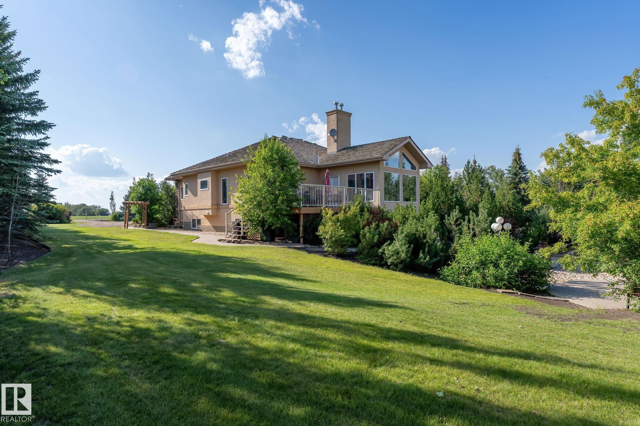 Nestled amid the lush farmland of Sturgeon County, this exceptional country residential executive-built bungalow offers a rare blend of luxury, functionality, and breathtaking surroundings—spanning over 72 acres of meticulously maintained property. Step inside to an inviting open-concept main floor, where soaring vaulted ceilings and an eye-catching stone fireplace create a warm yet grand focal point. The chef’s kitchen is thoughtfully designed seamlessly connecting the dining area and spacious living room. Just beyond, a sunroom with panoramic views invites you to relax and soak in the beauty of your private country estate. The lower level is equally impressive, featuring 2 additional bdrms, a jack & jill bath, and a grand recreation room—ample storage ensures everything has its place. Outside, the property is completed with a 53.5’ x 42’ shop. Rolling fields and open skies surround you, creating a serene and truly unique homestead. This is more than a home—it’s a lifestyle, offering a peace of country.