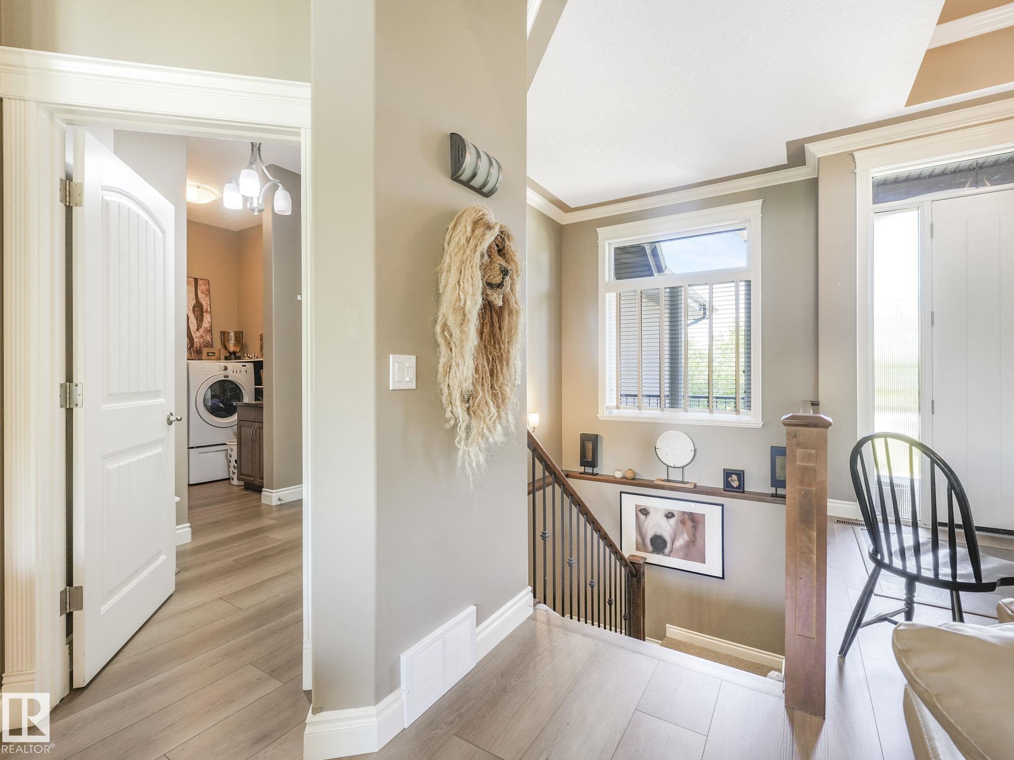 LUXURY GATED COMMUNITY 45+ country living! 5 MIN TO SPRUCE GROVE, 15 MIN TO THE HENDAY HWY.This 1652 sq ft bungalow was the original show home, tons of upgrades! Over 3000 square ft of useable space. STUNNING VAULT CIELINGS. MASSIVE backyard for your exclusive use! Treed private, BACKS ONTO A HUGE POND WITH WALKING PATHS EXCLUSIVE USE TO THE COMPLEX. Private storage for your RV, boat, or trailer. Expect to find beautiful cabinets, lots of granit counter tops, & featured fireplace. NEW:VINYL PLANK FLOORING, NEW FURNACE. Main floor has 2 bedrooms, the master HAS GEORGOUS VIEW & has an ensuite built for pampering. The O/S dining area walks out onto a massive covered deck! Over sized double garage, 3rd bay with separate garage door for quad or lawnmore.Downstairs is professionally finished. 2 additional bedrooms, massive family room, 3 piece bath & storage. IMAGINE NO MORE SHOVELING, front lawn is looked after too.This very unique complex is so special in so many ways. A Must see to really appreciate!!!
