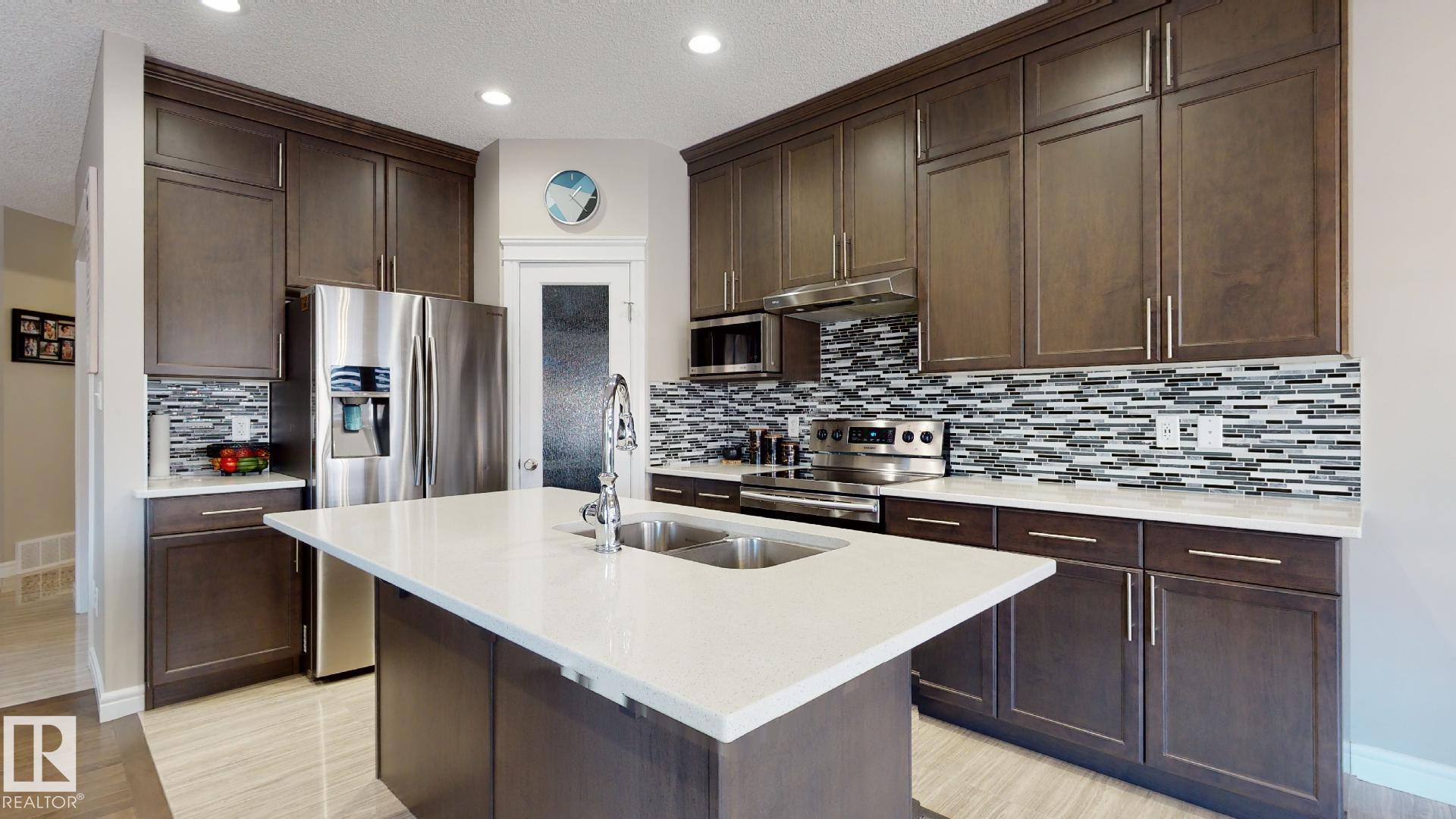 PRICED TO SELL! Stunning 2-storey in CHAPPELLE, built 2017, walking distance to Donald R. Getty School, shopping & transit. Unique 1,800+ sq. ft. floor plan with CENTRAL A/C, 9’ ceilings, composite oversized rear deck, concrete sidewalks & low-maintenance backyard. Main floor offers den, spacious family room w/gas fireplace, gourmet kitchen w/dark ceiling-height cabinetry, granite counters, tile backsplash & SS appliances, plus laundry. Upstairs: large master w/WIC, 4-pc ensuite w/stand-up shower & soaker tub, 2 more bedrooms & full bath. Oversized bonus room w/door can serve as 4th bedroom. Basement ready for your ideas w/rough-in plumbing. Double attached garage. Enjoy a modern layout, premium finishes & move-in ready comfort in a vibrant family community with parks, trails, playgrounds & nearby shops—your dream home awaits!