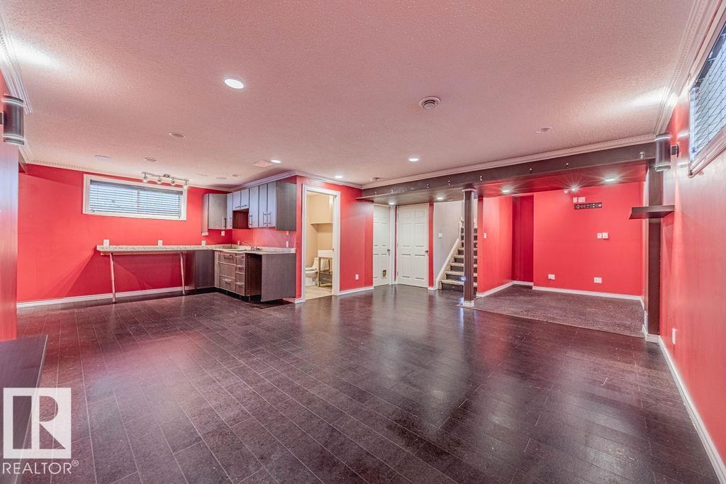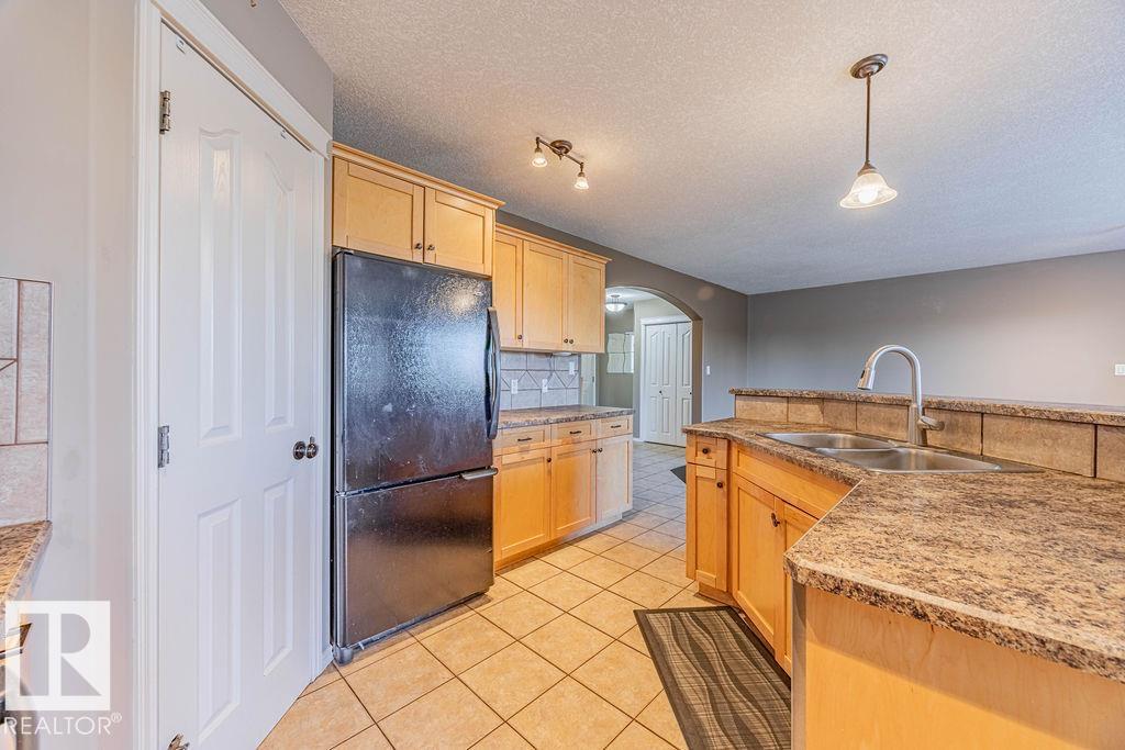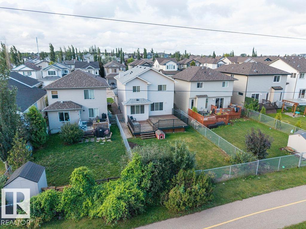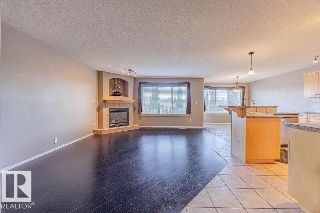 Lakeland Ridge Beauty! This custom-built Hallmark home is a perfect blend of warmth, space, and functionality. Step into a bright foyer that opens to a spacious eat-in kitchen with a central island, all in neutral tones. The open-concept main floor features a cozy corner gas fireplace and patio doors leading to a massive tiered deck—ideal for entertaining. The fenced, landscaped yard backs onto a walking path for added privacy. Upstairs offers 3 bedrooms, including a generous primary suite with a walk-in closet, ensuite with jetted tub, and separate shower. Enjoy the convenience of main-floor laundry. The finished basement boasts a wet bar, 2-piece bath (with rough-in for shower), and sound wiring. Double attached heated garage plus an extra-long driveway complete this exceptional family home.