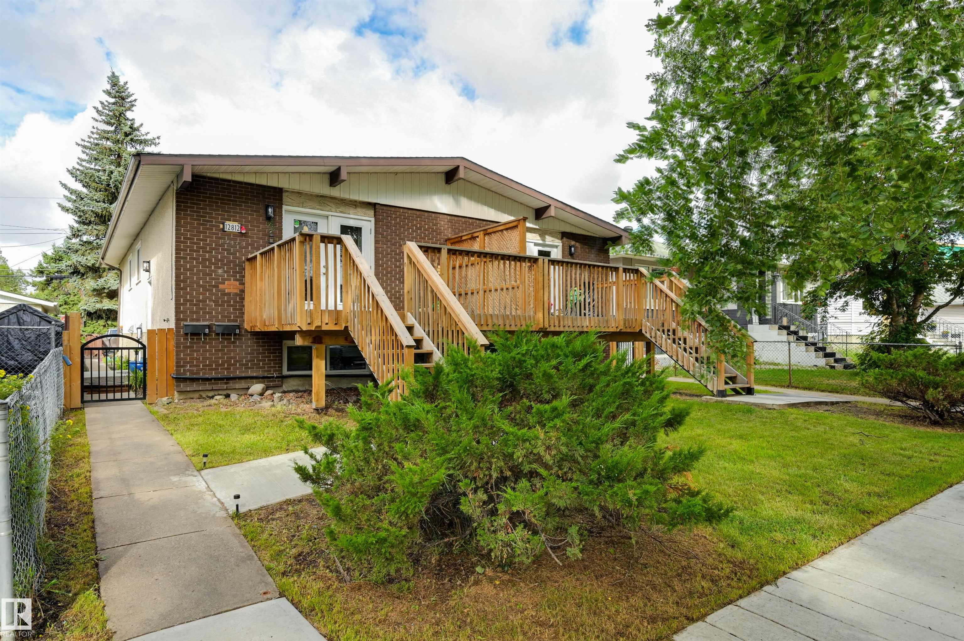 Calder side-by-side bungalow duplex with legal suites. Each upstairs unit has 2 bedrooms / 1 full 4 piece bathroom & each basement suite has 2 bedrooms and 1 full 4 piece bathroom. All 4 units have upgraded kitchens. Every unit is self contained with in-suite laundry and separate entrances. There is no carpet in any of the suites. Main floor units have access to very generous raised east facing deck and front yard & the basement suites have access to a fully fenced and landscaped west facing yard. There are a total of 4 rear parking stalls. RENT: 12814 (basement) - rent $1500 12814 (main) - rent $1550 12812 (main) - rent $1575 12812 (basement) - rent $1200