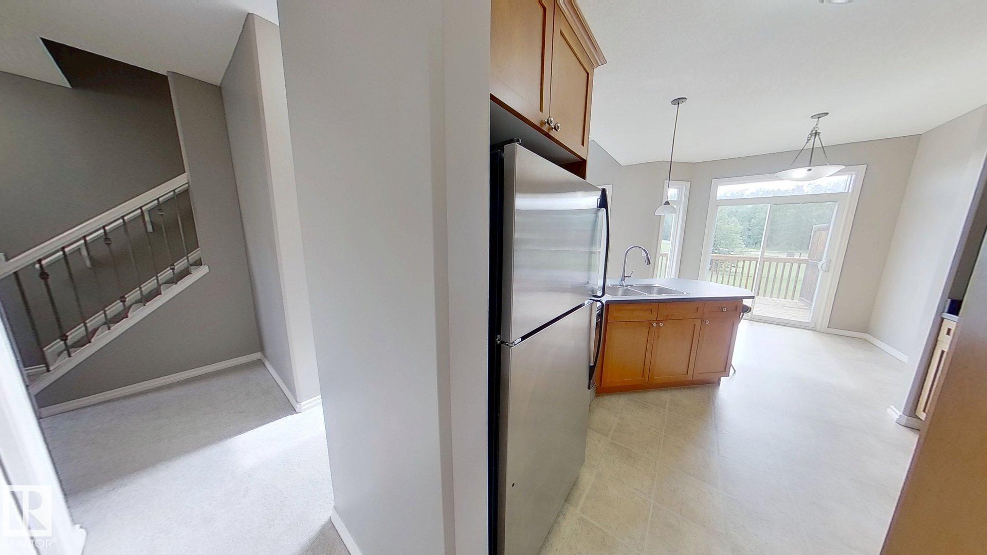 Charming 1,255 Sq. Ft. Westerra Park Condo – Park Views! This 1,255 sq. ft. two-story condo, backing onto a serene park, offers 3 spacious bedrooms and 2.5 modern bathrooms. The living room features a cozy fireplace and vaulted ceilings for a bright, airy feel. The large master suite includes a vaulted ceiling, ample closet space, and a private ensuite. Freshly updated with new paint, plush carpet, sleek countertops, stylish bathroom fixtures and a new 10 year warranty furnace. The insulated double garage has a water faucet and gas rough-in. Enjoy BBQs on the private deck with a natural gas outlet, overlooking the park. The unfinished basement, with high ceilings and plumbing rough-in, is perfect for a rec room or gym. Ideal for families or professionals, it’s steps from schools, parks, and Stony Plain amenities.