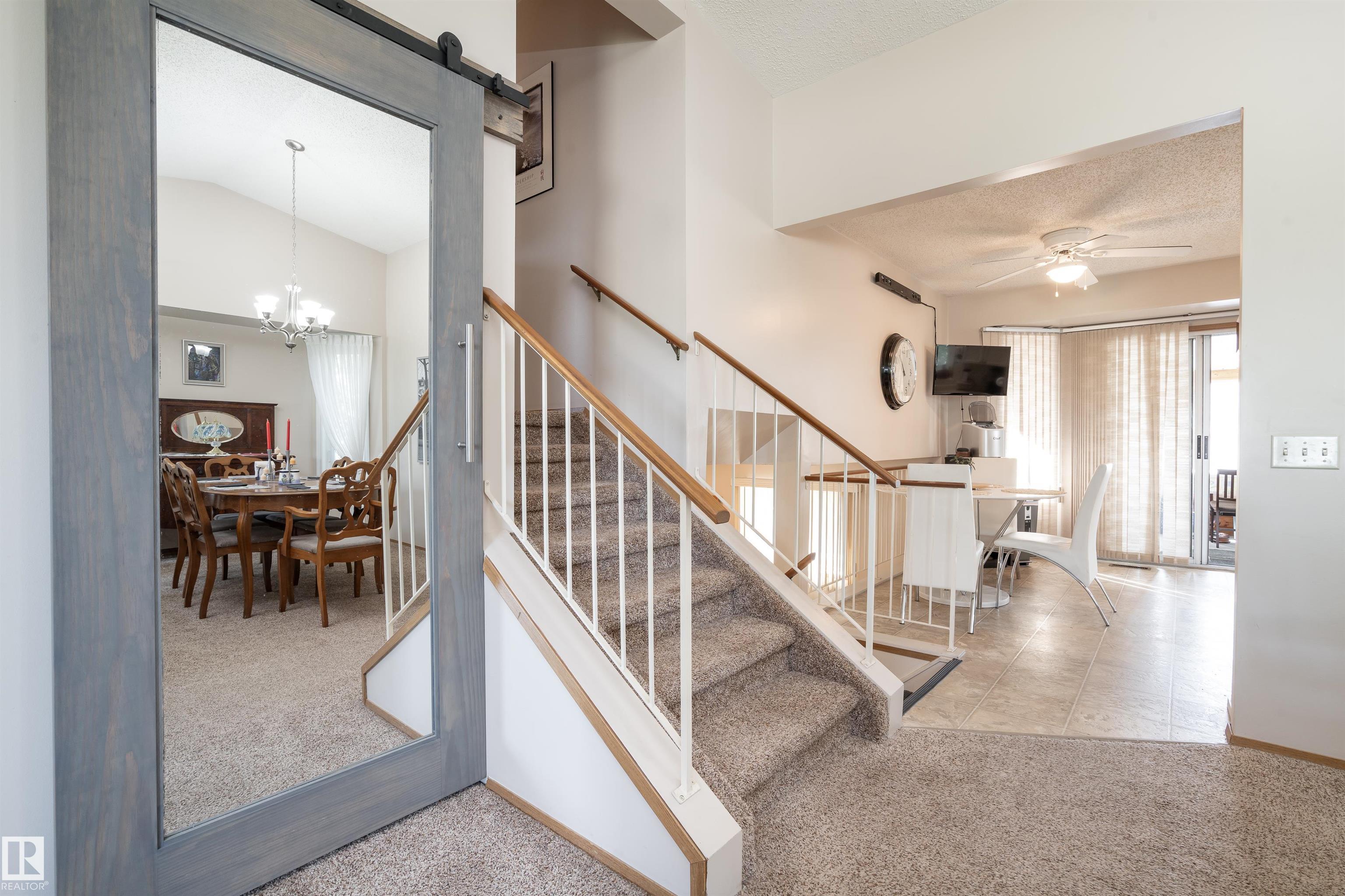 Welcome to this beautifully maintained 4 level split in the heart of Stony Plain. Filled with natural light, this home features a cozy fireplace, many updates including a new roof (2021) and triple pane windows (2020), and a bright sunroom just off the kitchen. The sunroom is perfect for morning coffee, gathering with friends, or relaxing in the fresh air year-round. The white kitchen with an island is ideal for everyday living and entertaining, while the spacious primary suite includes a connecting door to the bathroom. With 4 bedrooms and 1.5 bathrooms, there’s room for everyone. The lower levels provide generous recreation areas and an unfinished basement with potential for a gym, media room, or hobby space. Outside, enjoy an expansive fenced yard with two apple trees and plenty of space to relax or host gatherings. This home blends updates, charm, and functionality in a welcoming setting.
