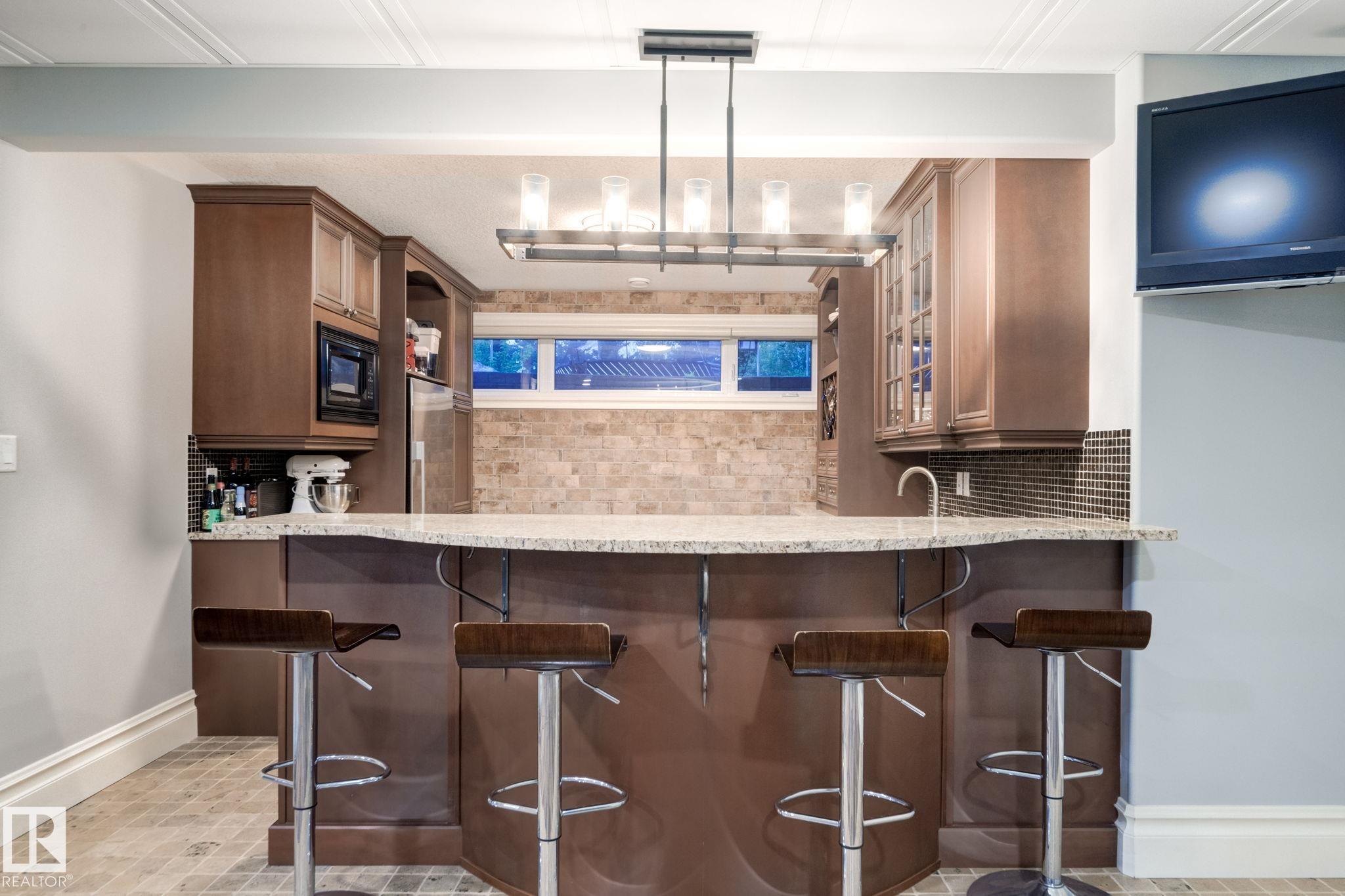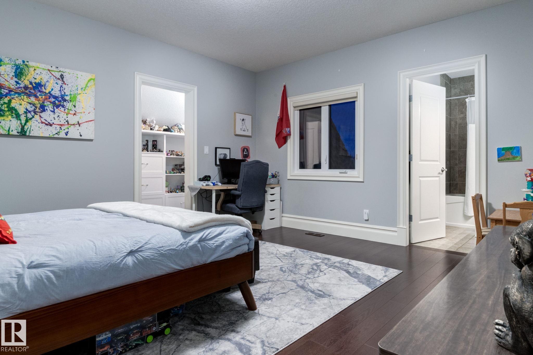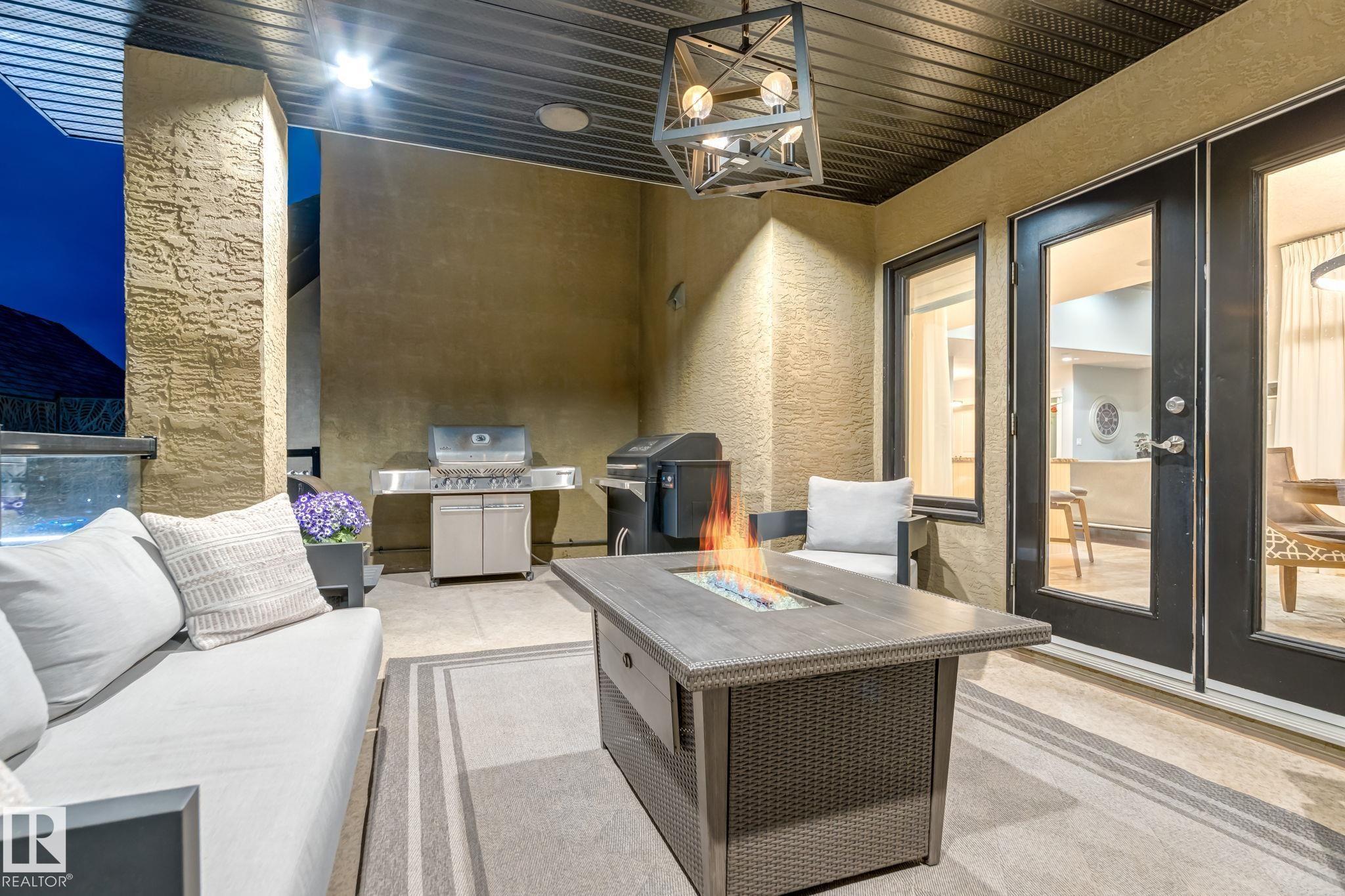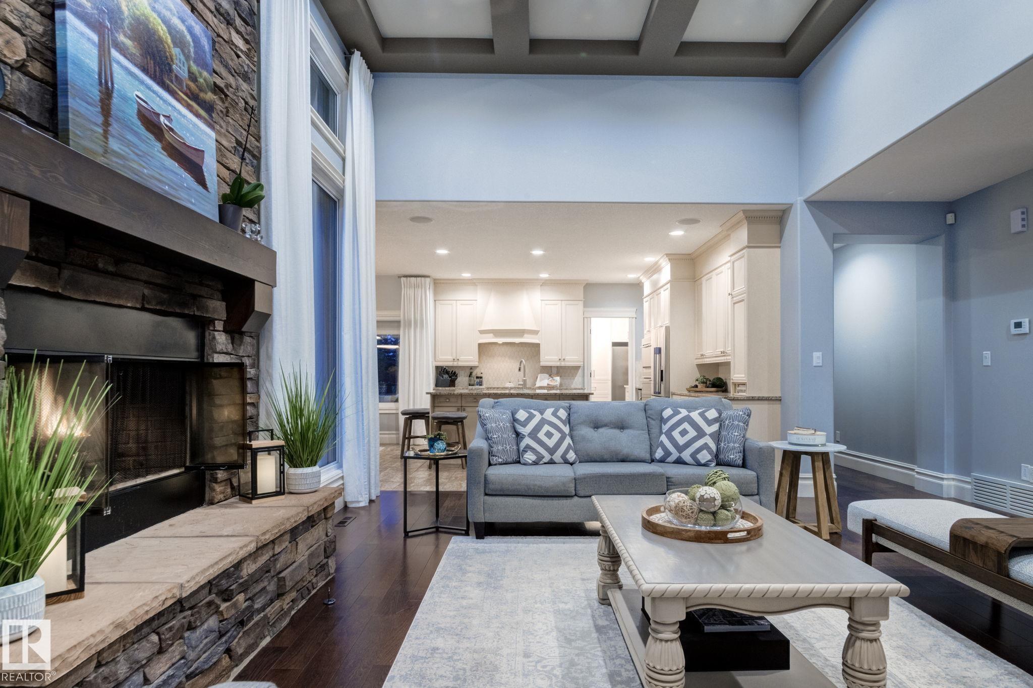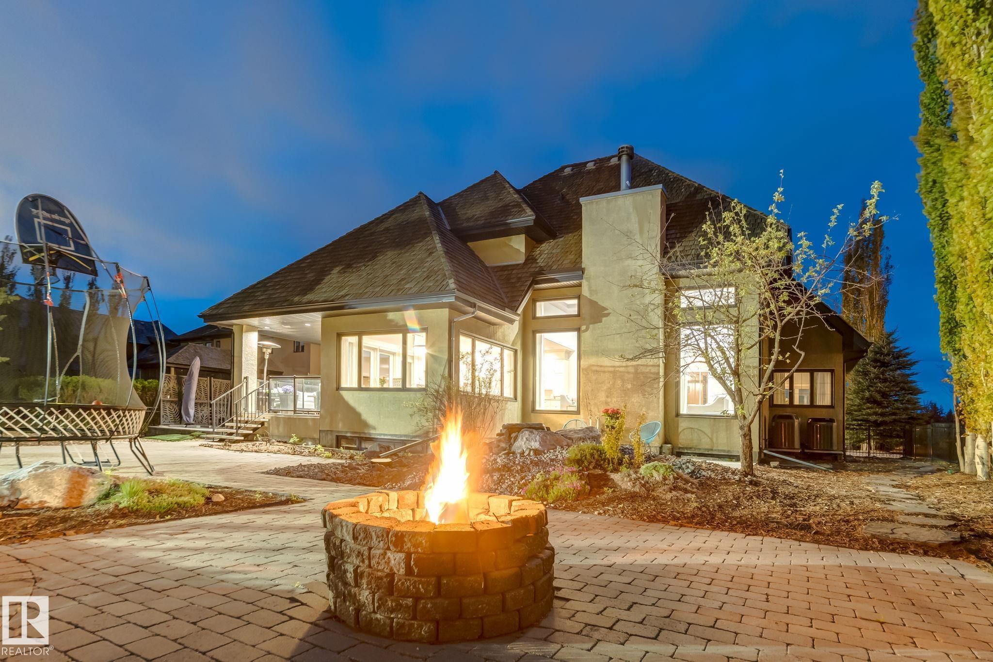 This stunning custom-built residence in prestigious Riverstone Pointe blends refined elegance, functionality, & luxurious finishes throughout. The grand foyer opens to a central wood-burning fireplace, hardwood floors, a den, & a private office. Soaring ceilings & large windows fill the main floor with light. The living room features a vaulted ceiling & stone fireplace, flowing into a chef’s kitchen with granite counters, gas stove, island, & walk-in pantry. Step outside to a large deck with a sunken hot tub, gas fire tables, & outdoor dining. Upstairs offers four spacious bedrooms, including a Jack & Jill suite, a second ensuite bedroom, & a private primary retreat with vaulted ceiling, fireplace, spa-like ensuite, & massive walk-in closet. The fully finished basement includes a rec room with bar, fifth bedroom, steam shower, & more. An oversized triple garage & full-size outdoor hockey rink with heated dressing room complete this one-of-a-kind property Luxury, privacy, & lifestyle have come together.