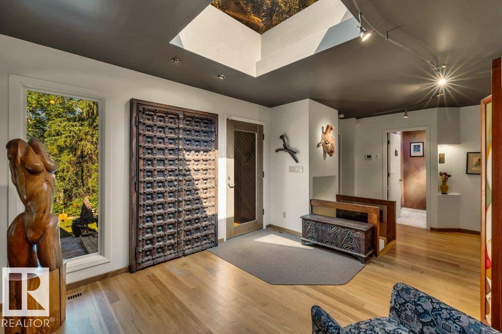 Begin your day & Finish your day with Solace. Find this less than 10 mins from city limits, the N Sask River and Devon. Words really don’t do this home or property justice. You must come see for yourself if you are a serious buyer! Tucked privately away, you’ll believe you are in a different part of the world. Walk into warmth where living, kitchen & dining meet with outdoor deck spaces. 2 bedrooms on the mn flr; primary w/ spa-like ensuite. Pass by office spaces to a loft w/ study & another bed. Downstairs: access to garage, laundry, work room, bedroom w/3 pc ens, sauna, exercise retreat & yes, a squash court/gym. Get creative & rear entry mudroom could even allow for separate suite access. With delineated spaces, everything remains spacious & airy, w/ many access points to the outdoors where you find both obvious and hidden trails. If a shop isn’t enough, find badminton, chess, bocce, tobogganing, hiking, nature and fun. Home, shop & land all ‘speak’ architecture – & there is something for everyone!