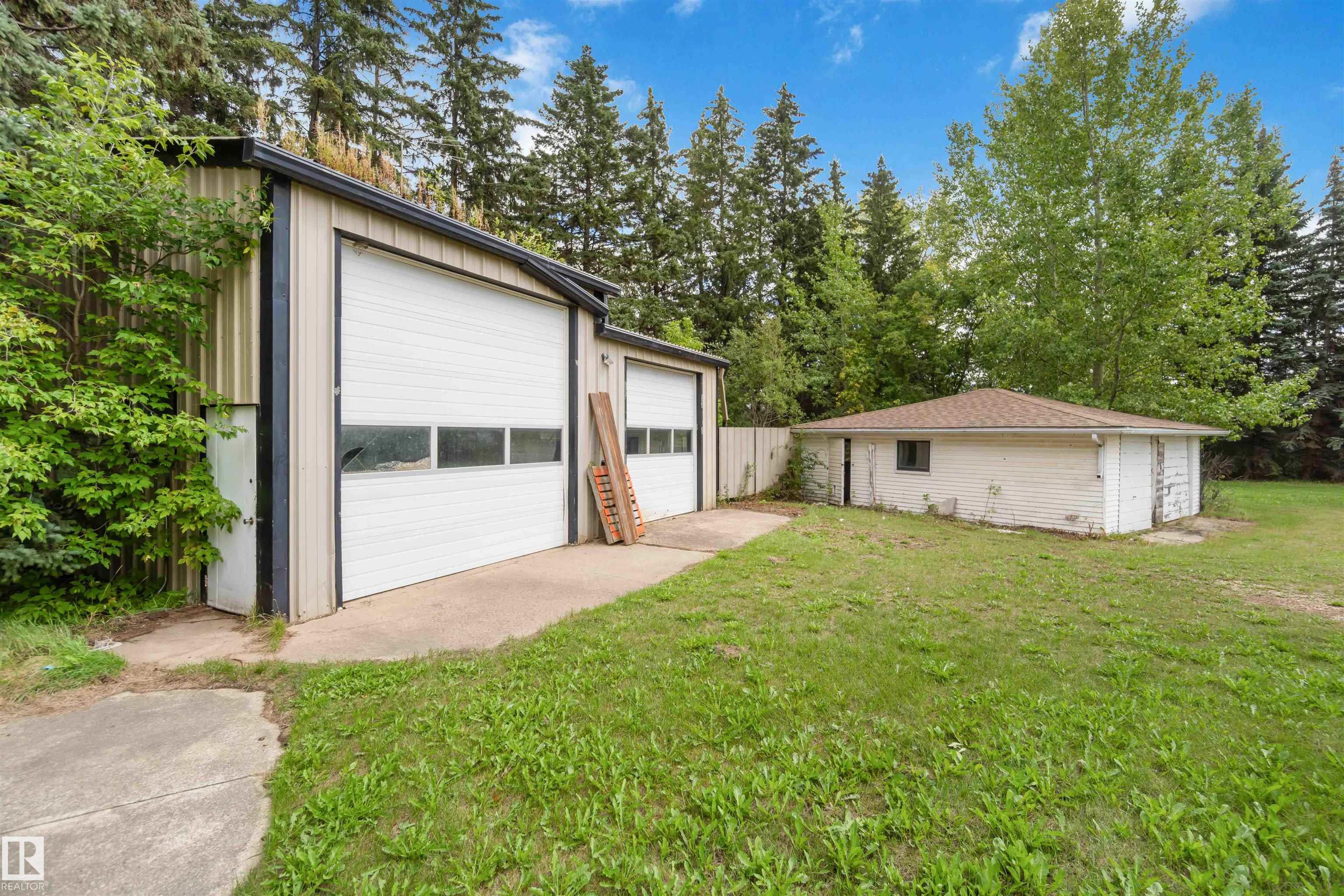Dreaming of Acreage Living? Escape to this private, peaceful 2.99 acres, not in a subdivision, situated on level land, bordered by beautiful, mature trees. This property features a well-designed yard with a 1530 sqft Bungalow home that requires your TLC. The insulated and heated SHOP (Bay1: 34 x 15 & Bay2: 25 x 15) offers metal exterior & interior walls, cement floors, pit, 220 power and 2 shop doors, 10x14 & 10x10. In addition, the property presents a double, detached, oversized garage with a cement floor. This property is ideally located, making commuting easy...just 5km from Hwy 28. Only 10 minutes to Bon Accord, 20 minutes to the Edmonton Garrison, 25 minutes to St. Albert, 30 minutes to Edmonton's North end. Best of both worlds- close to city conveniences, yet private and quiet so that you can enjoy quiet, starry nights and nature, at its best!