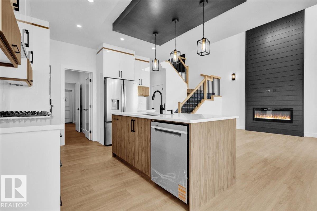 Step into this stunning new build in Erin Ridge, showcasing over 2100 sq ft of modern elegance across two thoughtfully designed levels. A walk-through pantry leads to a chef’s kitchen with CEILING-HEIGHT cabinetry, QUARTZ countertops with MATCHING BACKSPLASH, gas cooktop, built-in microwave & wall oven. The OPEN-TO-BELOW living room boasts a soaring shiplap-featured wall with a sleek ELECTRIC FIREPLACE framed by timeless wood detail & elegant spindle railings. The main floor includes a den or 4TH BEDROOM & FULL BATH, while upstairs highlights a bonus room with a UNIQUE FEATURE WALL, two spacious bedrooms, a laundry room & a stunning primary suite with room for a California king, a striking SLATPANEL FEATURE WALL & a SPA-INSPIRED ensuite with a STAND-ALONE TUB, shower & DUAL SINKS. MDF shelving enhances all closets & a deck extends outdoor living. A SIDE ENTRANCE offers legal-suite potential. Close to shopping, a theatre & more, this home is style, comfort & opportunity combined. Welcome to your new home!
