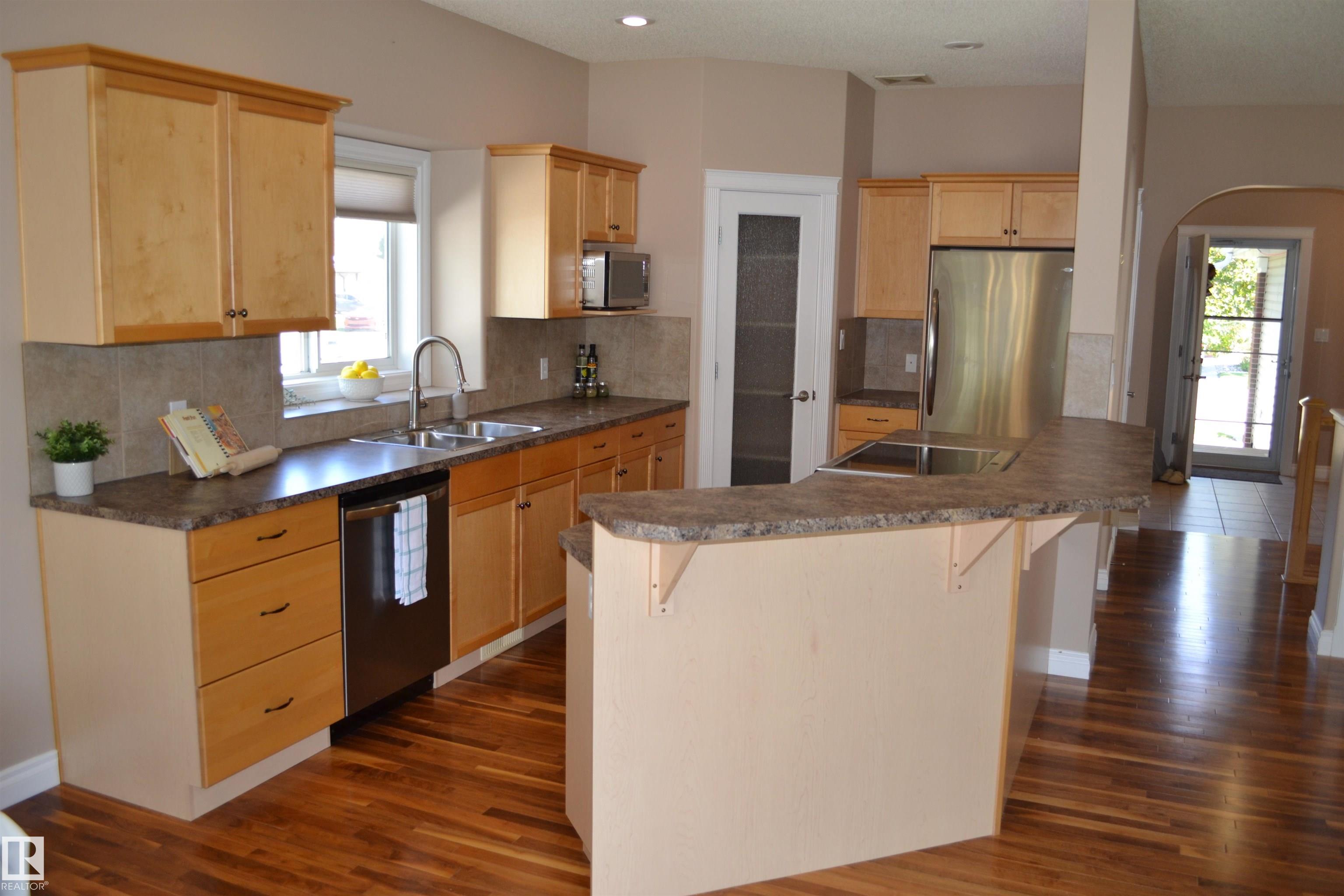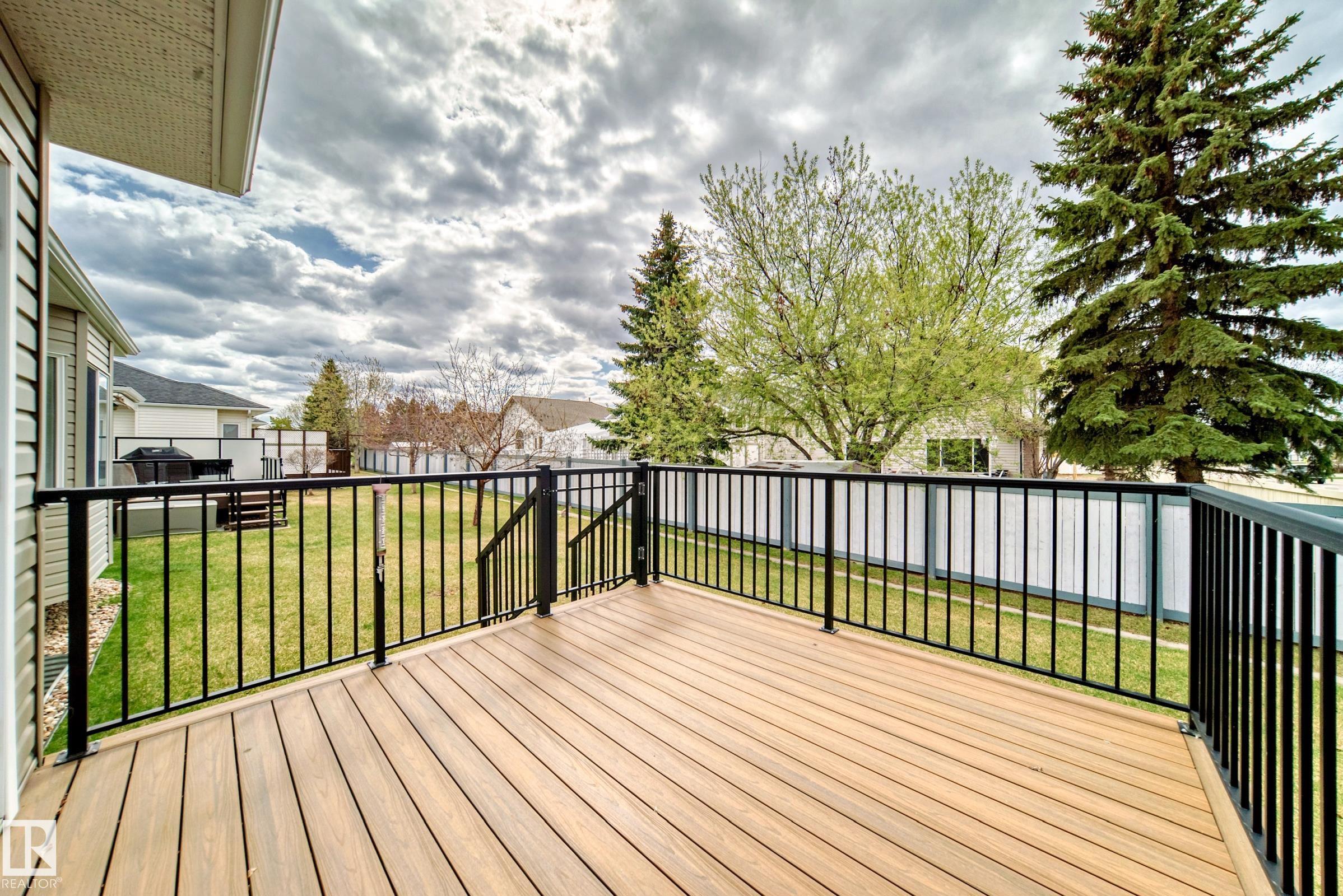 55+ bungalow half-duplex in Stoneshire! This charming home offers an open and inviting floor plan highlighted by large windows and tons of natural light. The sizeable front entrance leads to a cozy bedroom/den off to one side. To the other side, you will find a 3 piece bathroom, laundry room and access to the double attached garage. The spacious living room features a gas fireplace and beautiful hardwood flooring. The bright dining room leads out to the private deck and large backyard. The centrally located kitchen has large island with eating bar, stainless steel appliances and a corner pantry. Completing the main floor is a large primary bedroom with a 5 piece ensuite. The finished basement provides a large recreation room, an additional bedroom, another 3 piece bathroom and a massive storage room. Landscaping and snow removal are included in the HOA fees.