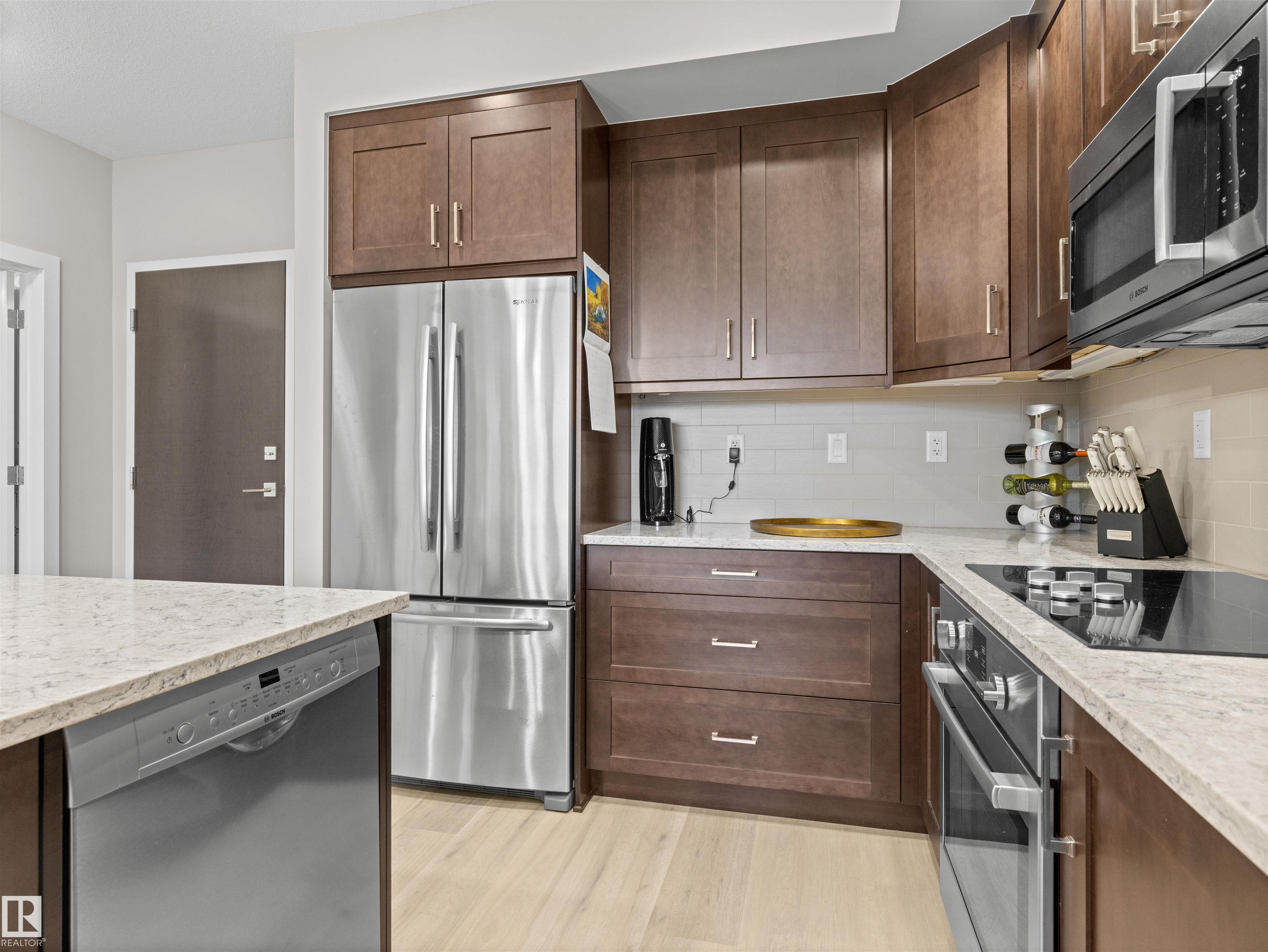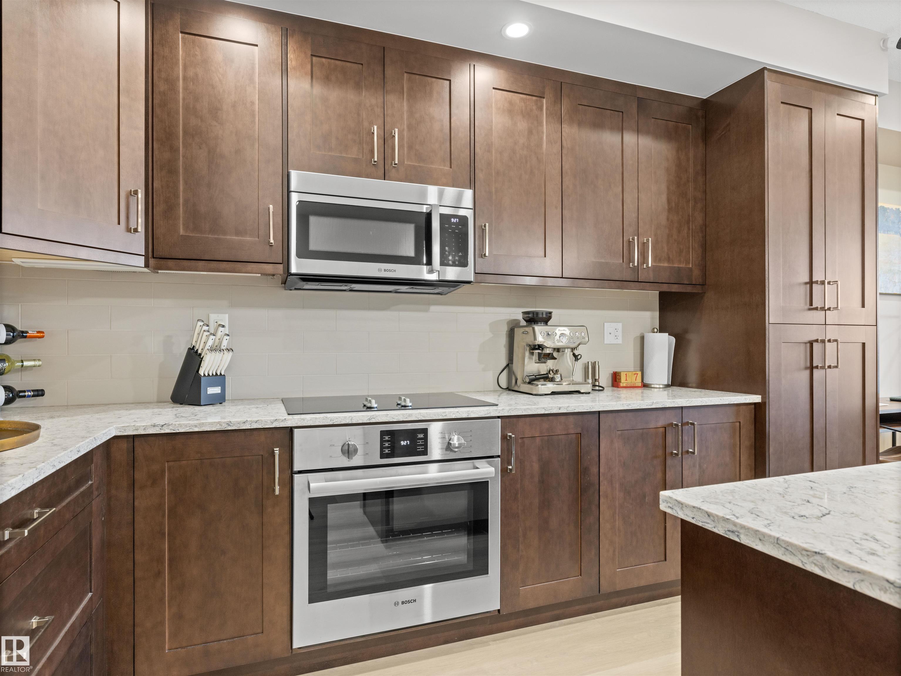 GORGEOUS ONE-BEDROOM IN BOTANICA! Immaculate and move-in ready! This stunning 767 sq. ft. condo in Botanica - St. Albert's premier concrete development - features 10' ceilings, high-end finishings, and elegant design throughout. The Chef's Kitchen has upgraded stainless steel appliances, built-in oven, countertop stove, and quartz countertops with island. The bright living room has an electric fireplace and wall-mounted TV - perfect for entertaining. Enjoy the spacious bedroom and Luxury 4 piece bathroom and in-suite laundry. This unit has a huge balcony with city-scape views! Heated parking and oversized storage cage. Botanic residents enjoy exclusive amenities: fitness centre overlooking the river valley, rooftop terrace BBQs, dog run, picnic area and breathtaking views, elegant party room to enjoy your guests, Walk to the Shops at Bellerose for fine dining, shopping, and everyday conveniences. Botanica is more than a home - it's a lifestyle! This unit is air conditioned. EXTRA LARGE STORAGE.
