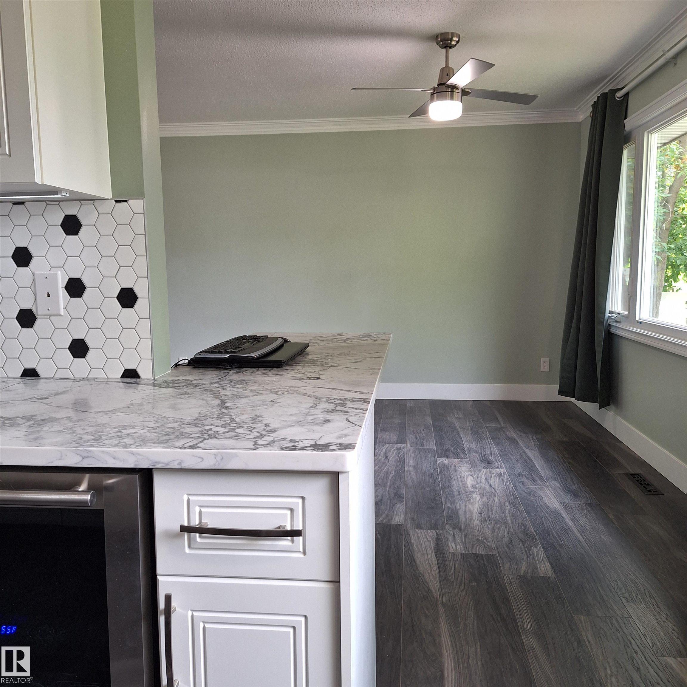 This exquisite bungalow in Maplegrove has a total of 2474 ft2 living space. The main floor has 1.5 baths & 3 bedrooms, a large primary w/ensuite & WIC. The kitchen has dual-temp. fridge, stainless toe-kicks and premium appliances has ample room for a Bistro table & several to work together while crown moulding adds charm. Basement has a spacious rec room. The fireplace & cork flooring makes this a cozy gathering spot. The 4th bedroom with an office zone leads to a WIC that also boasts a table w/mirror, shoe rack & jewelry cabinet. The washroom has mood lights and shower system. The private yard is the perfect for badminton or soccer and enjoying a smokie at the firepit. A dog run or patio w/artificial turf completes the yard. The oversized insulated garage offers stainless work benches w/ self-healing surfaces. With some custom features like a hidden safe & ironing board, heated bidet, weather station etc. combined into this thoughtfully renewed bungalow, you’ll enjoy the added comfort this home offers
