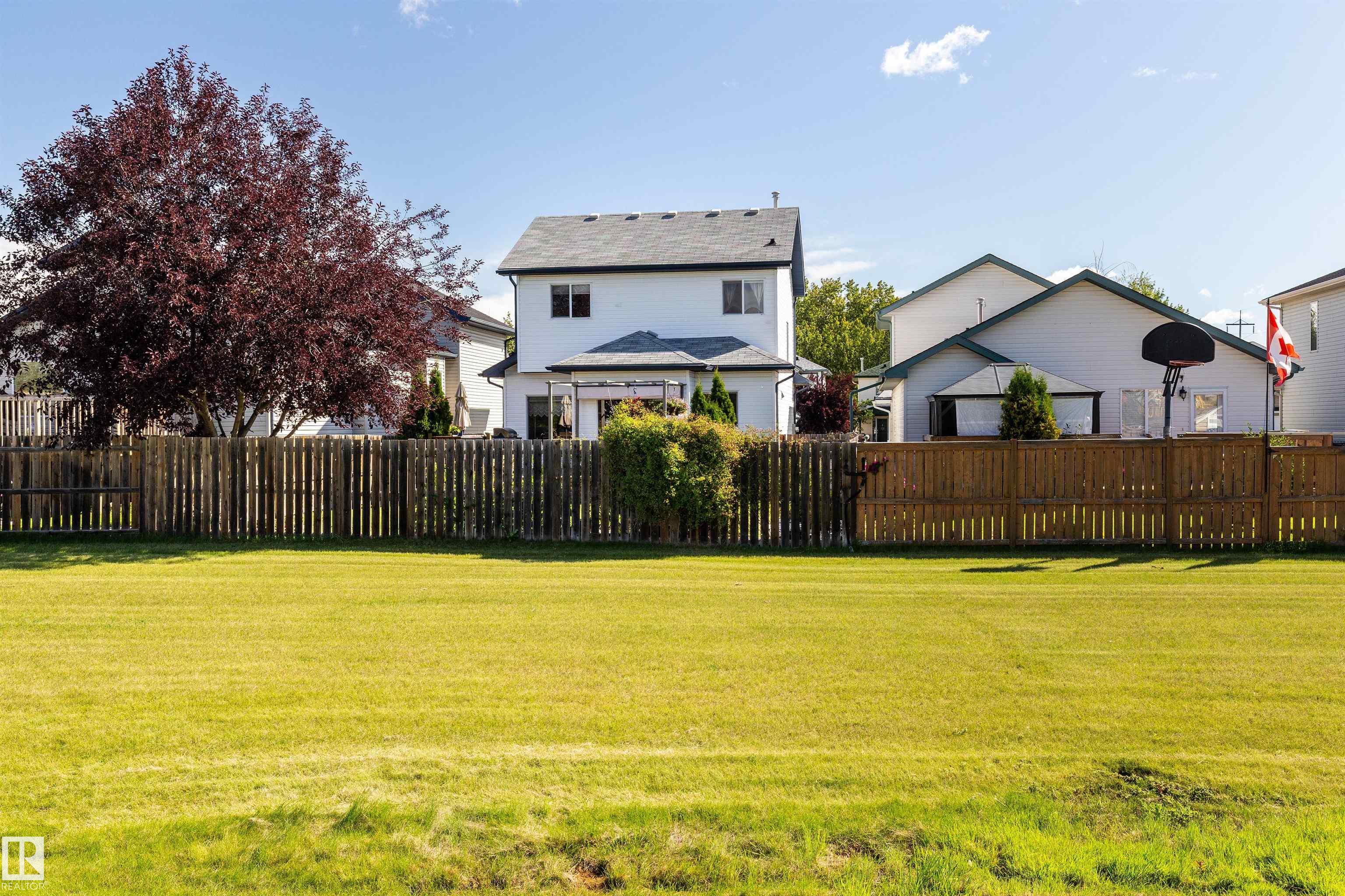 Welcome to your dream home in Grayridge Bay—where charm, space, and serenity meet! This beautifully maintained two-storey gem offers over 1500 sq ft of living space, backing onto a peaceful greenbelt with no direct rear neighbours and a playground just steps away. The main floor greets you with a soaring open-to-below foyer, a bright open-concept living room and kitchen, plus a convenient two-piece bath. West-facing windows let natural light pour in, creating a warm and inviting atmosphere. Upstairs, you'll find three airy bedrooms including a spacious primary suite with ensuite and generous closet. The finished basement adds flexible space and ample storage. Outside, enjoy a fully fenced yard perfect for morning coffees or sunset views from the deck. Located on the east side of Stony Plain with quick commuter access and surrounded by greenspace and parking, this home delivers unbeatable value and lifestyle. Don’t miss your chance to fall in love with this exceptional property!