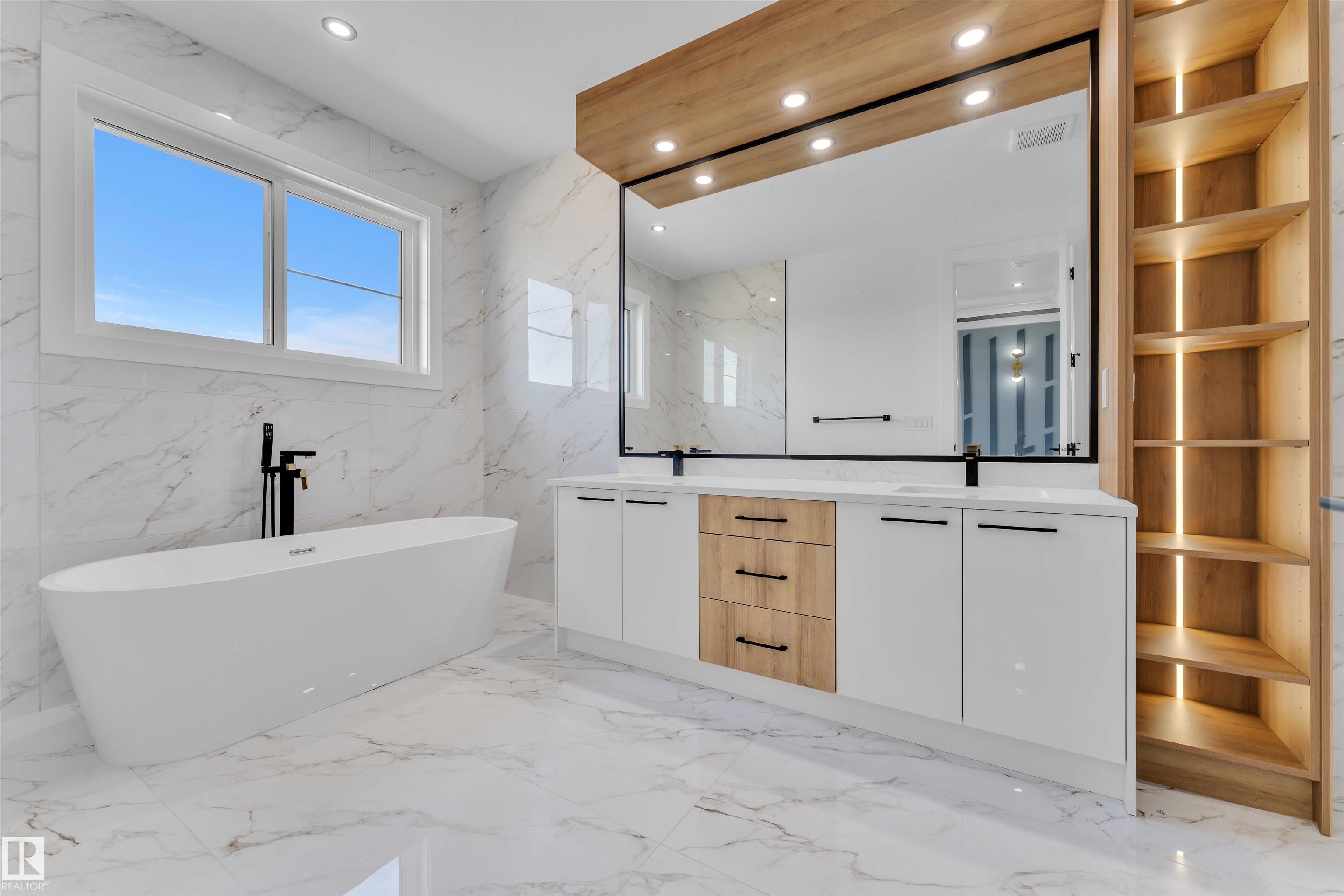 WALKOUT BACK TO POND, stunning 2-storey home offers 2584 SF of modern living. Beautifully designed open to above LIVING AREA WITH HUGE WINDOWS, filling the home with natural light. MAIN FLOOR FULL BED & BATH, MASSIVE SPICE KITCHEN, large island and elegant cabinetry flows into a spacious living area OVERLOOKING POND & GREEN SPACE. Upstairs features 2 MASTER BEDROOMS with luxurious ensuites, bonus & 2 additional bedrooms. Other feature include Indent ceilings, MAN DOOR to garage, DECK, SEPARATE SIDE ENTRANCE for future legal suite potential. Close to grocery store, walking distance from OHPAHO SECONDARY school and major amenities. Welcome Home!!
