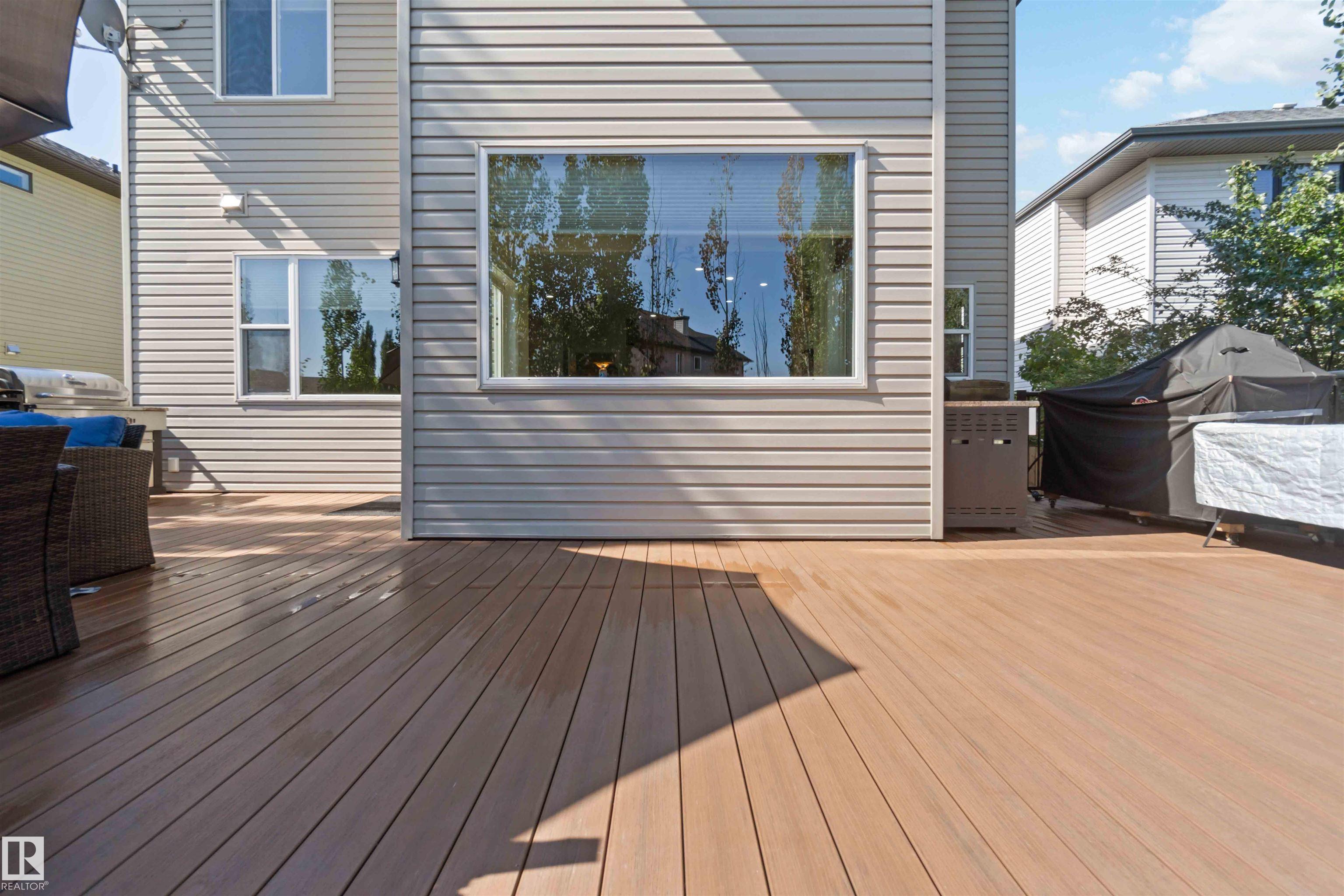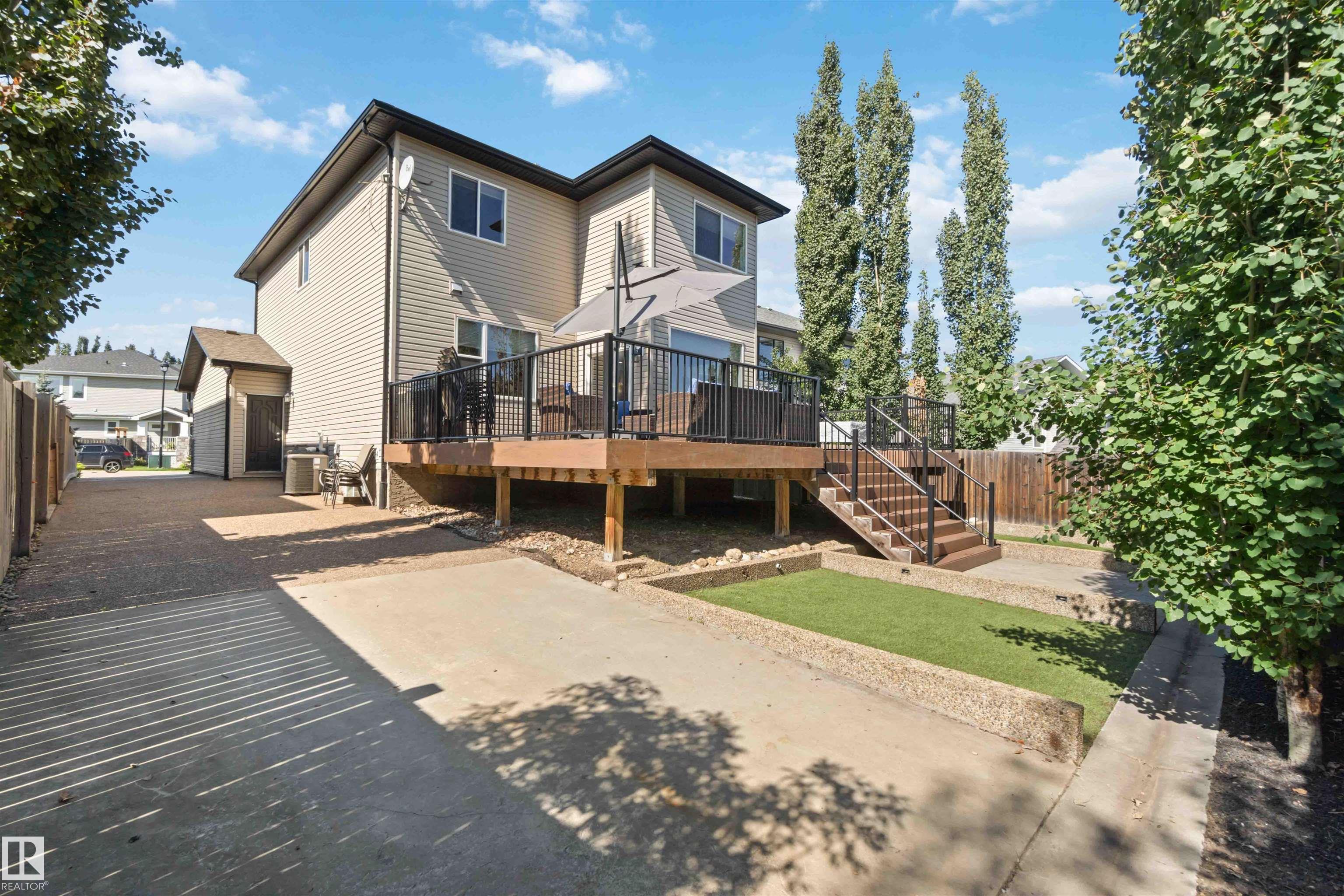 Experience a space designed for the way you live today in this beautiful two-story residence in the sought-after community of Stoneshire. The heart of the home is an open-concept kitchen, featuring sleek stainless-steel appliances and an inviting layout that flows effortlessly into the living and dining areas, all bathed in natural light from big, beautiful windows plus central A/C. 3 generous bedrooms, a convenient main-floor laundry, and an impressive media room for ultimate relaxation, this home is built for family functionality. Step outside to find an expansive deck, perfect for entertaining, all set within a low-maintenance yard that gives you back your weekends. The oversized garage and a long aggregate driveway with dedicated RV parking ensure plenty of space for vehicles and toys. Located moments from the renowned Links Golf Course, with scenic walking trails, playgrounds, and easy access to local schools and shopping, this property is ready to welcome you home-come take a look.