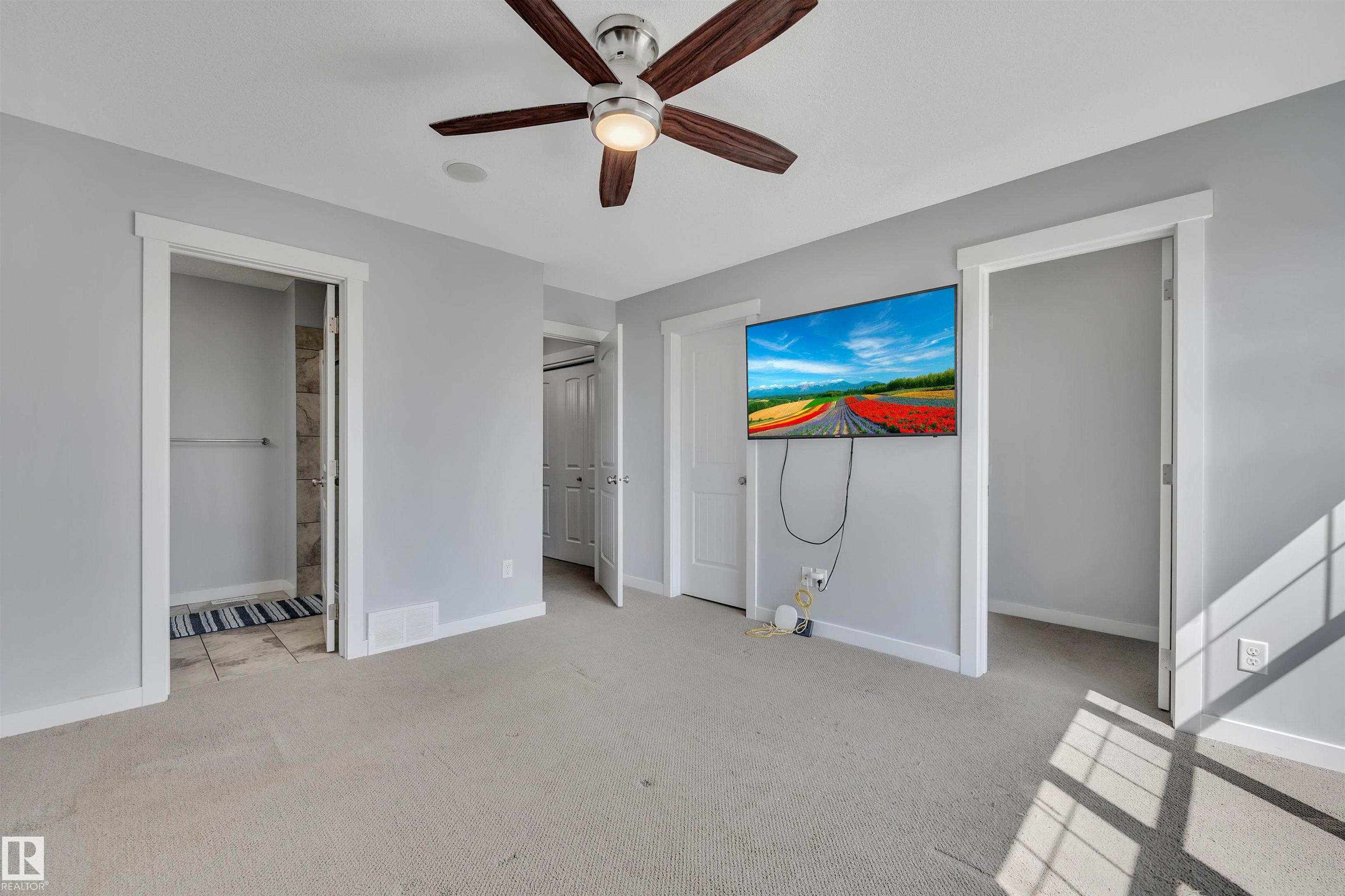 GORGEOUS YARD! FULLY FINISHED BASEMENT! A/C! NEW UPSTAIRS CARPET! MOVE IN READY! This 1476 sq ft 4 bed, 3.5 bath Homes by Avi duplex is a great option for those looking for a nice yard & room to grow! Large entryway leads to a functional galley style kitchen w/ raised barstool granite countertops, 9' ceiling, newer S/S appliances, & pantry / mudroom. Laminate flooring leads into the dining space & living room, w/ gas fireplace & large windows for ample natural light. Upstairs brings new carpets, 3 good sized bedrooms inc the primary bedroom w/ 3 pce ensuite & double walk in closets. Upper laundry & additional 4 pce bath. The basement is fully finished w/ additional living / media room, 4th bedroom, 4 pce bath, & storage room. The backyard is a gem! Beautiful 2 tier deck w/ gazebo, shed, plush grass, & fully fenced for the pups to play or kids to roam! Bring your swingset and enjoy the summer parties in style w/ room to add a firepit. Close to parks & quick access to QE2; location is ideal! Welcome home!