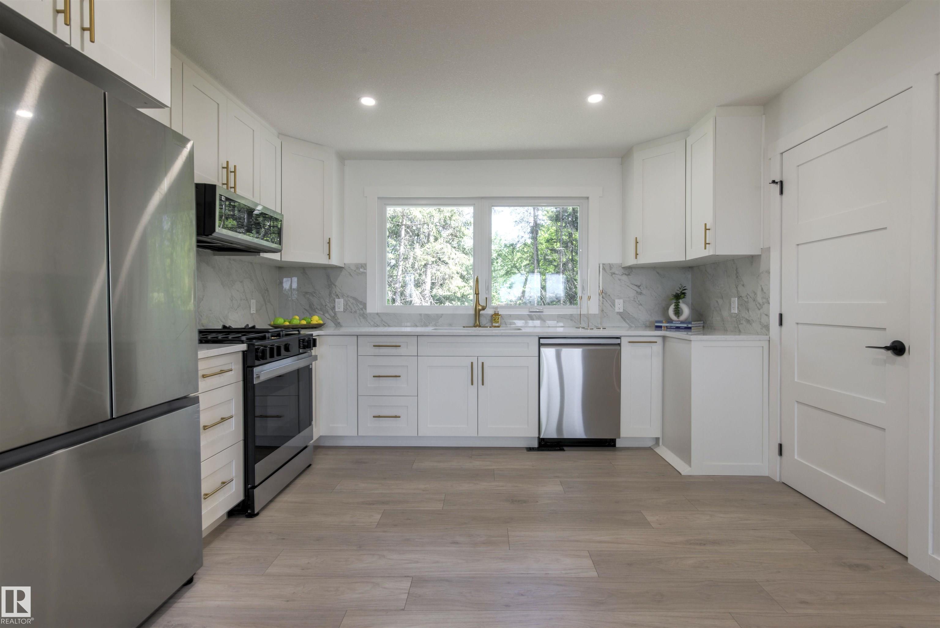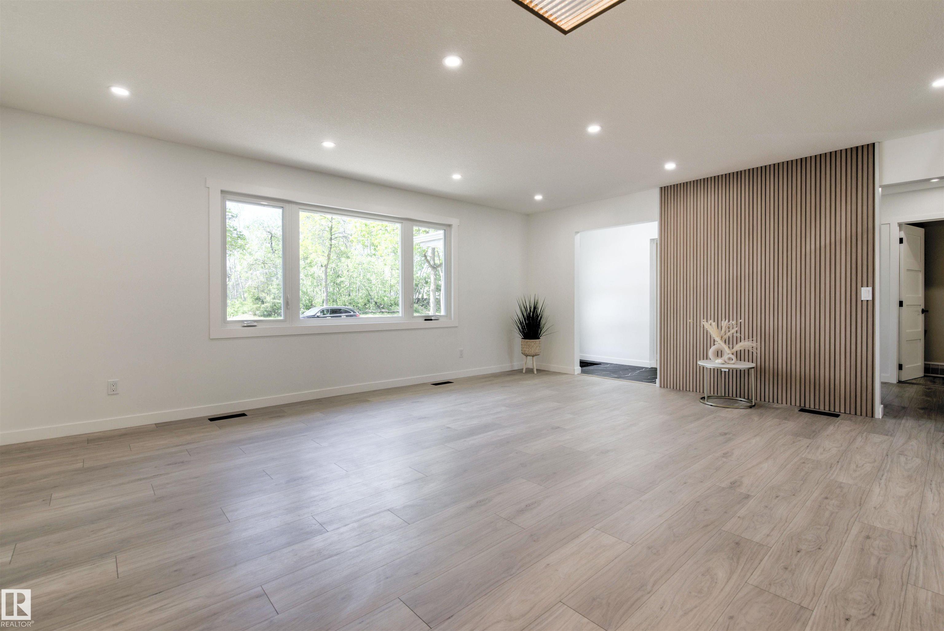 Step into this beautiful, fully finished and completely renovated over 2,000 sq ft house located in the highly desirable neighborhood of Grandin (St. Albert). The open floor plan is perfect for families, boasting a large living and dining room, kitchen with modern cabinets, tile backsplash, stainless steel appliances, gas stove and quartz countertops. A master bedroom is bright and spacious and has its own 3PC ensuite. In addition, you will also find 2 more bedrooms and 4PC main bath. The lower level is fully finished with large family/recreation room, 1 bedroom, laundry room, additional storage. Upgrades: All new windows triple pane low-E glass, all new doors, interior wood doors, main floor high end laminate. New attic insulation, serviced and cleaned furnace, pigtailed wires, new Hardie siding, soffit facia, eavestrough. All old trees and vegetation are removed and ready for your landscaping desires. School, playground, park and walking trails make this property an ideal for any family.