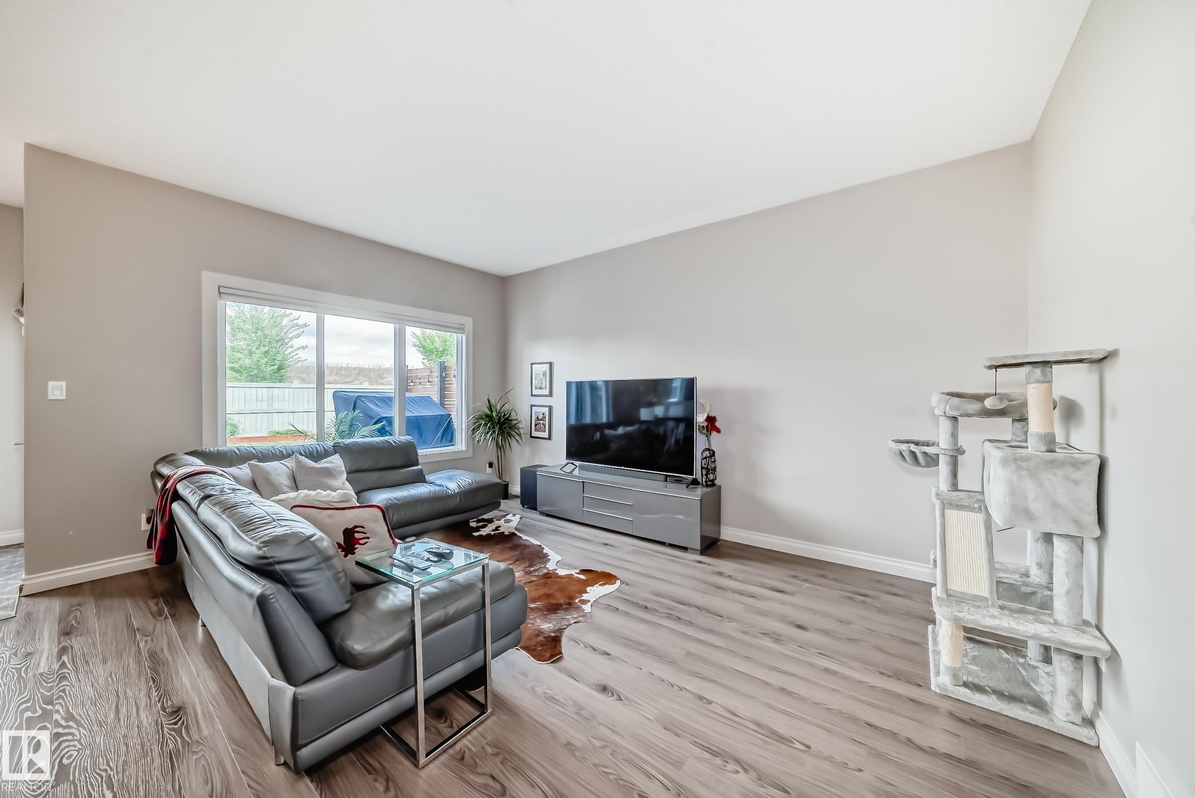 **Welcome to Your Dream Home in Beaumont** Nestled within the serene community of Forest Heights, this stunning 3 beds, 2.5 bath half duplex perfectly balances modern elegance and natural tranquility. With no home behind you, enjoy unparalleled privacy while being surrounded by nature. As you step inside, you're greeted by an open-concept layout that seamlessly blends space and light. The stylish kitchen boasts modern finishes and flows effortlessly into the spacious living area—ideal for entertaining friends and family. Spacious walk-thru pantry, large windows fill the rooms with sunlight and offer views of your beautifully landscaped yard.The master suite is a true retreat, featuring ample space with a personal ensuite bath and walk-in closet. Two additional generously-sized bedrooms complete the upper level.Venture down to your fabulous rec room in the bsmt—perfect as a game lounge or a good workout space. Step outside into your own private oasis meticulously landscaped and enjoy the hot tub!