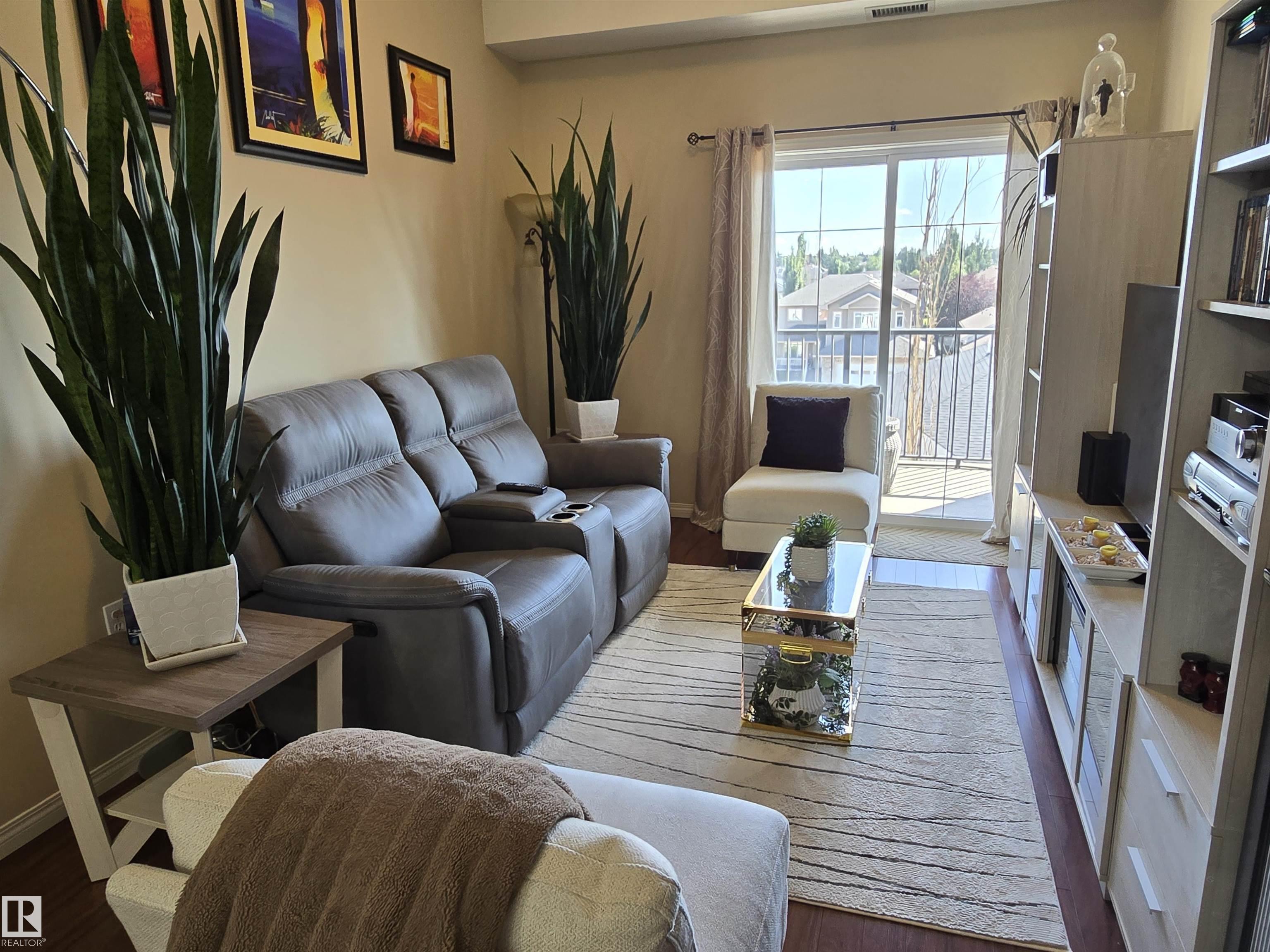 Top Floor, 2 bedroom, 2 bathroom condo, beautiful view from balcony. EXTREMELY well maintained, so clean! Quiet and spotlessly clean building that is self-managed. Open floor plan with very spacious kitchen, island, large living room, & a large in-suite laundry with room for storage! There are 2 bedrooms, one has an ensuite, the other has a main 4pc bath, just two steps outside the room! There is a gorgeous view from the balcony, a must see! Tons of parking for visitors. Also, there is an option to have a gym membership in the building! AC in the suite!