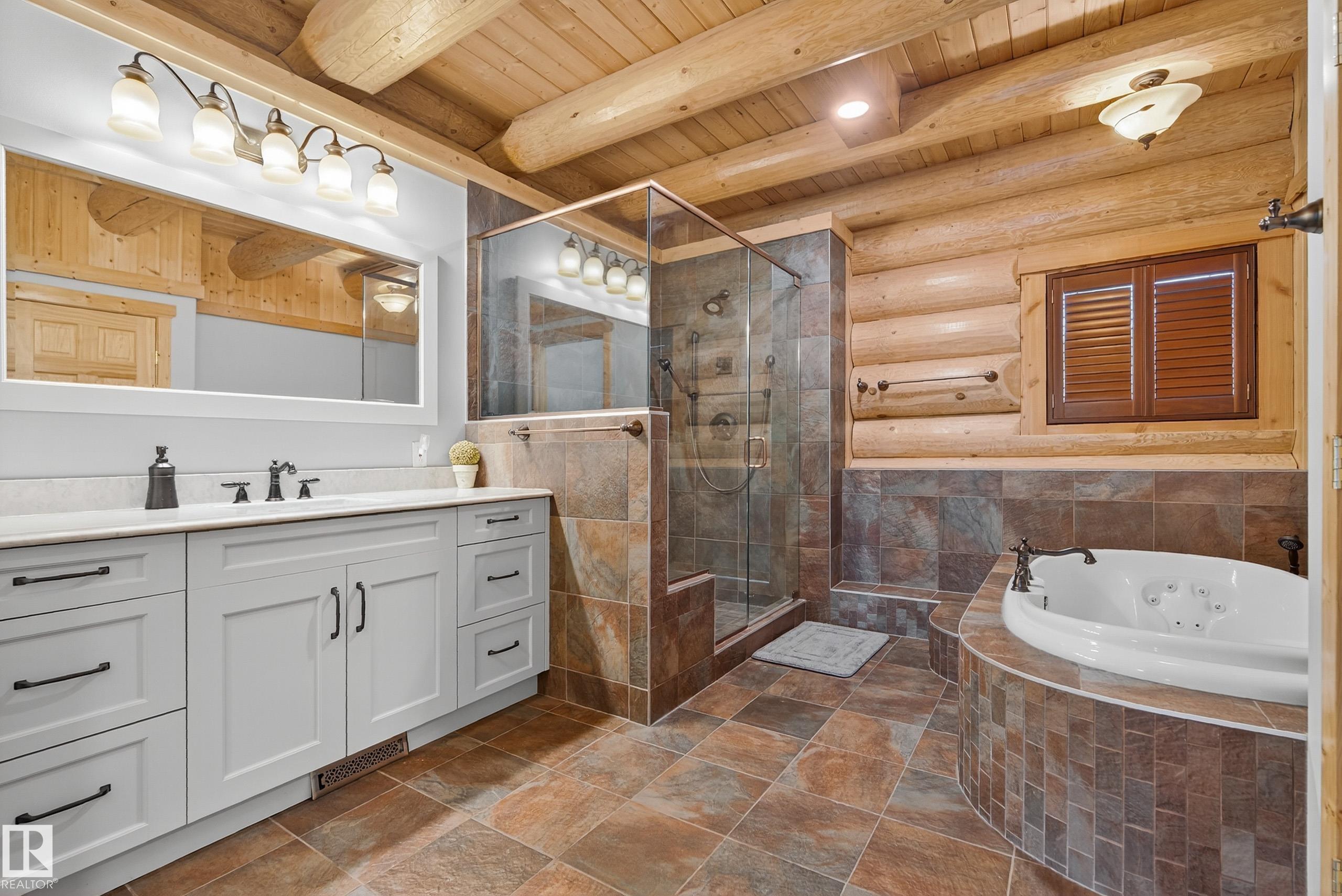 This is likely the nicest log cabin on the market in Alberta! This home is 7000sf on 3 levels (walkout basement). The home underwent extensive renovations 2 yrs ago, owners spent just under $800,000 to make this cabin world class. This 6 bedroom, 4 bath home comes FULLY furnished ($100,000 value) so it is turn key ready for it's new owners. The home has exposed timber throughout which only adds character and authentic rustic living to this property. Main floor has a gorgeous custom kitchen, Stillwater color cabinets, cambria quartz, with high end appliances. If you have an aspiring chef in the family this gas stove and outdoor grill area and the 2nd kitchen in the basement will leave them breathless. The primary bedroom is located on the main floor, it has a very large ensuite and walk in closet. The living room has the most impressive stone fireplace you will find anywhere. We are located less than 40 mins to Edmonton, so this could be your primary residence or luxury cabin life.