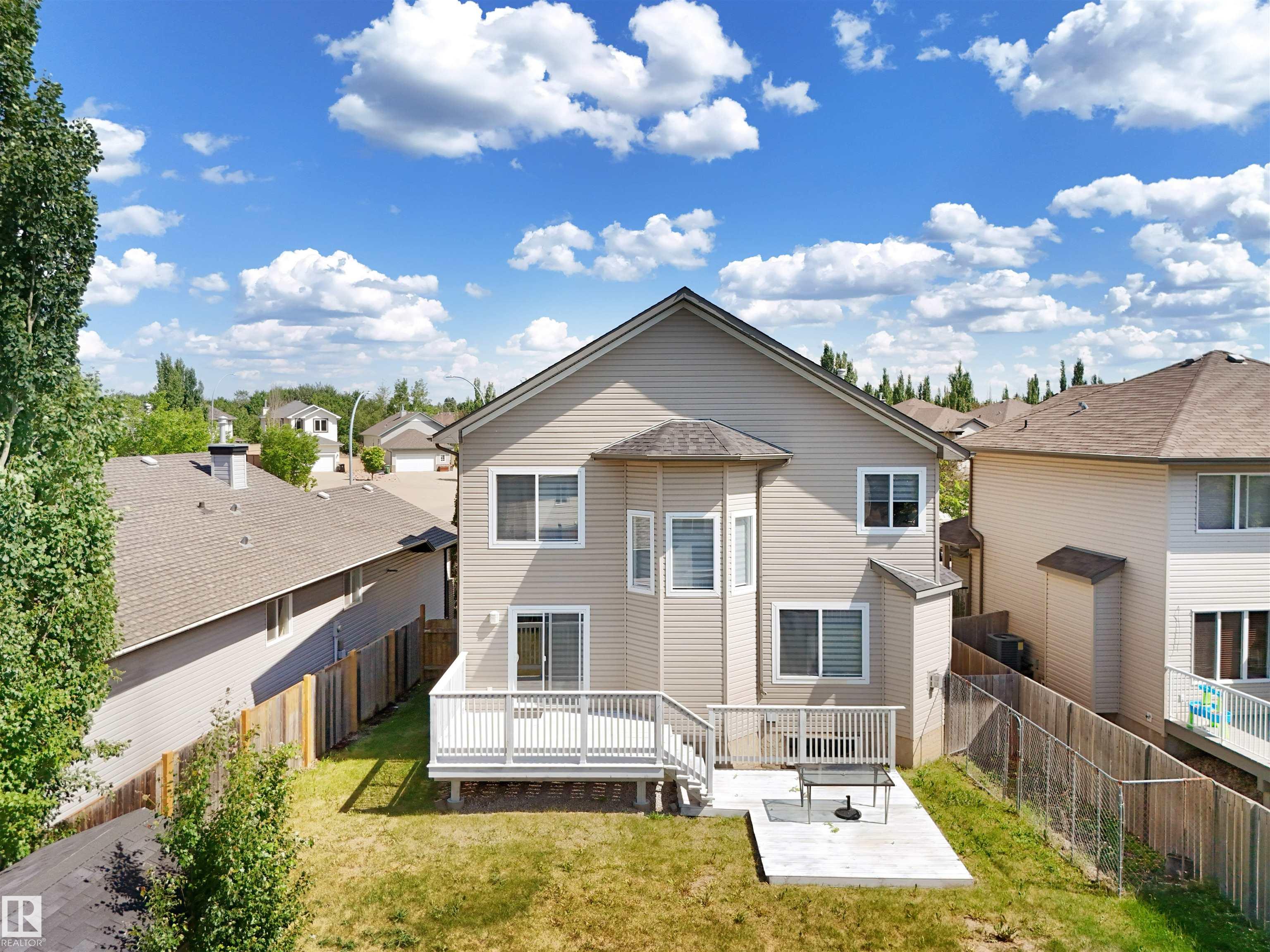 Welcome to this beautifully updated home in the heart of Leduc's family-friendly community of Deer Valley! Step into a spacious living room featuring a cozy fireplace and large windows overlooking the backyard. The bright dining area opens to the deck through a patio door—perfect for indoor-outdoor entertaining. The kitchen is equipped with stainless steel appliances and quartz countertops. Upstairs offers a spacious primary bedroom with walk-in closet and 4-pc ensuite, plus two additional bedrooms, a 4-pc bath, laundry, and a large bonus room. The unfinished basement awaits your personal touch. Recent upgrades in 2025 include: new lighting, kitchen, quartz countertops, vanities, paint, shingles, blinds, vinyl & carpet flooring and hot water tank. Close to schools, parks, Leduc Recreation Centre, Leduc Common shopping, restaurants, Telford Lake, hospital, and quick access to QE2. Move-in ready and full of charm!