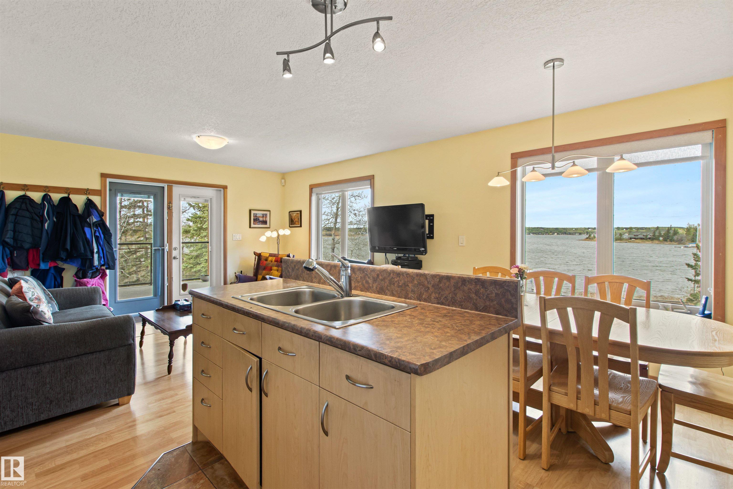 Welcome to your private lakeside retreat at 4 Sunshine Bay Road! This property provides just over 1/2 acre of land with 75ft of pristine lakefront located along a large bay, a natural harbor, that provides calm waters and shelter from the wind. Enjoy the existing 3-bedroom home or build your dream cabin and use it as a guest house! Built in 2007, this property boasts unparalleled storage options. The main floor features both a double garage and a large tandem-style single garage with a 20ft ceiling and a 16 ft tall overhead door. Both garages are heated with a convenient 3-pc bath, allowing you to rinse off after a day on the beach or water. The upper floor consists of your living area with 3 bedrooms, a 4-piece bath, living room, dining room, and kitchen overlooking the lake from a beautiful vantage point. A large, covered deck allows you to spend time outside enjoying your surroundings. Sailing enthusiasts will love the close proximity to the Sunshine Bay Yacht Club