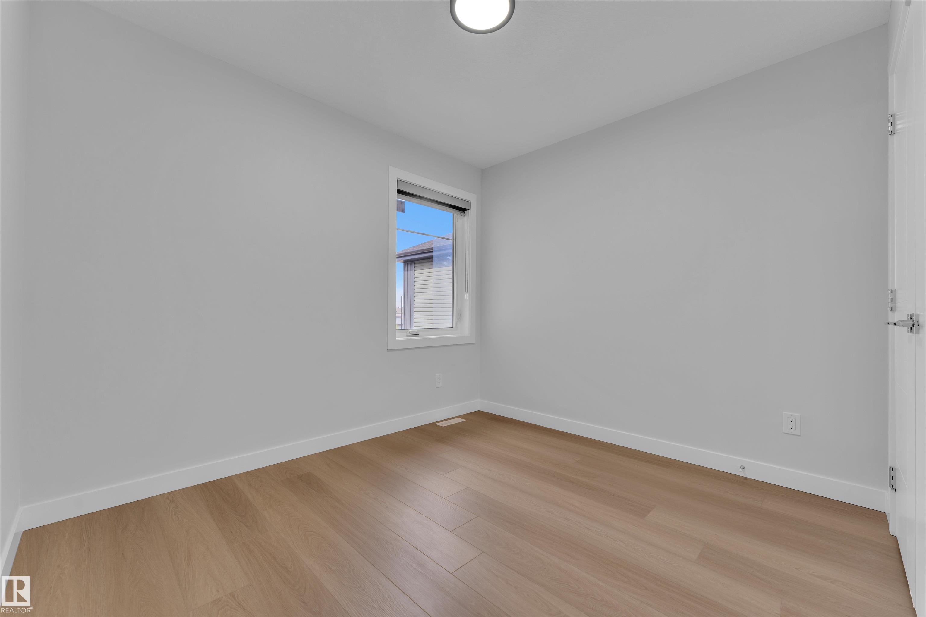 Detached front double car garage home features total of 4 bedrooms, 3 full bathrooms & a bonus room. Comes with appliances & blinds. MAIN FLOOR BEDROOM with FULL WASHROOM featuring a stand-up shower. Main floor luxury vinyl plank flooring. SPICE KITCHEN for added convenience. Main kitchen with centre island, premium cabinetry, quartz countertops, and MDF shelving throughout.The stunning OPEN-TO-ABOVE living area with electric fireplace, and accent wall. Spindle railing leads to Upper level spacious bonus room, primary br with feature wall, indent ceiling, W/I closet & ensuite. 2 more bedrooms with common bathroom & laundry room completed upper level. SIDE BASEMENT ENTRANCE. Additionally, the property offers 9-FT CEILINGS ON Main & basement LEVELS. Located beside a school, minutes from COSTCO, the EDMONTON OUTLET MALL, and the AIRPORT, you get quick access to all amenities.